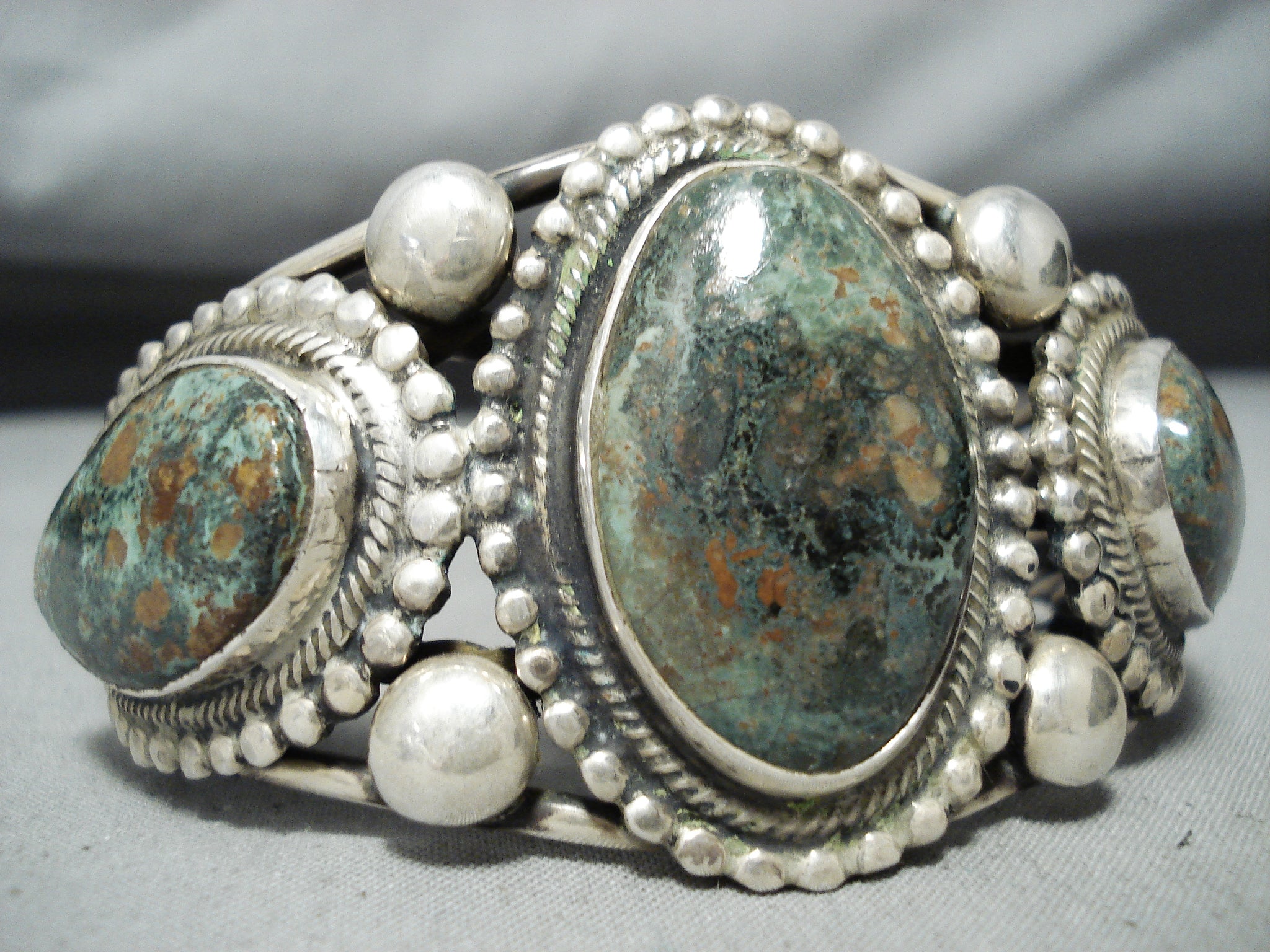 100+ Gram Navajo Green Turquoise Sterling Silver Bracelet Native American