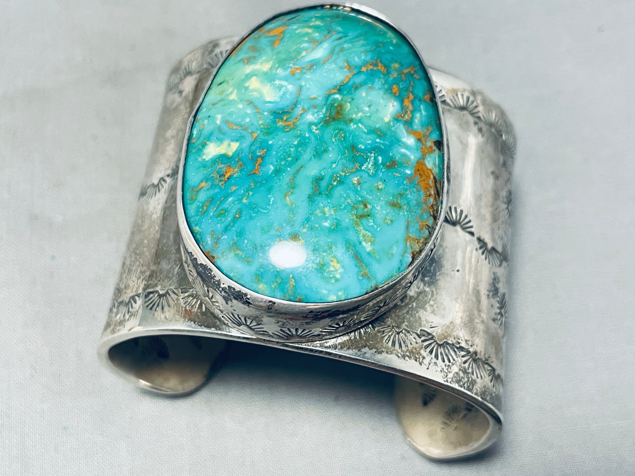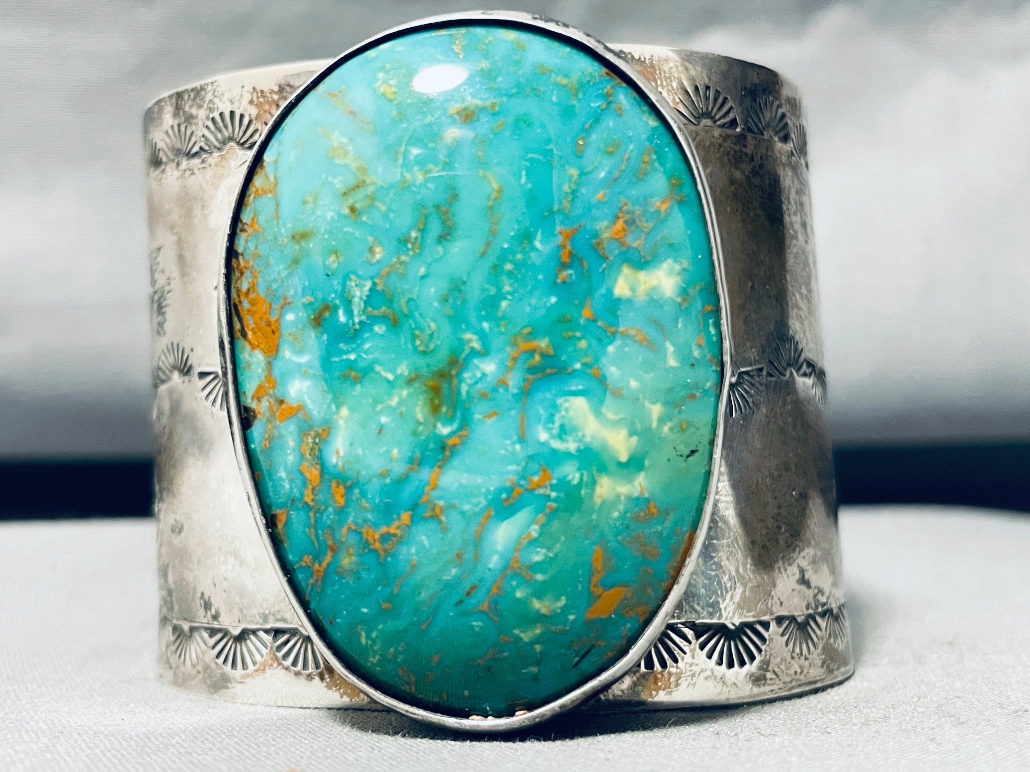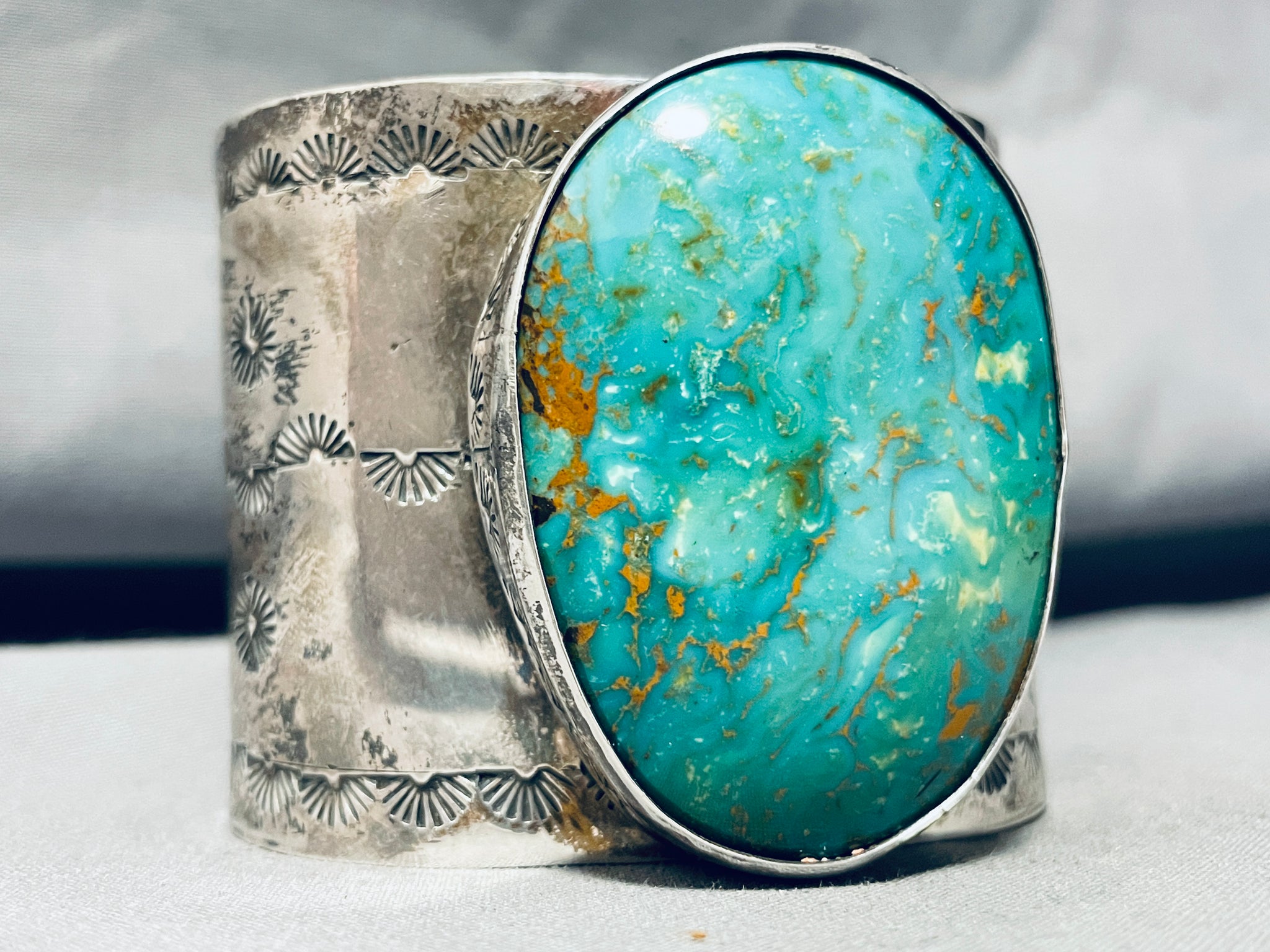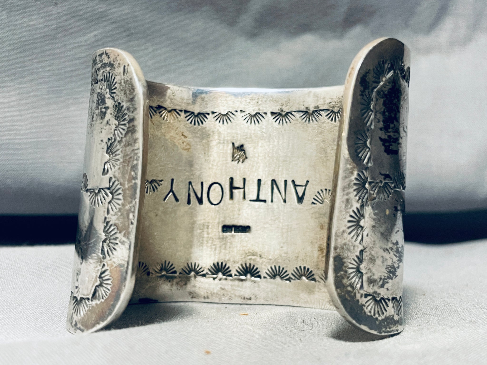 200 Grams!! Anthony Signed Vintage Native American Navajo Turquoise Sterling Silver Bracelet