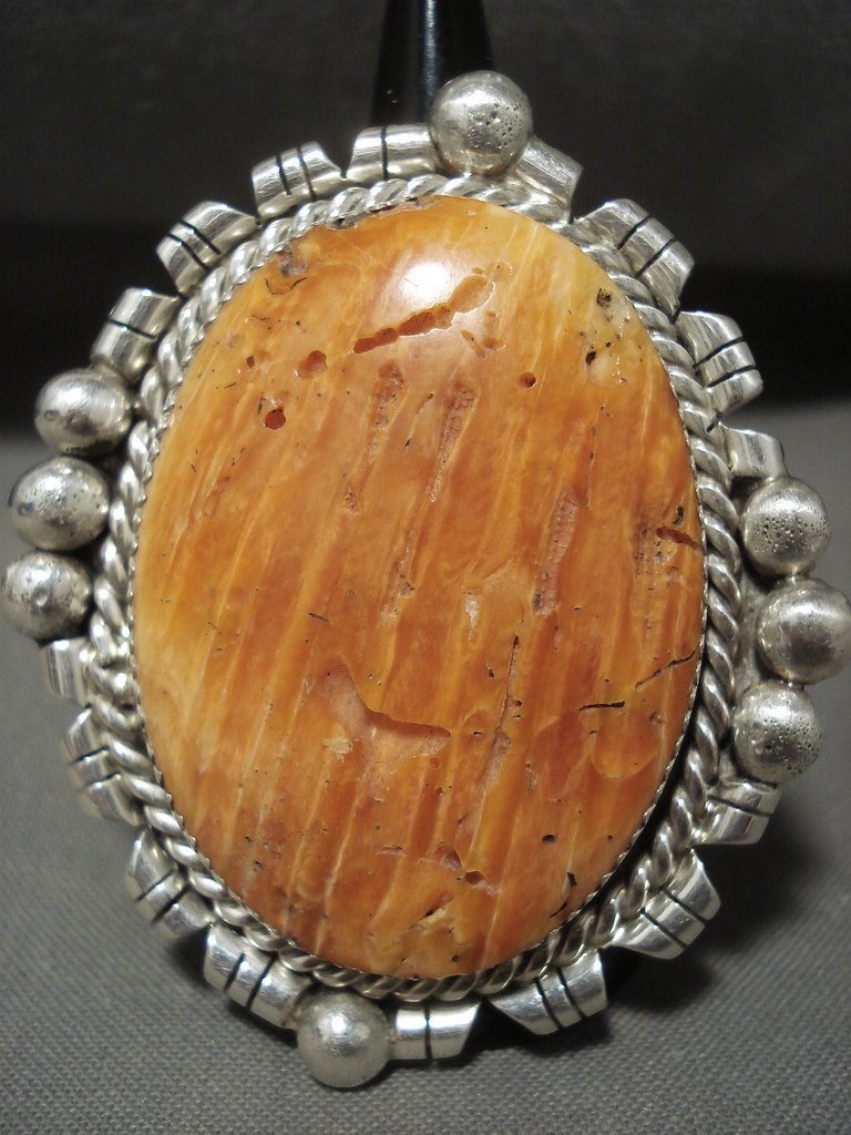 37 Grams Monster Whitegoat Navajo Native American Jewelry Silver Orange Shell Ring
