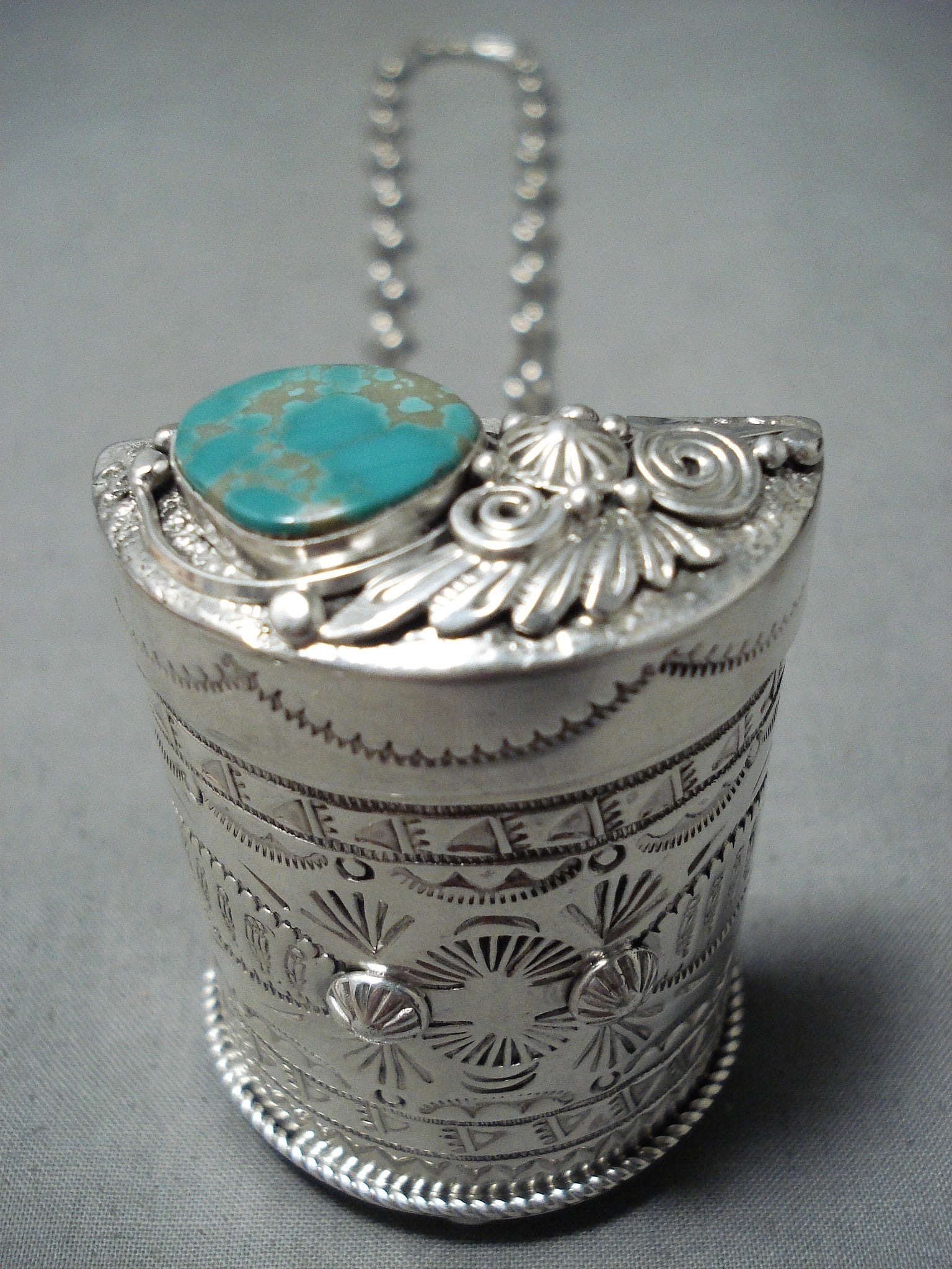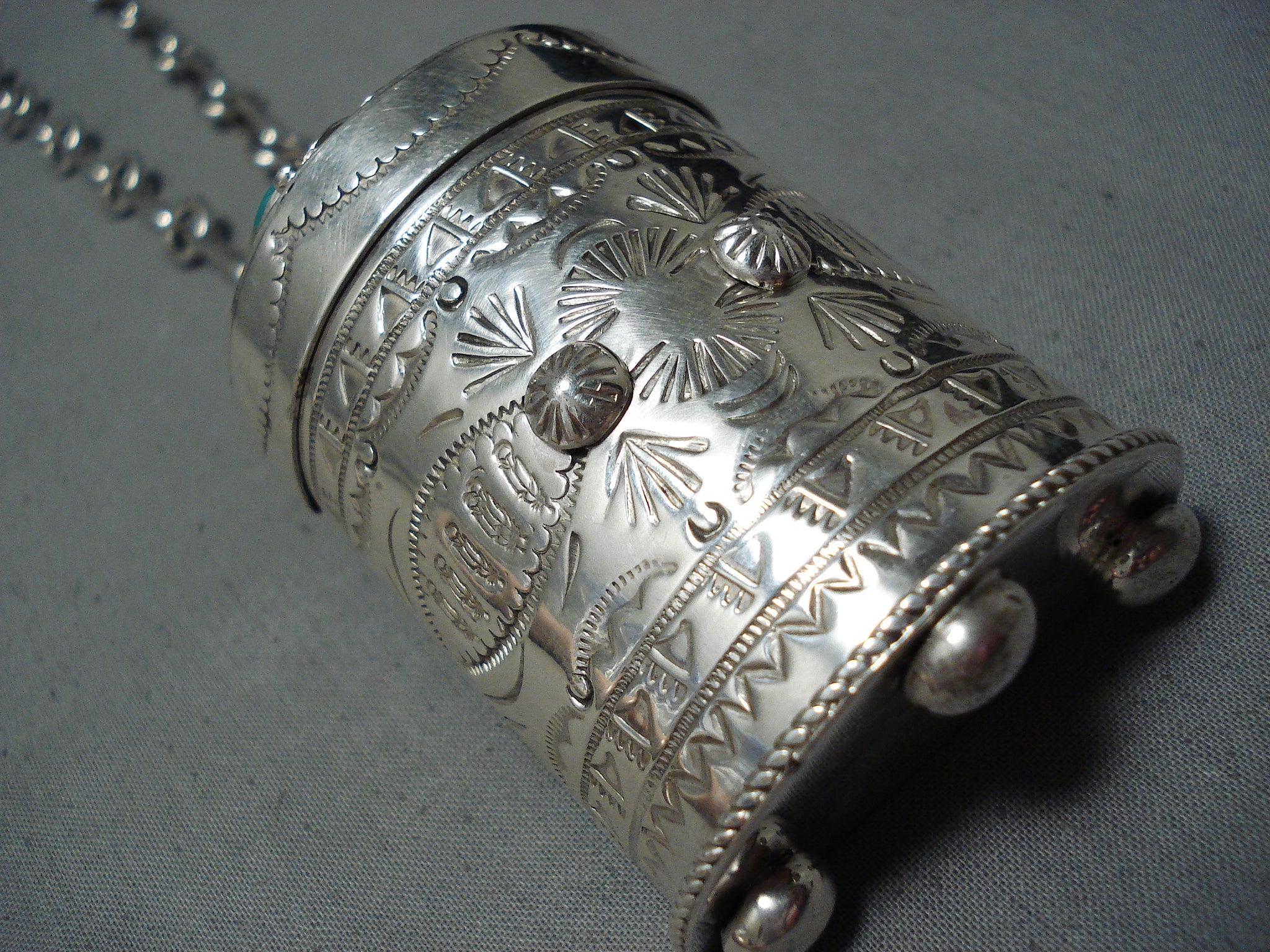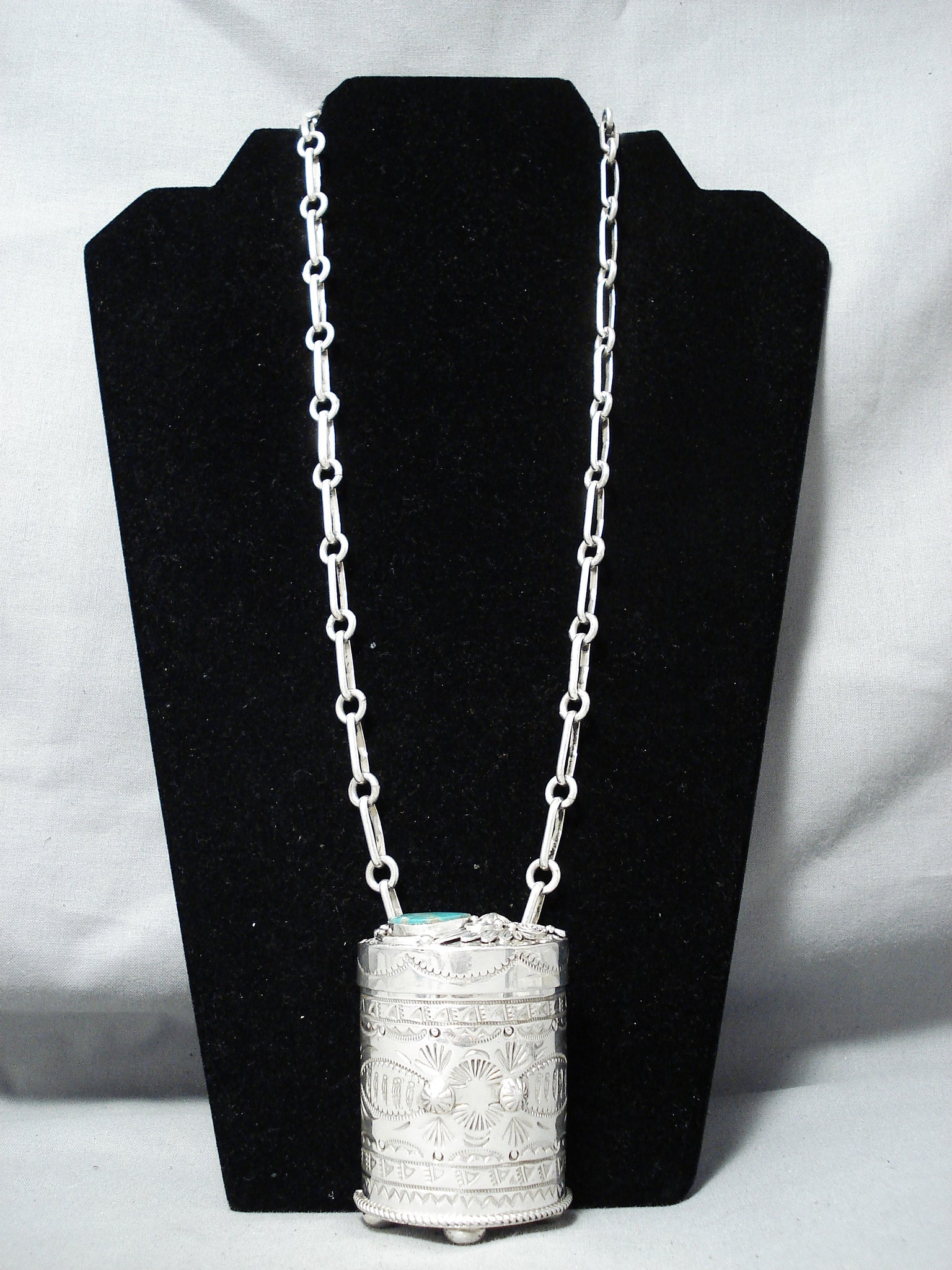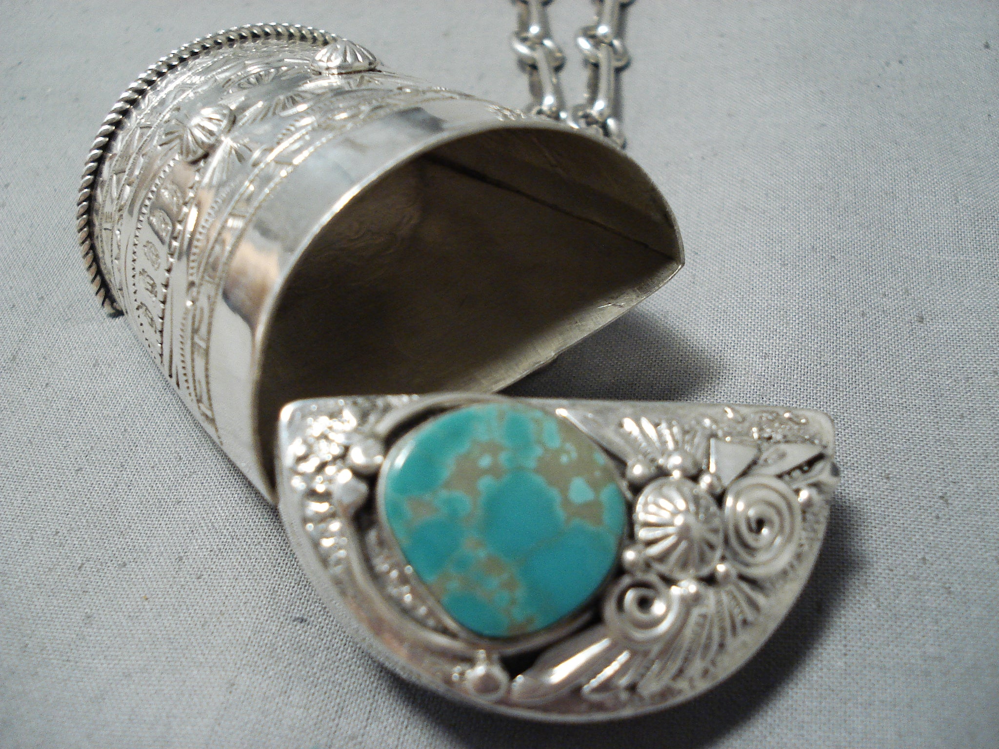 Amazing Native American Navajo Royston Turquoise Sterling Silver Pillbox Necklace