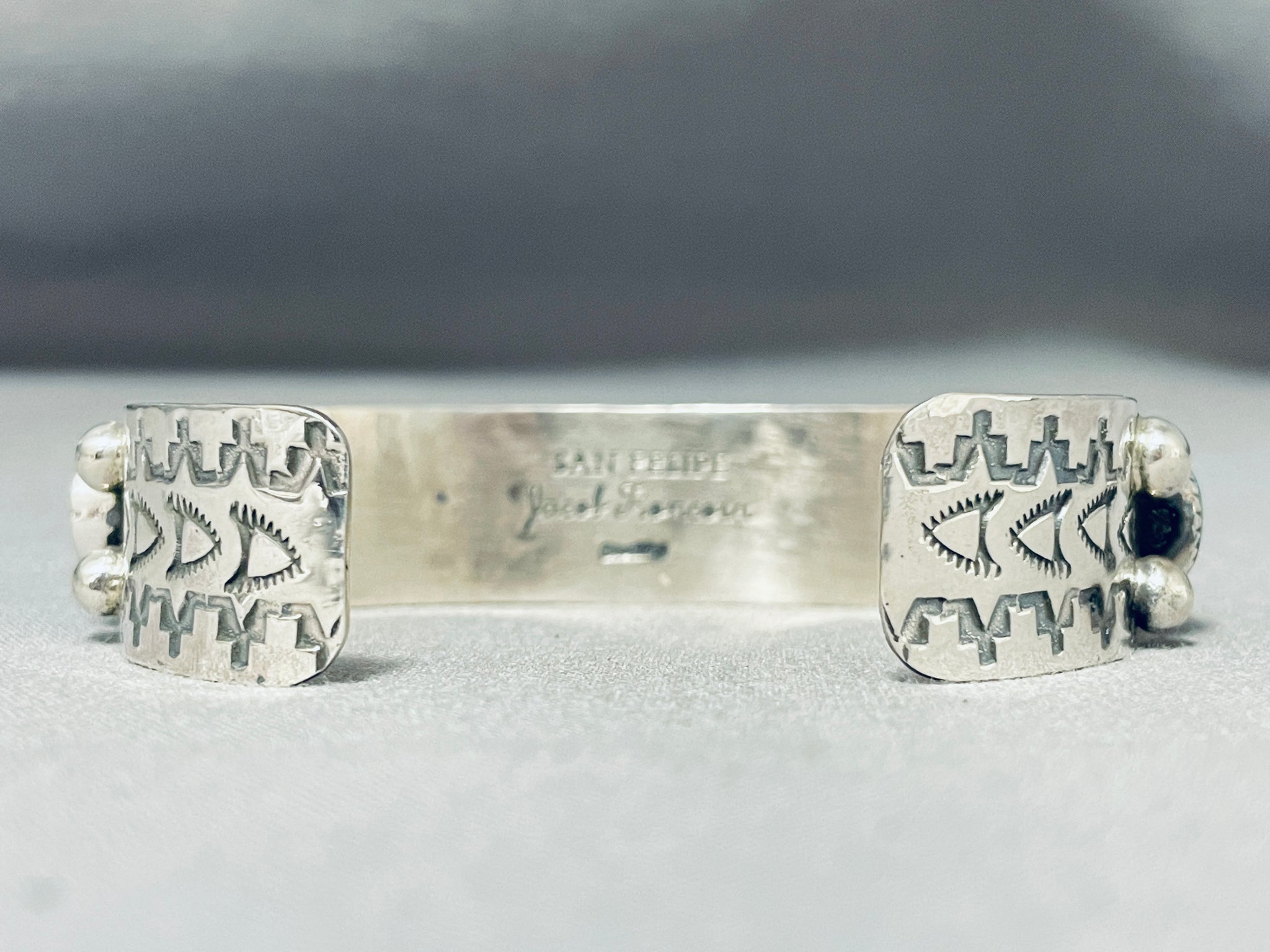 Amazing Native American Turquoise Sterling Silver Stamped Bracelet