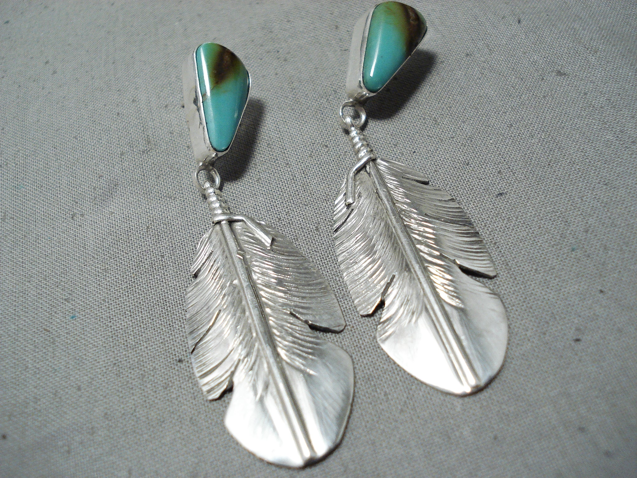 Amazing Navajo Damale Turquoise Sterling Silver Earrings Native American