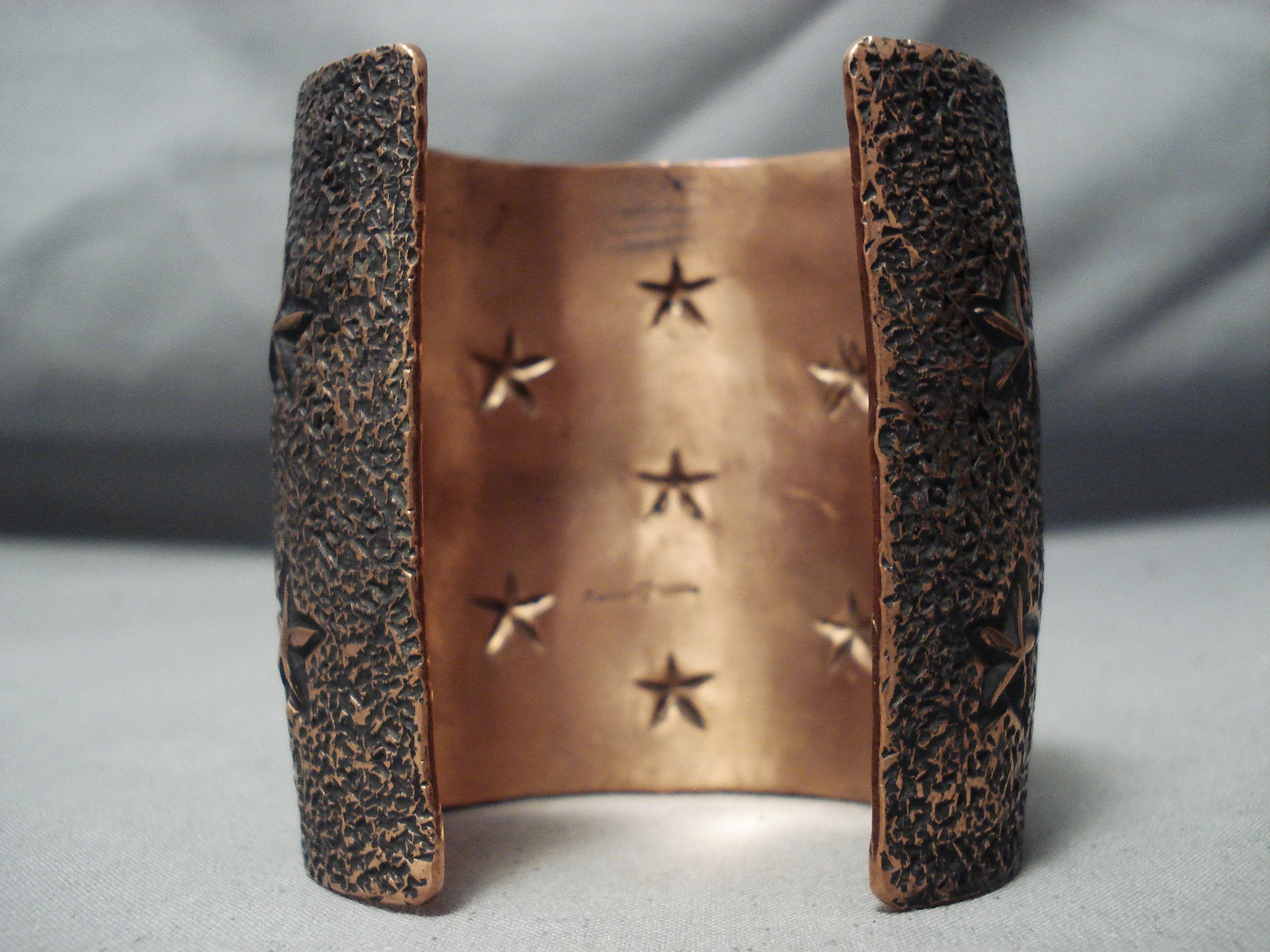 Amazing Navajo Huge Handcarved Copper Bracelet Native American