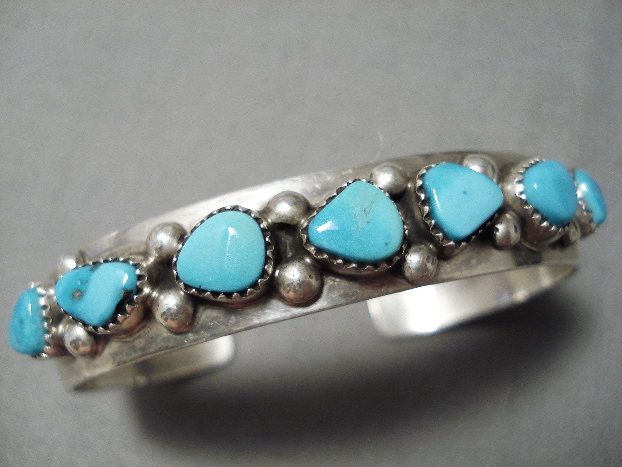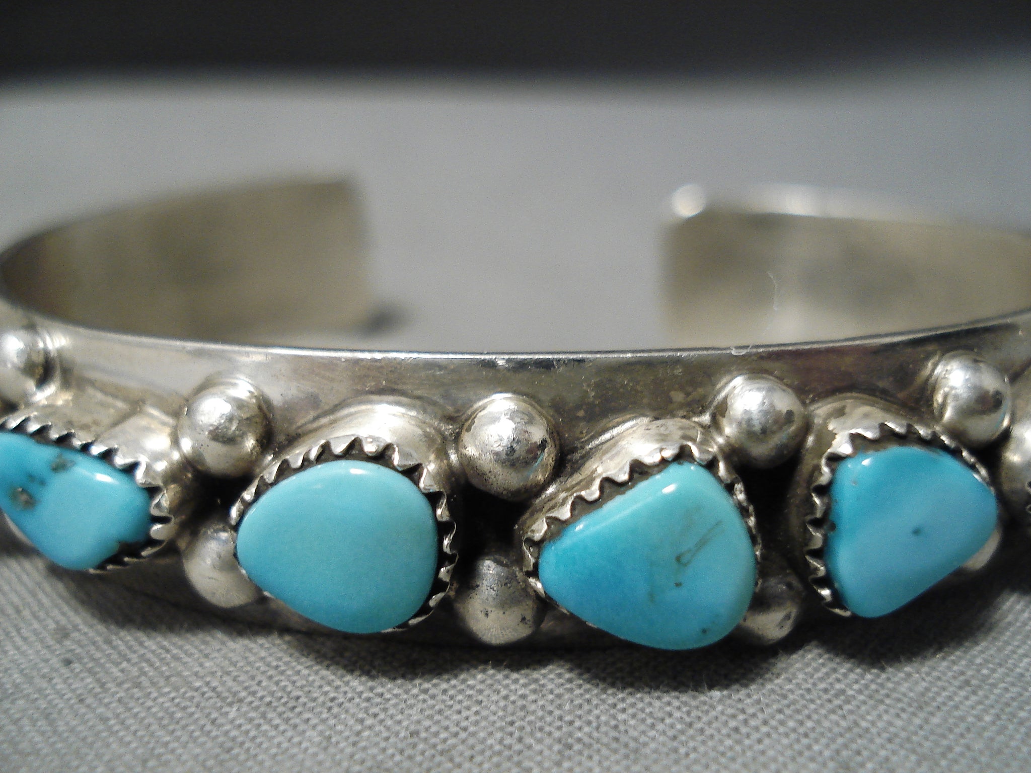 Amazing Vintage Native American Navajo Pilot Mountain Turquoise Sterling Silver Bracelet Old
