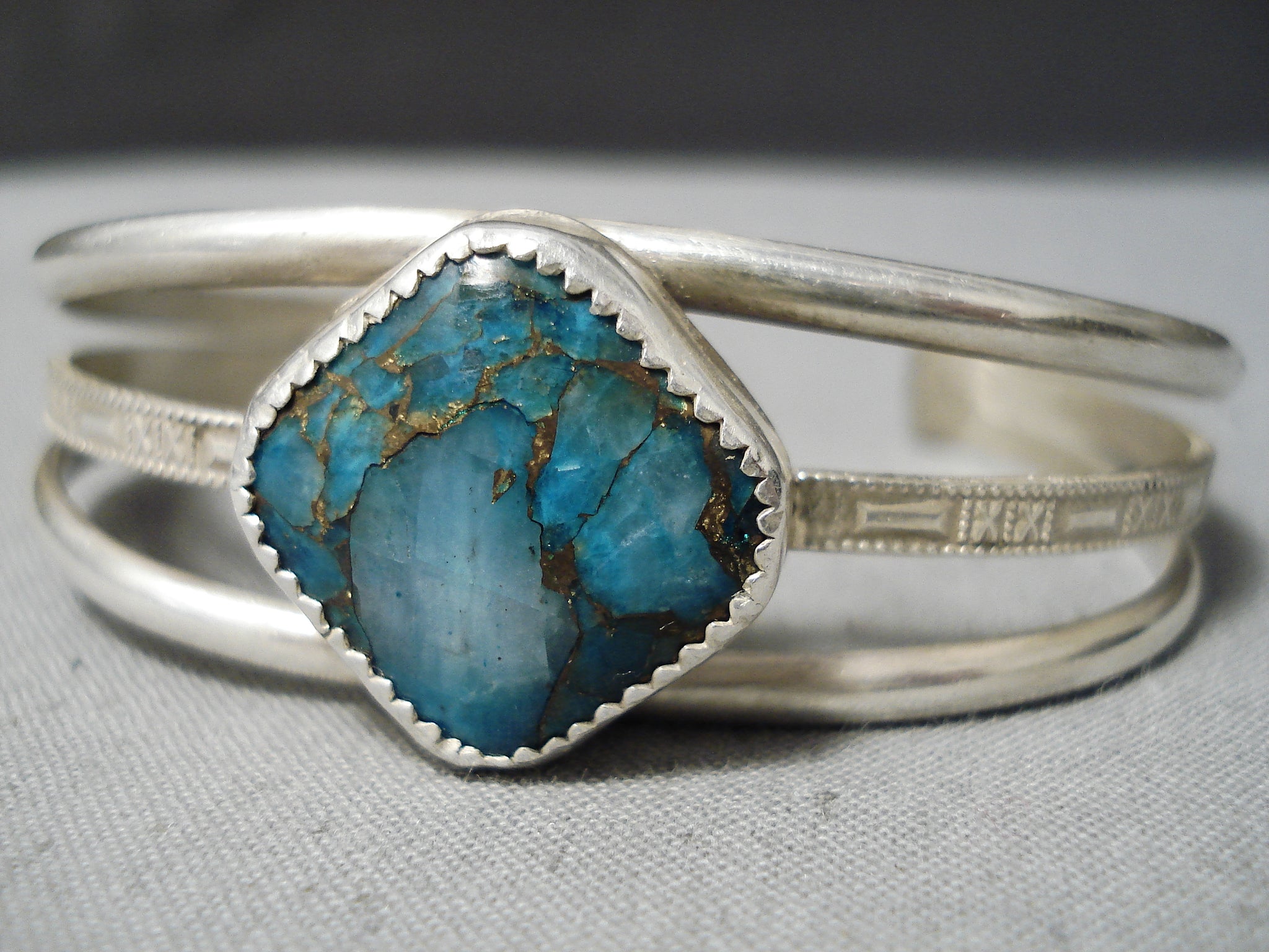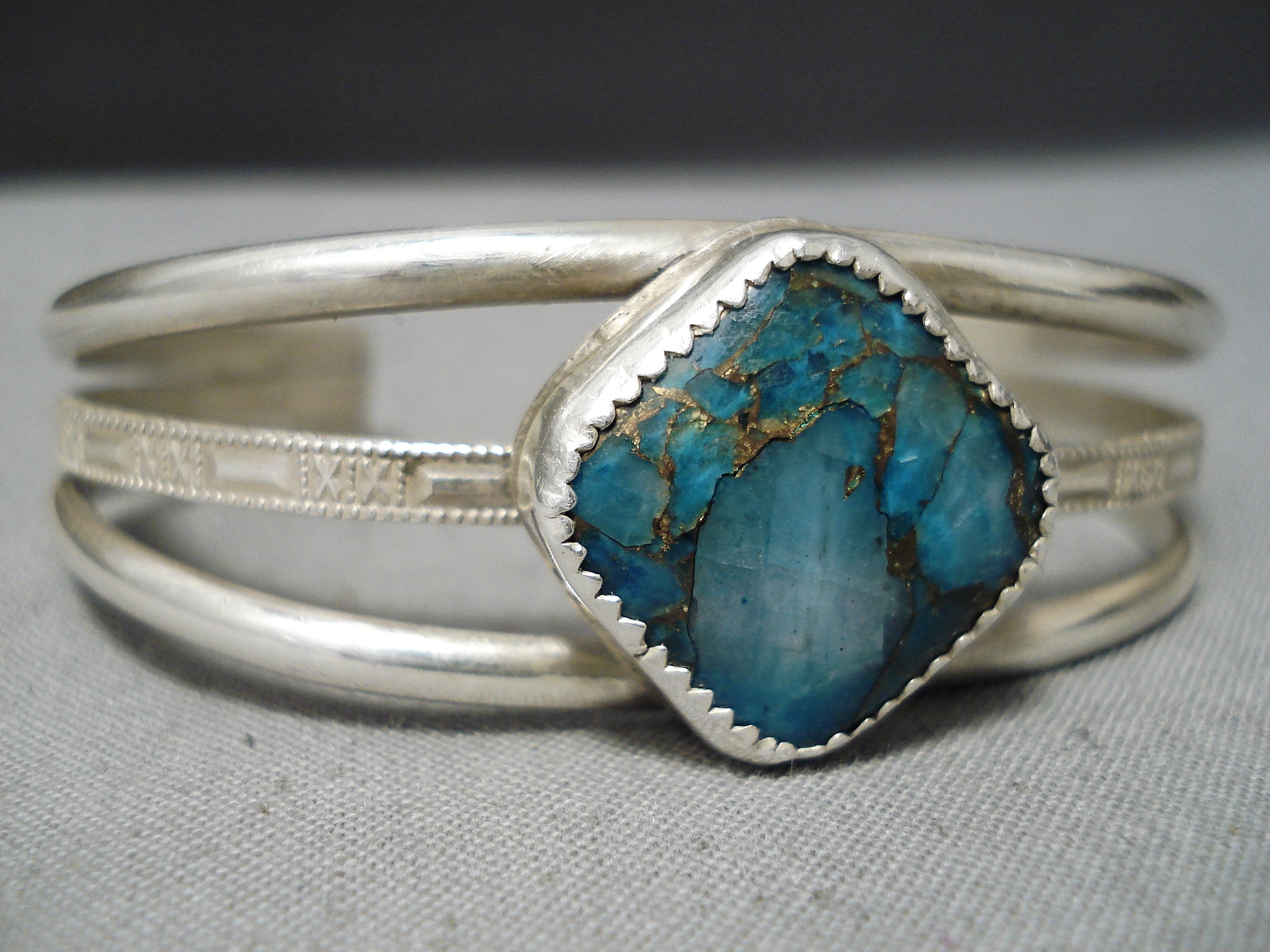 Amazing Vintage Native American Navajo Pilot Mountain Turquoise Sterling Silver Bracelet Old