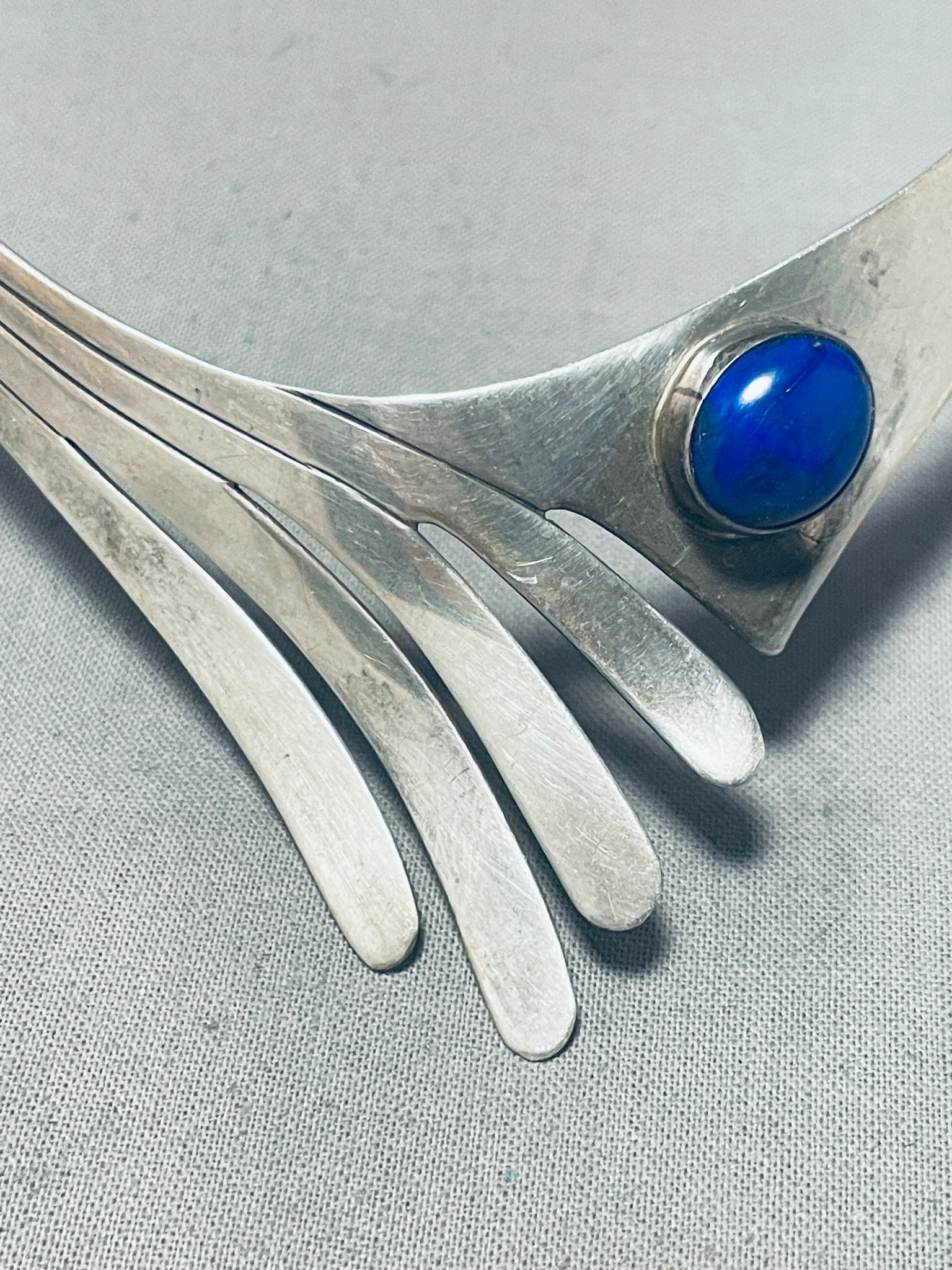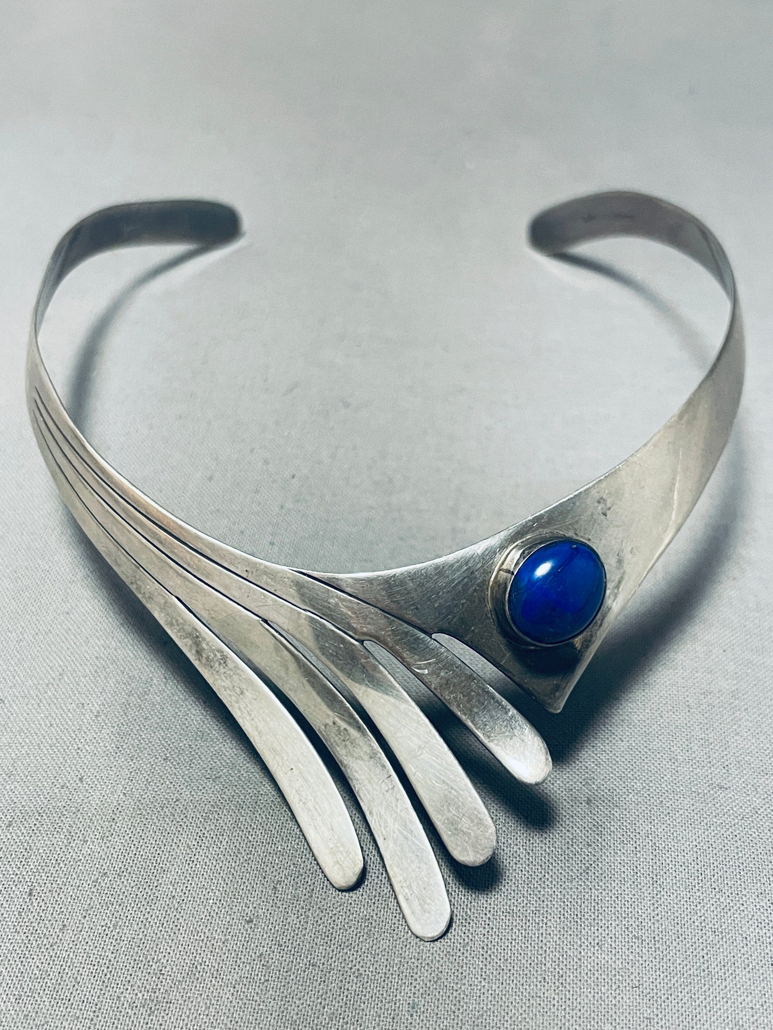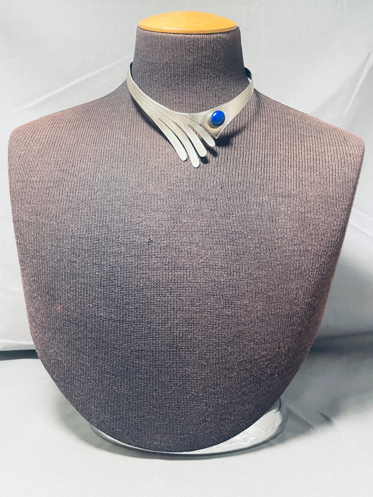 Anna Peterson Vintage Native American Navajo Lapis Sterling Silver Necklace
