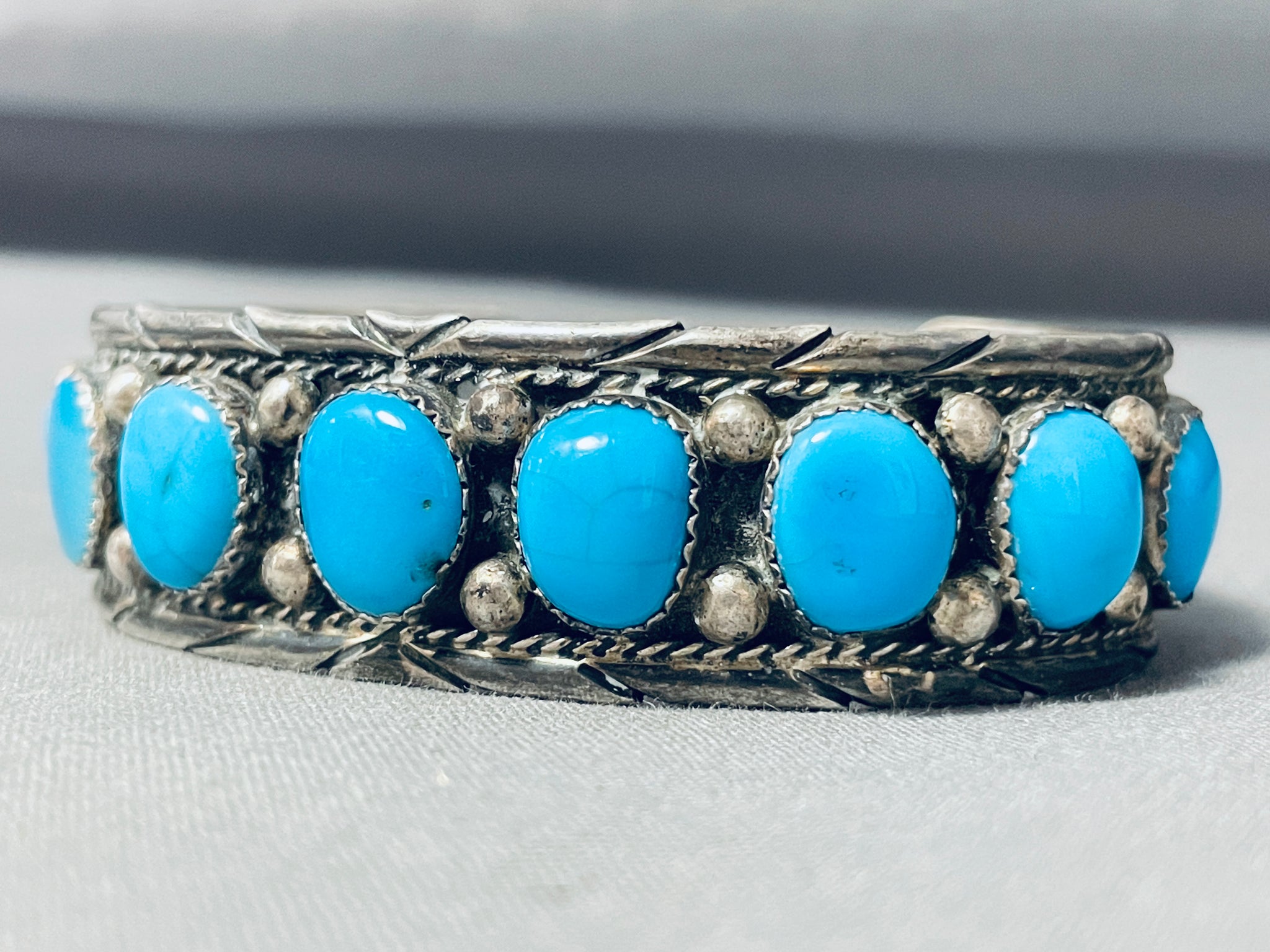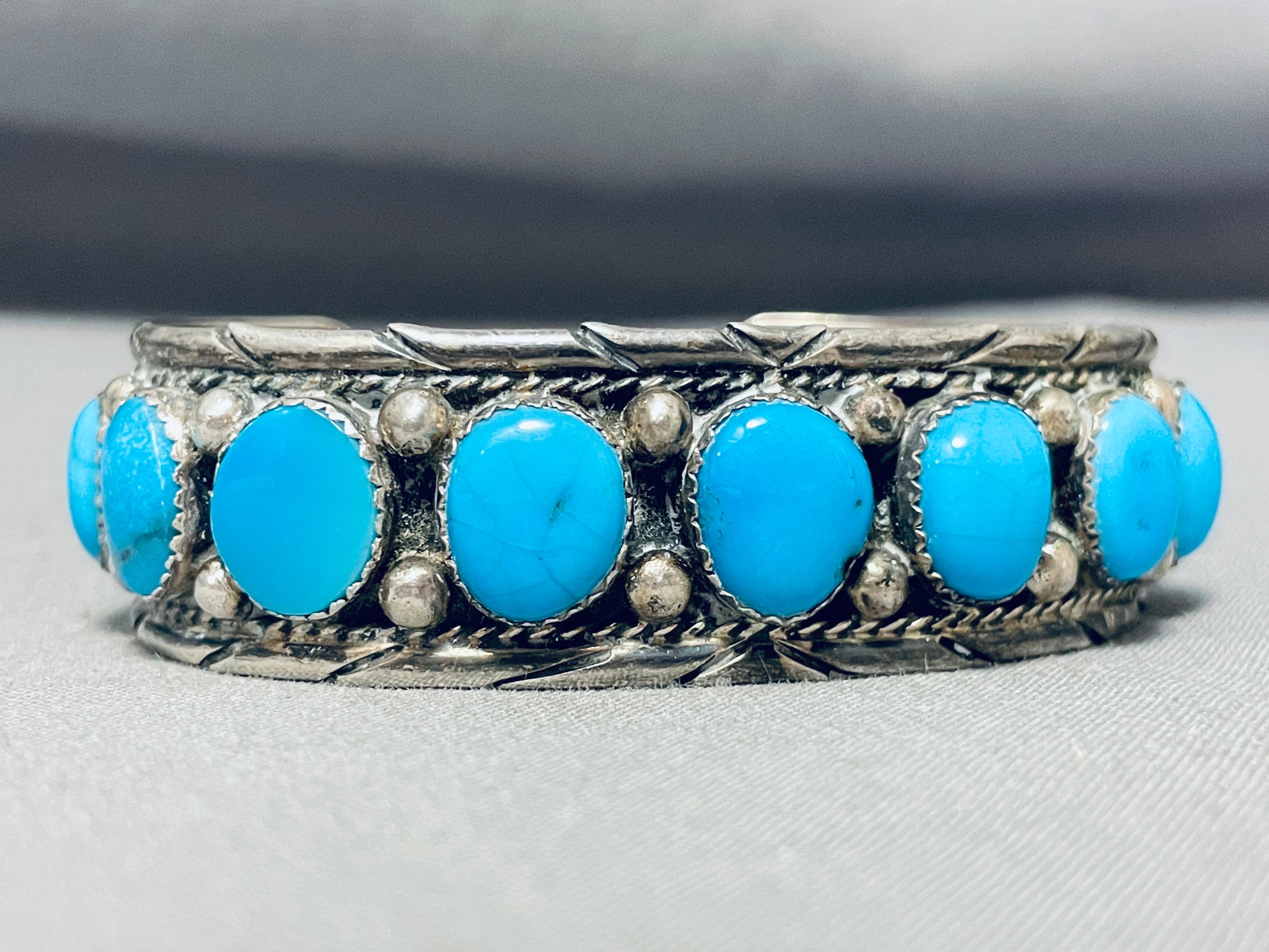 Astonishing Vintage Native American Navajo Kingman Turquoise Sterling Silver Bracelet