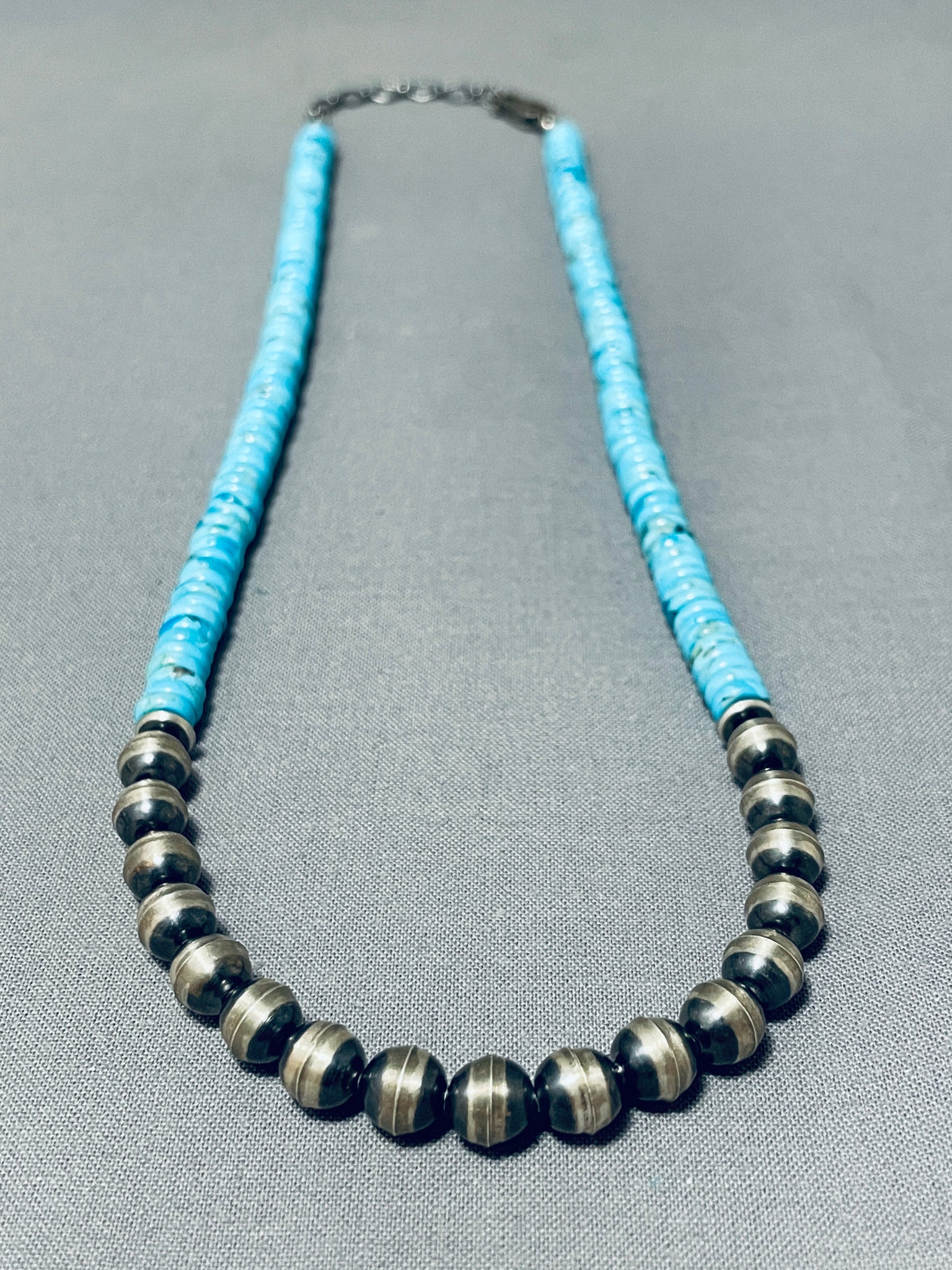 Astonishing Vintage Native American Navajo Kingman Turquoise Sterling Silver Necklace