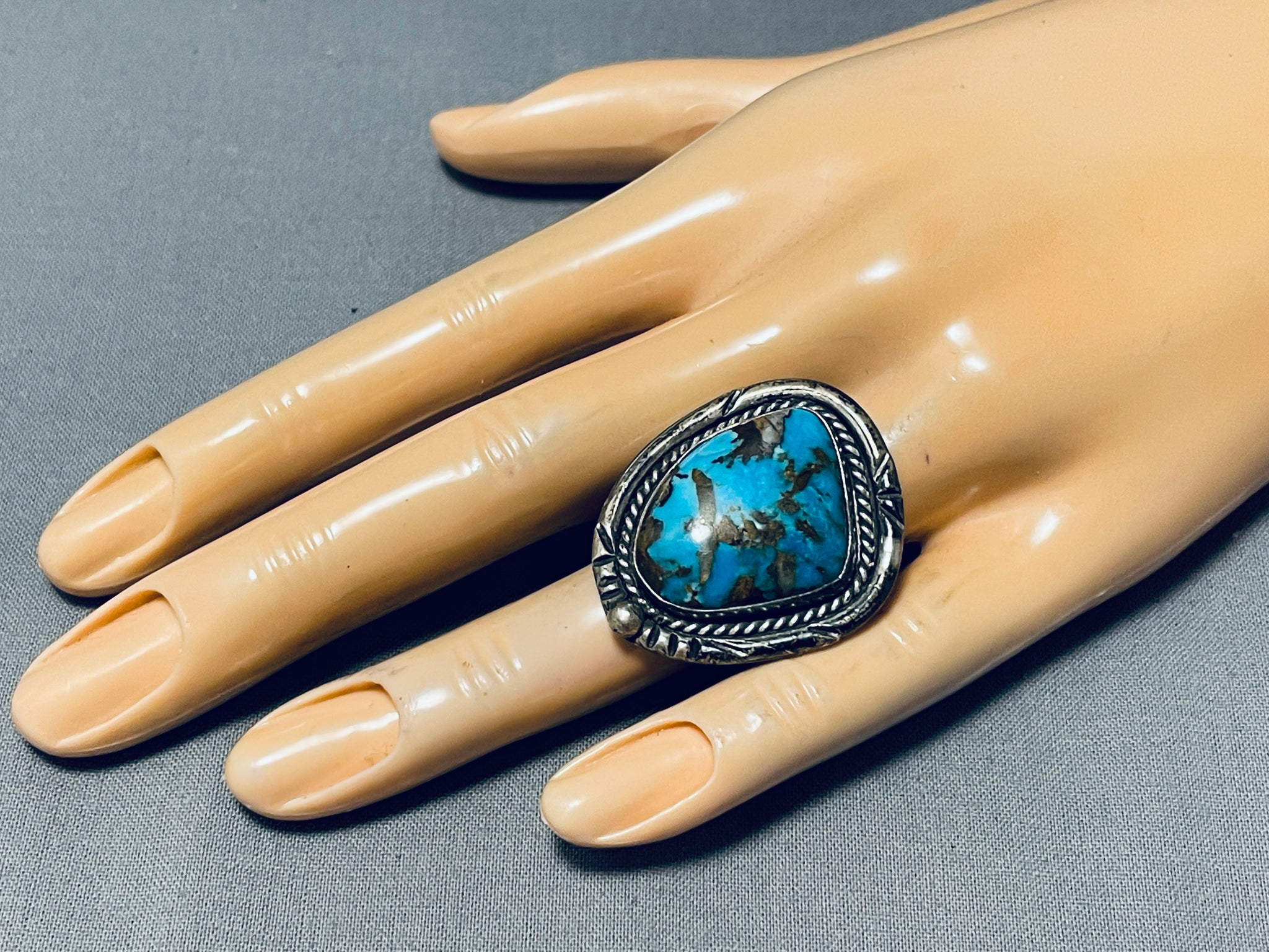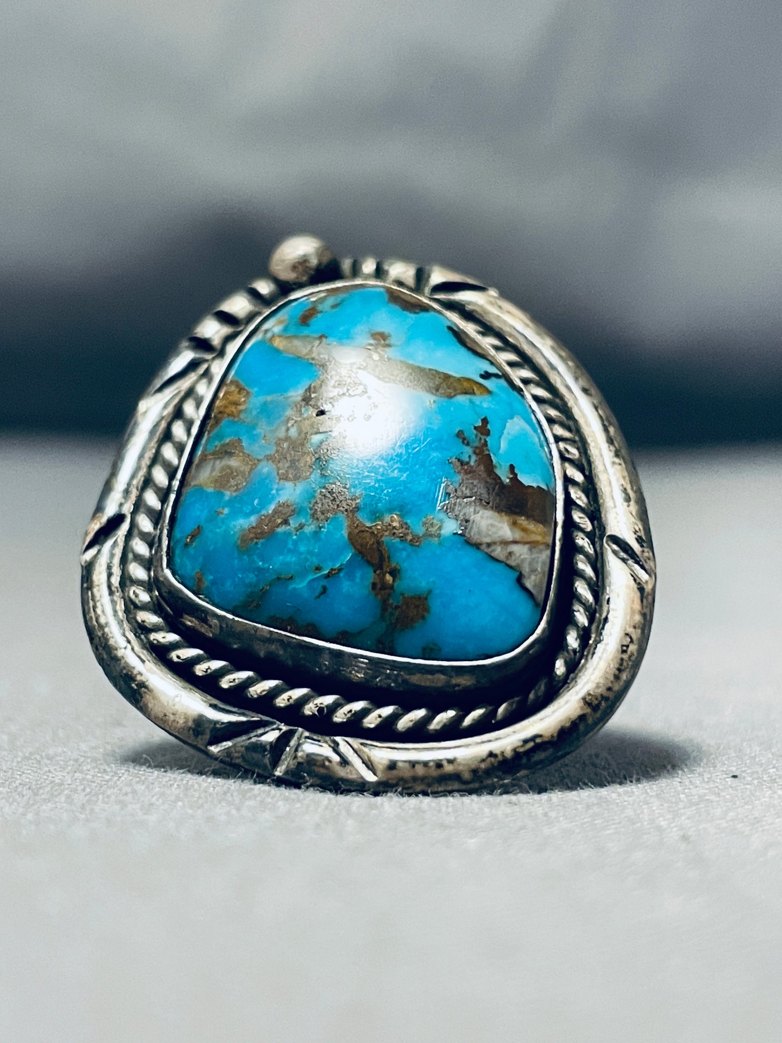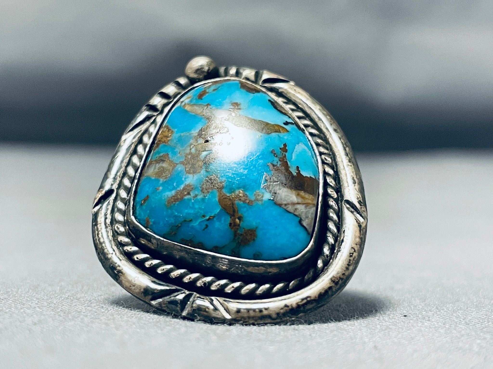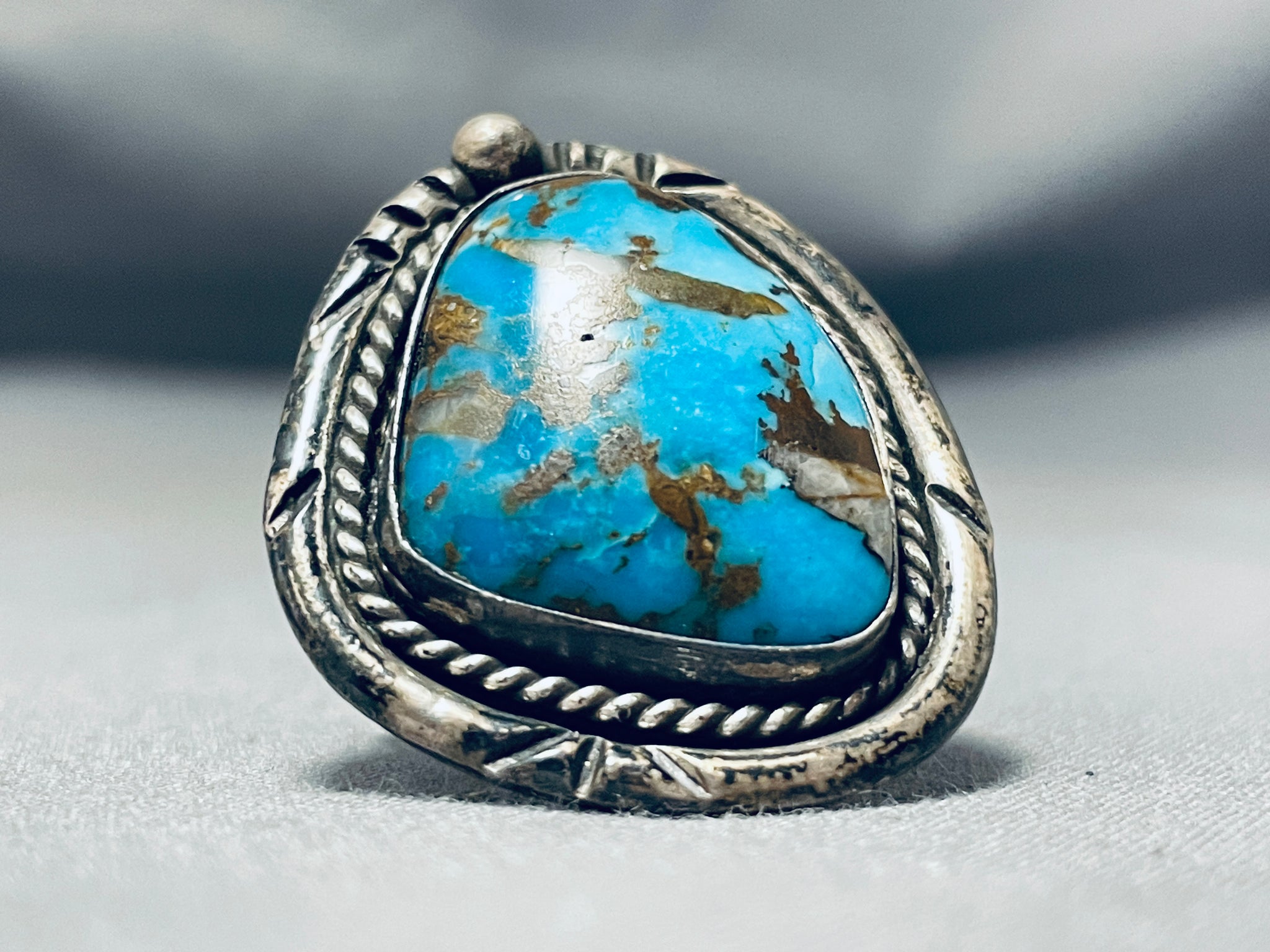 Astonishing Vintage Native American Navajo Kingman Turquoise Sterling Silver Ring