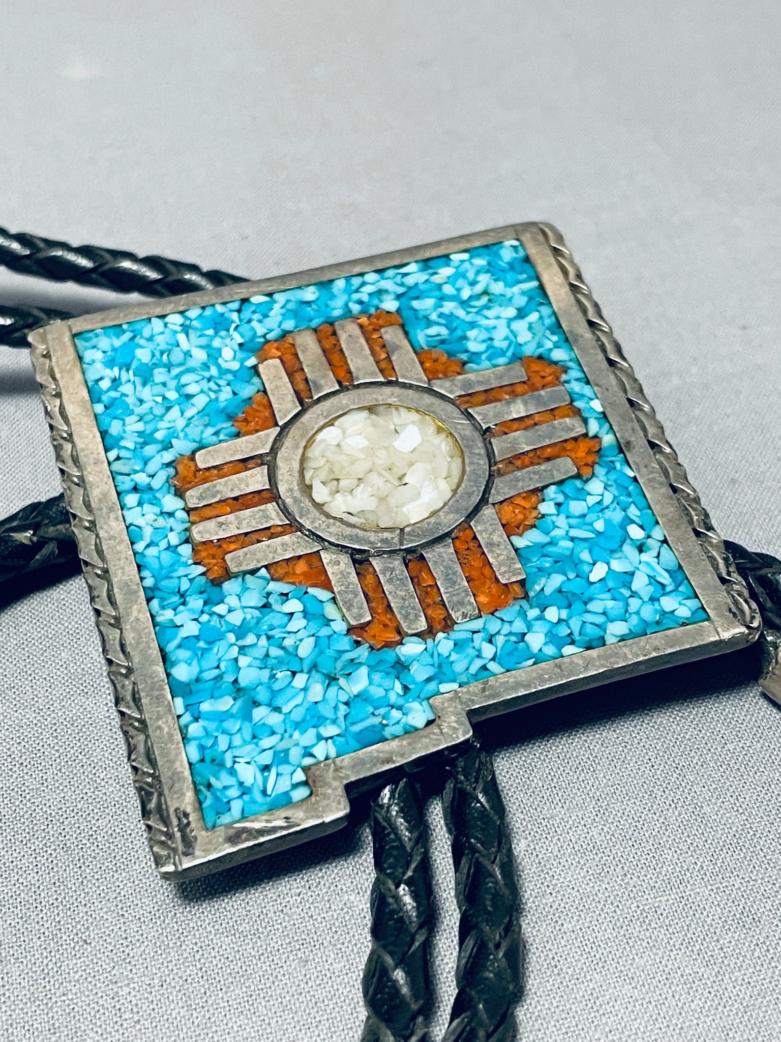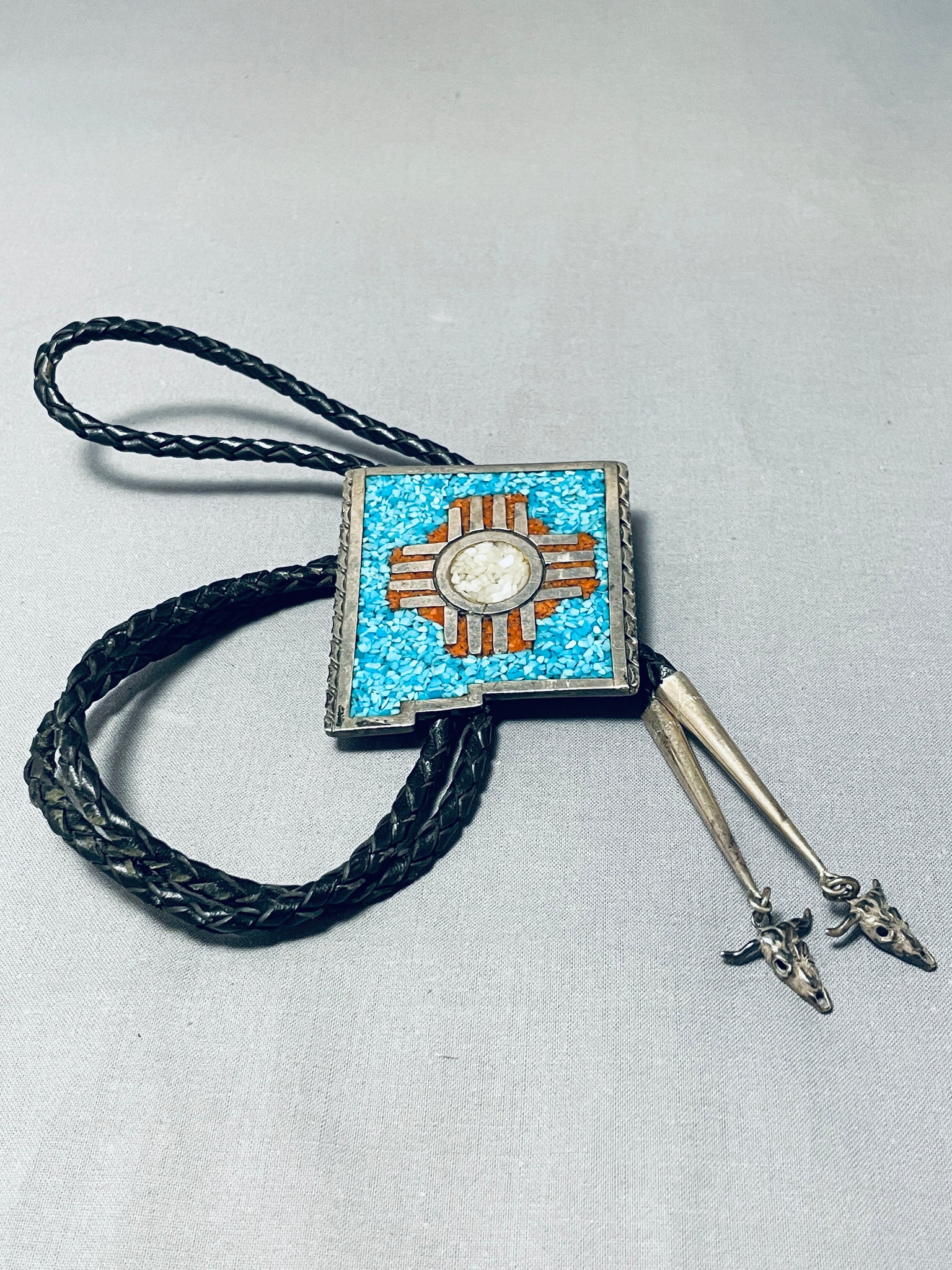 Astonishing Vintage Native American Navajo Turquoise Sterling Silver New Mexico Bolo Signed