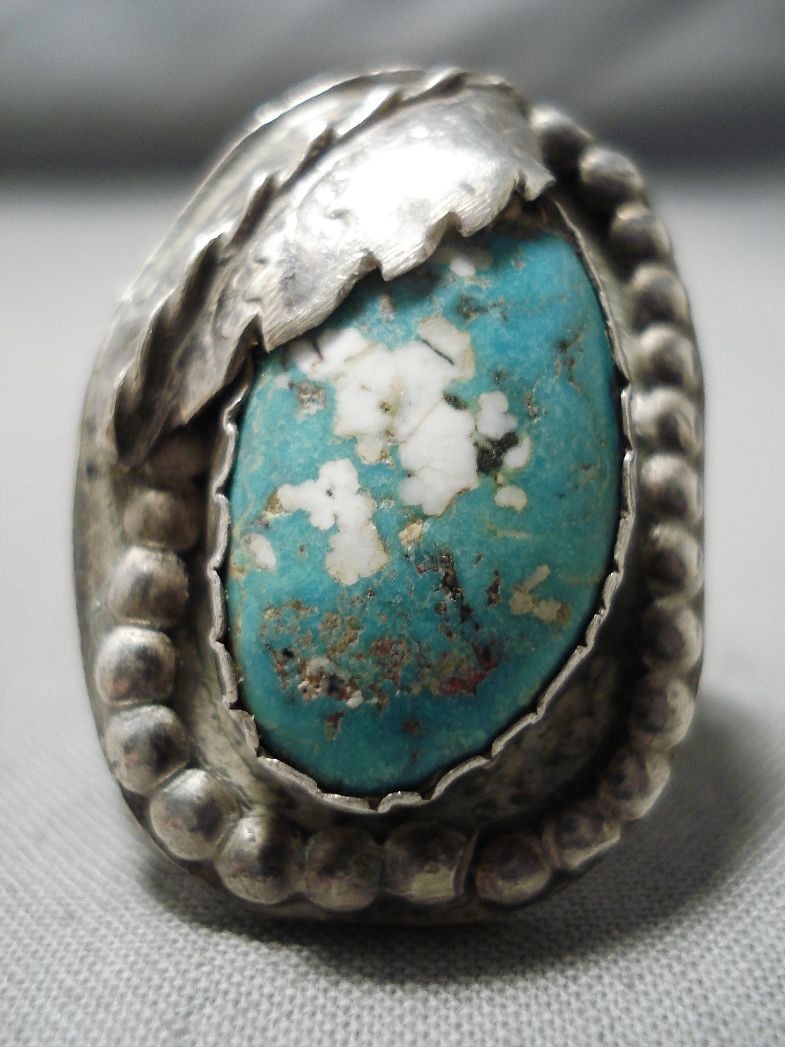 Astonishing Vintage Native American Navajo Turquoise Sterling Silver Ring Old