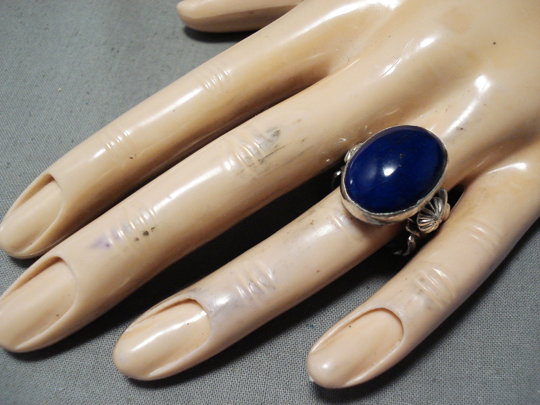 Beautiful Navajo Native American Huge Lapis Sterling Silver Ring