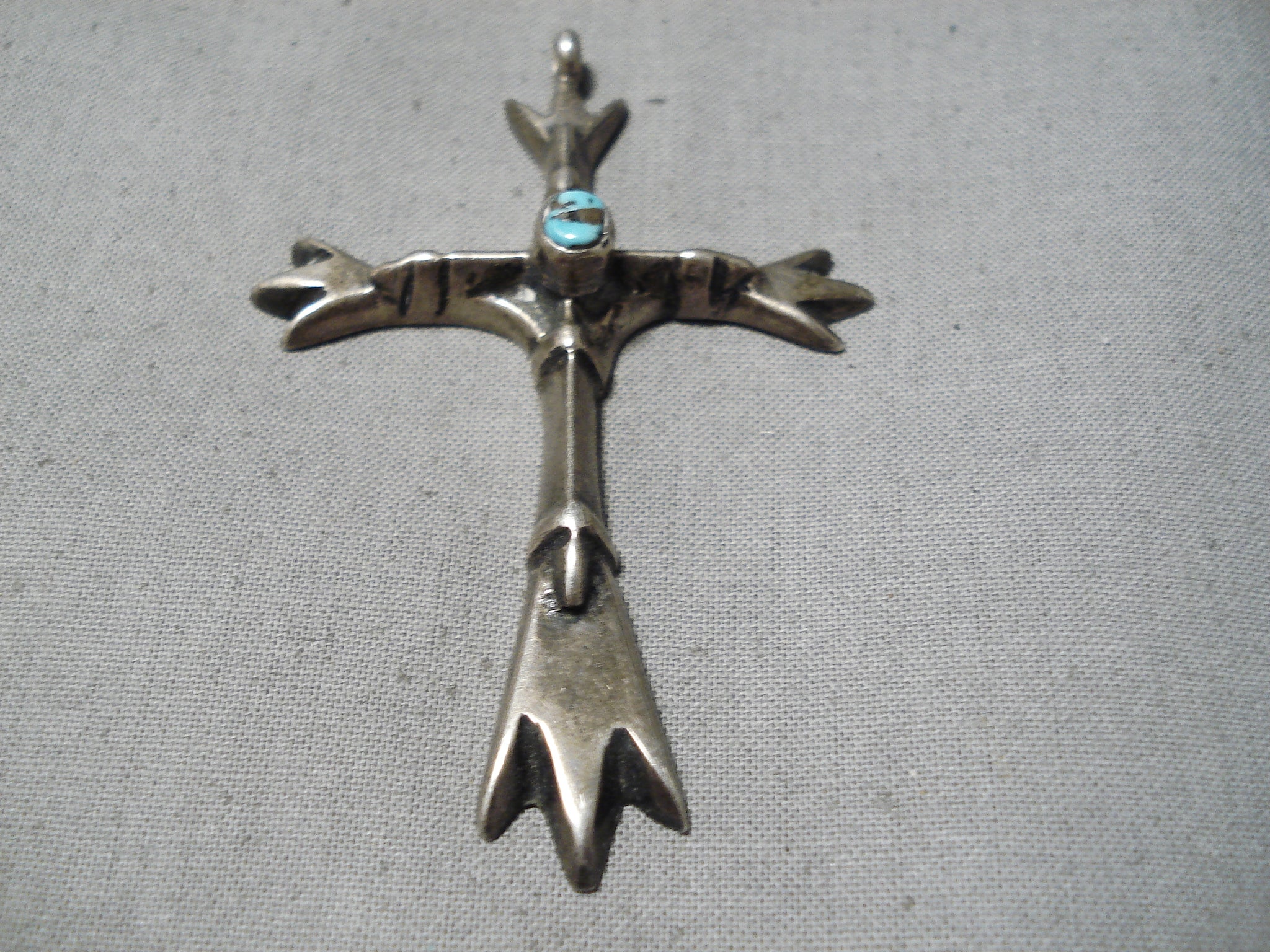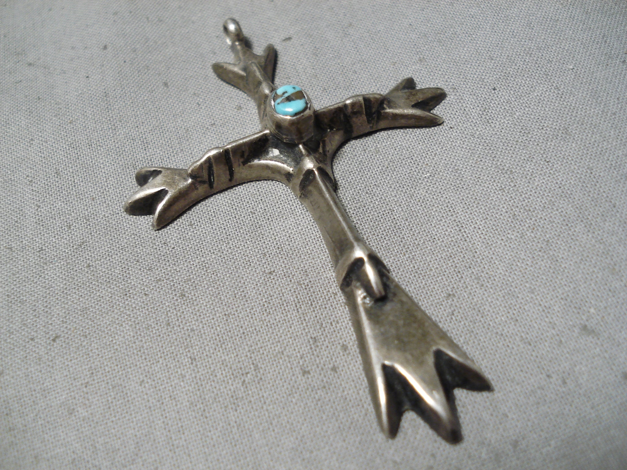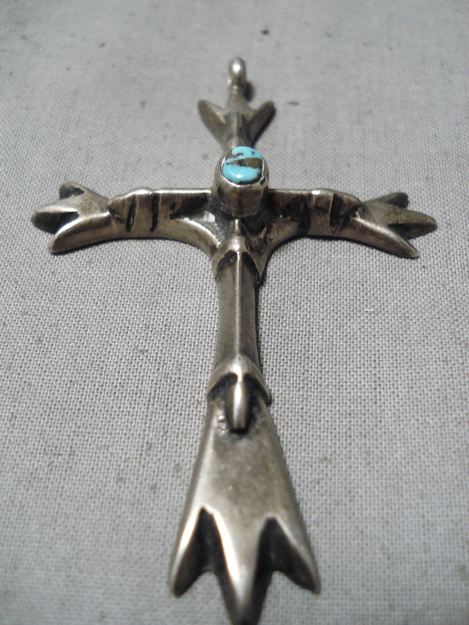 Beautiful Vintage Native American Navajo Bisbee Turquoise Sterling Silver Cross Pendant