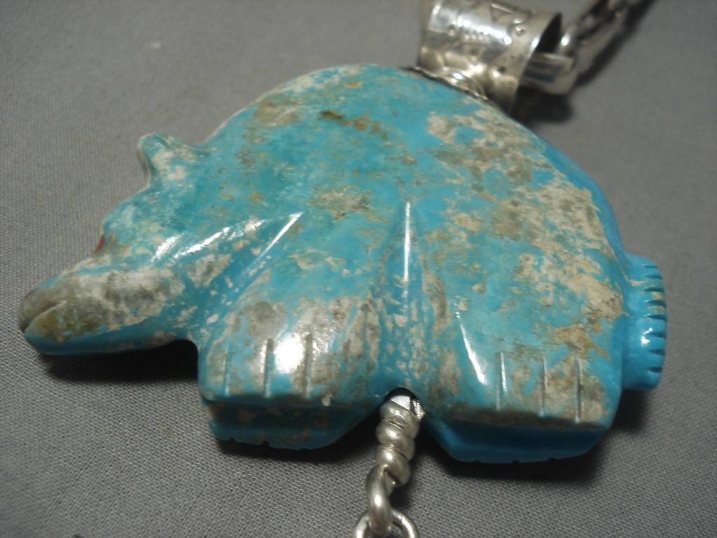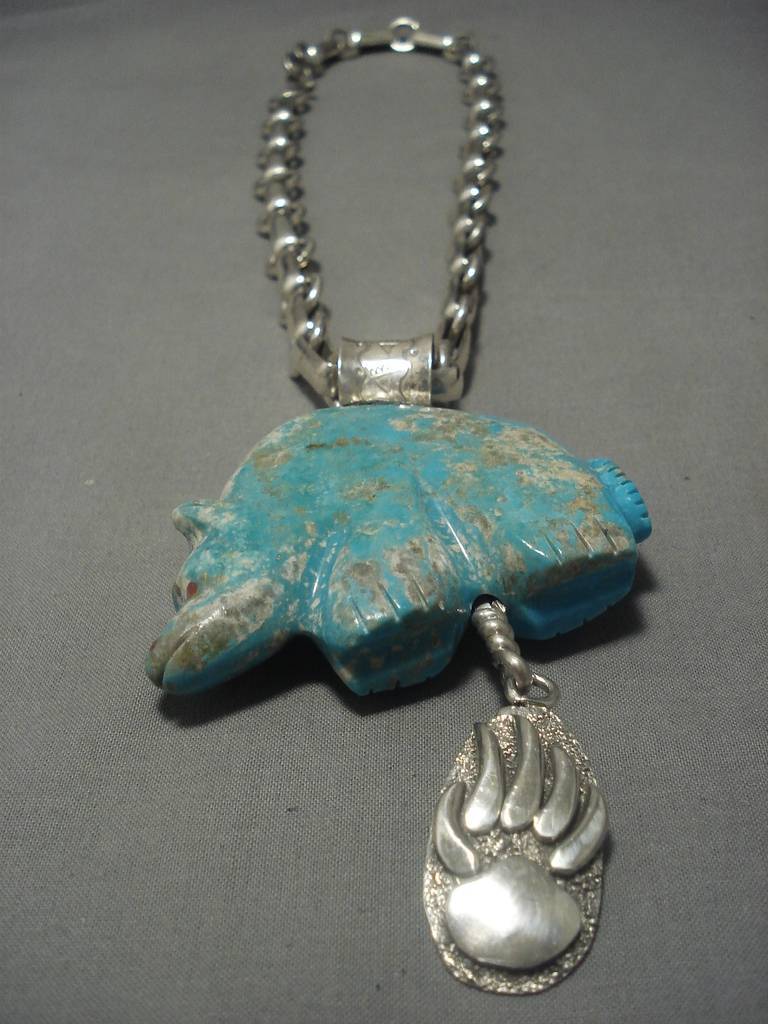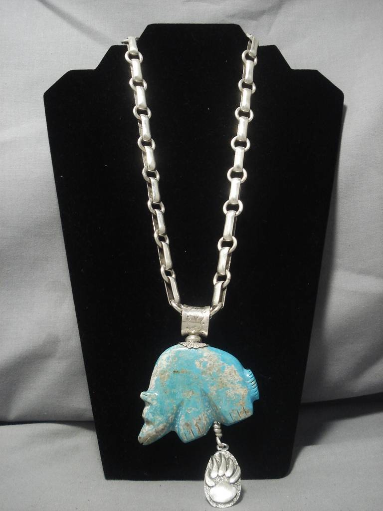 Best Native American Navajo Sterling Silver Turquoise Bear Fetish Necklace Ben Begaye