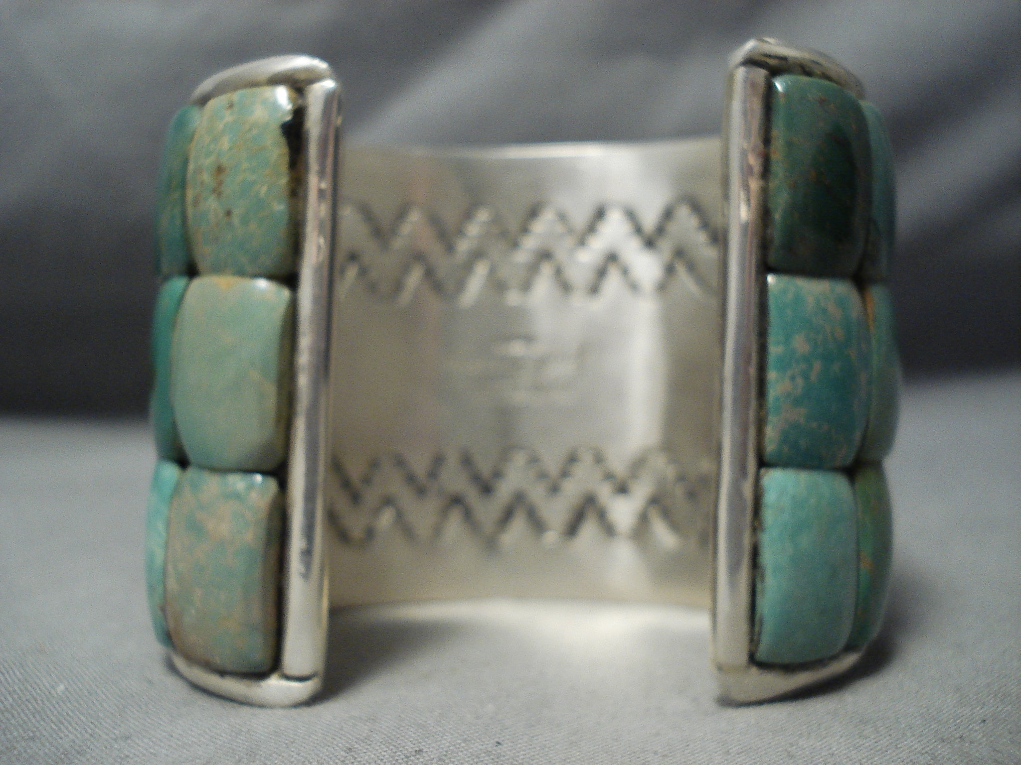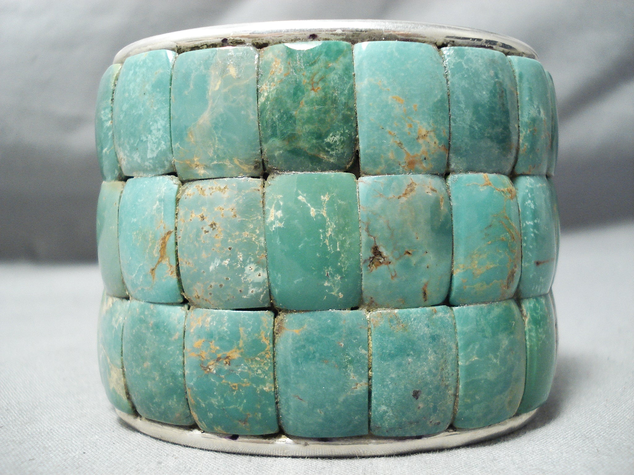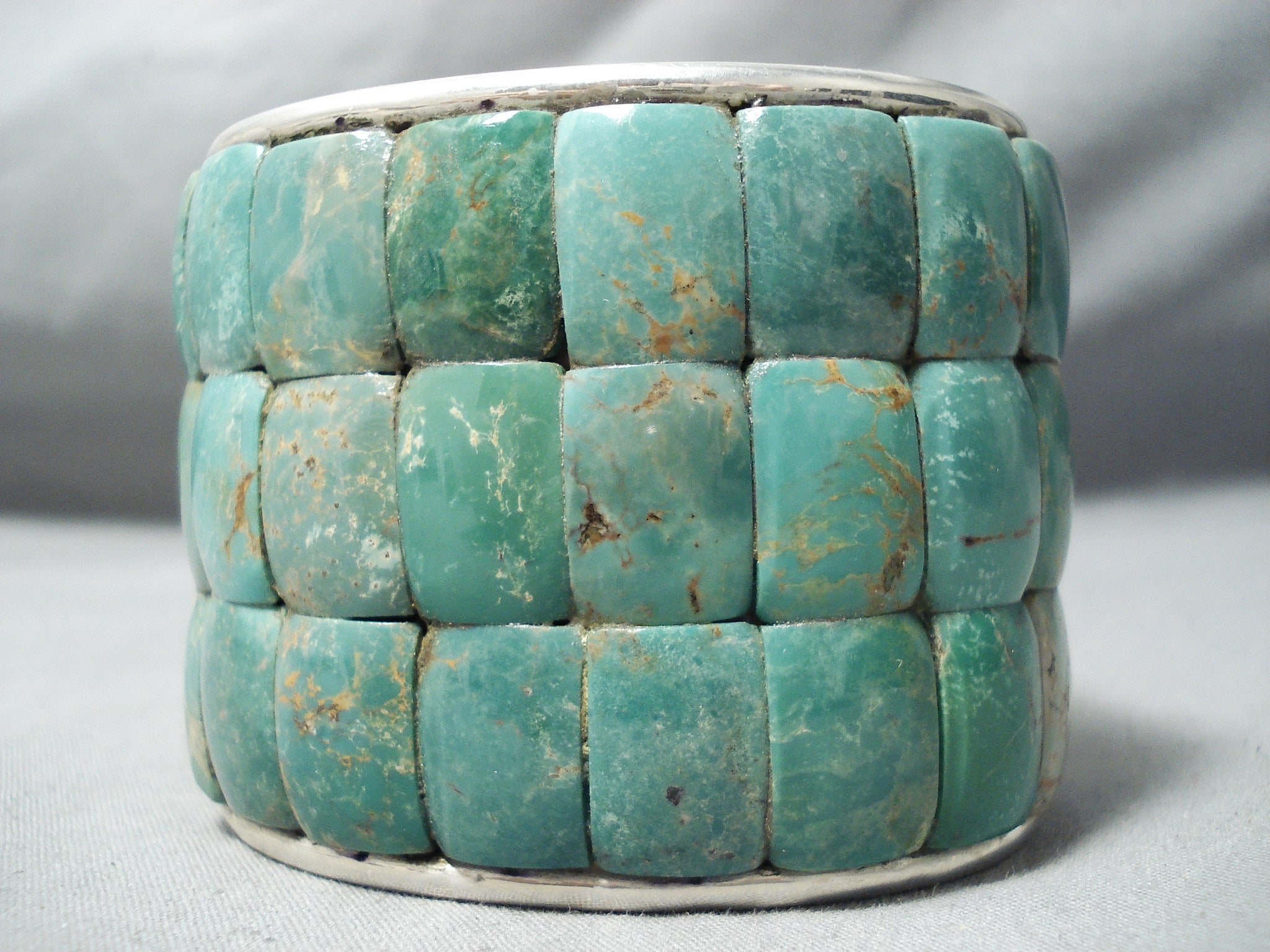 Best Native American Squared Green Turquoise Sterling Silver Bracelet