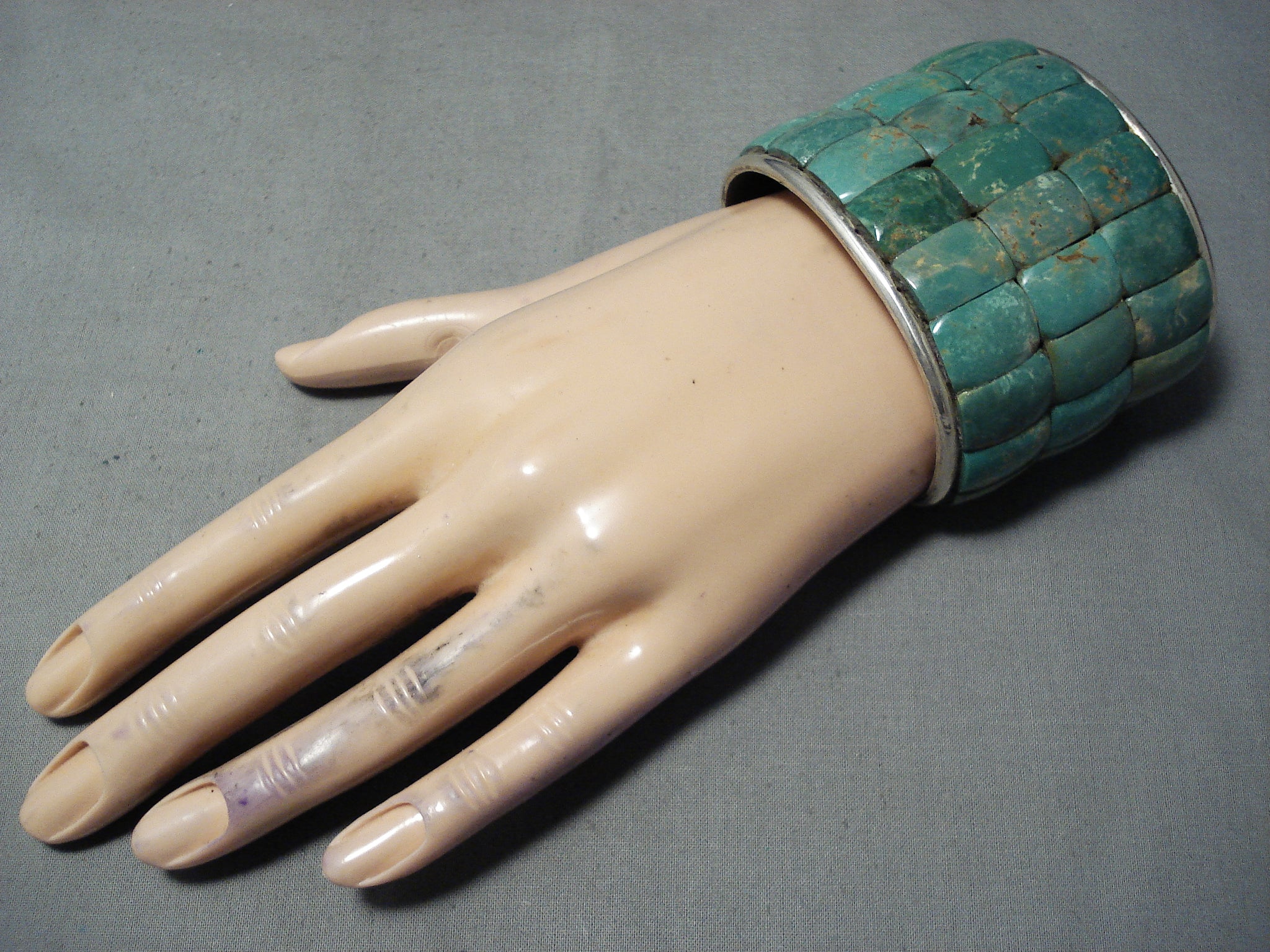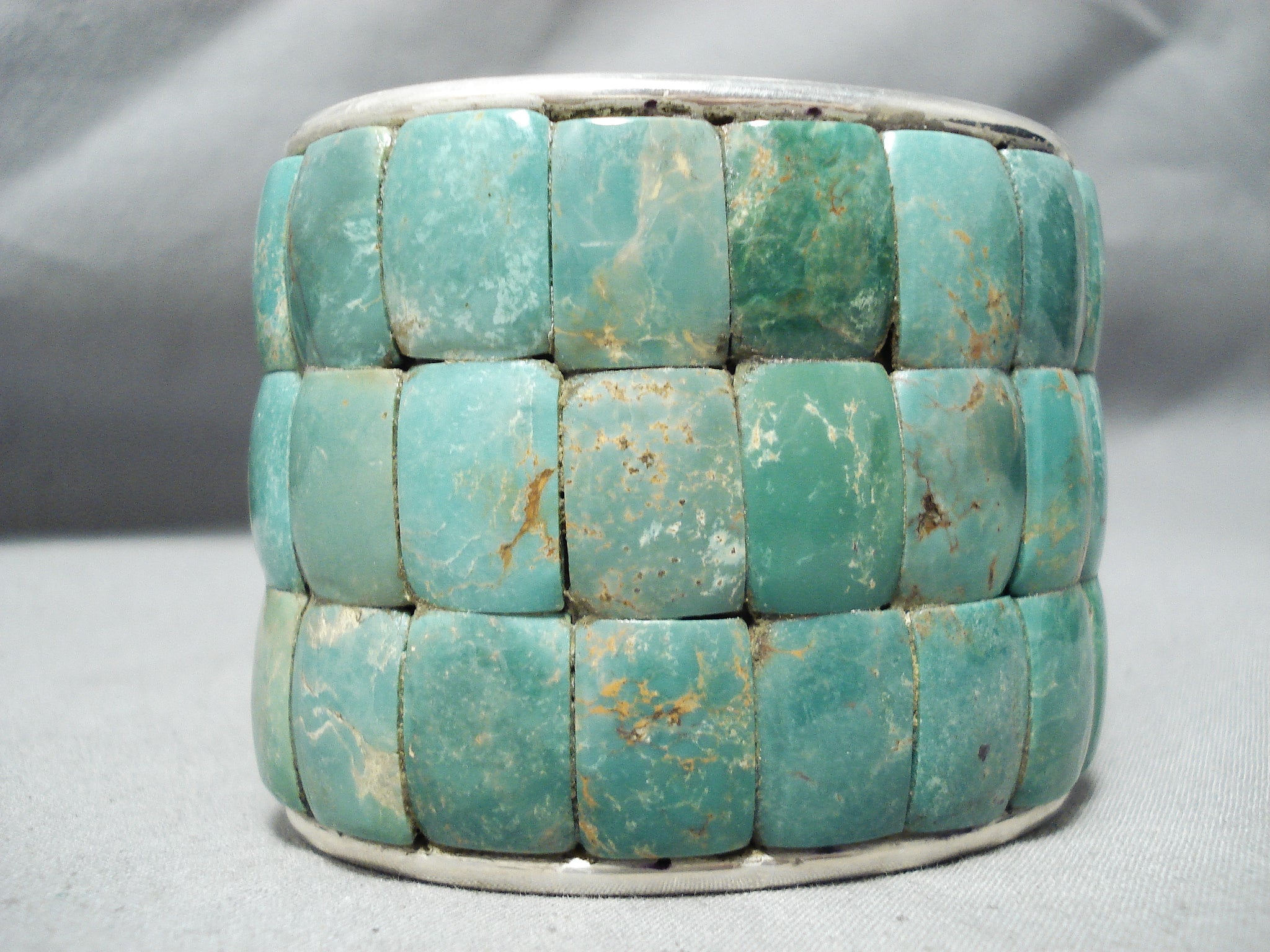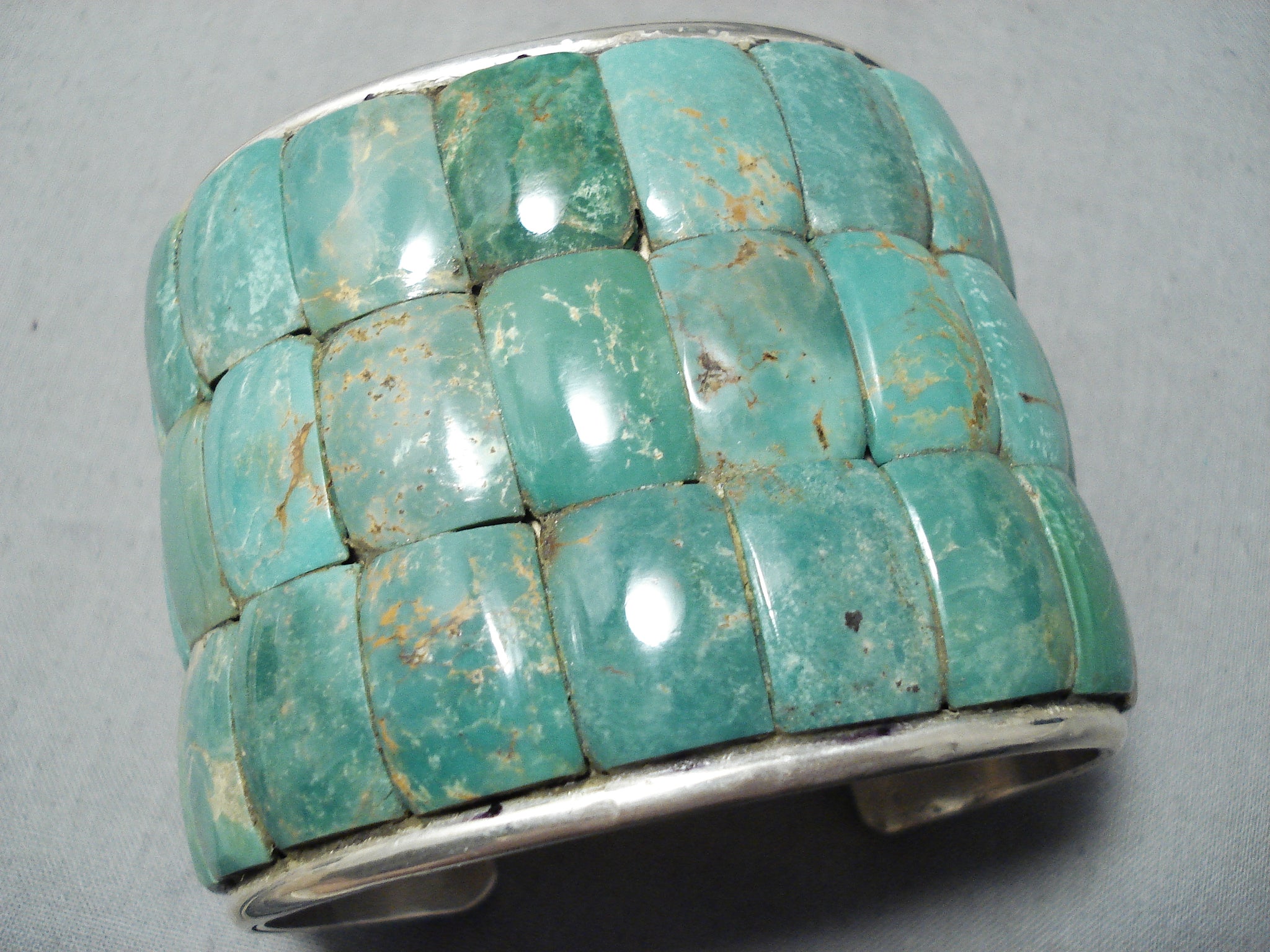 Best Native American Squared Green Turquoise Sterling Silver Bracelet