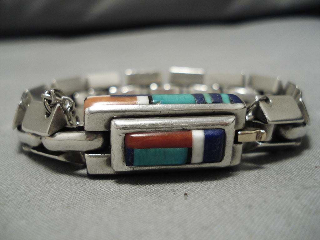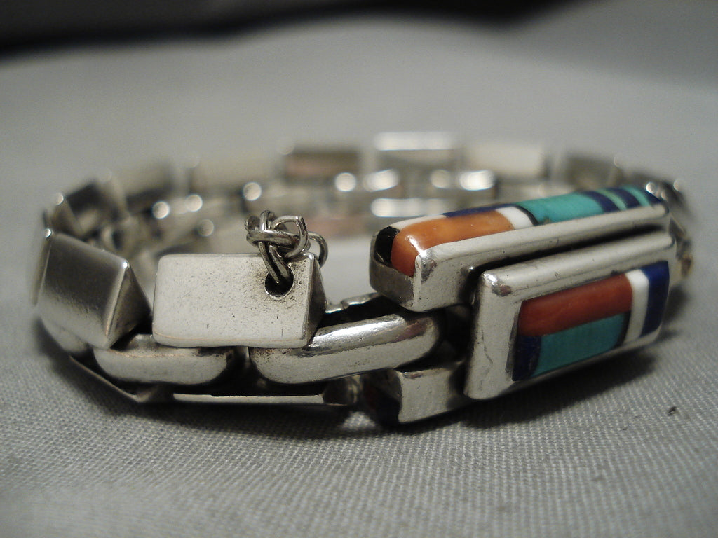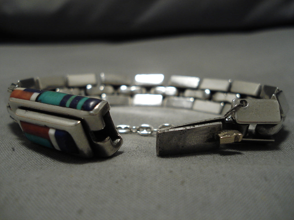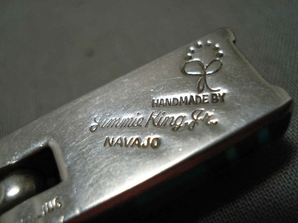 Best Vintage Native American Navajo Jimmie King Jr Turquoise Inlay Link Sterling Silver Bracelet