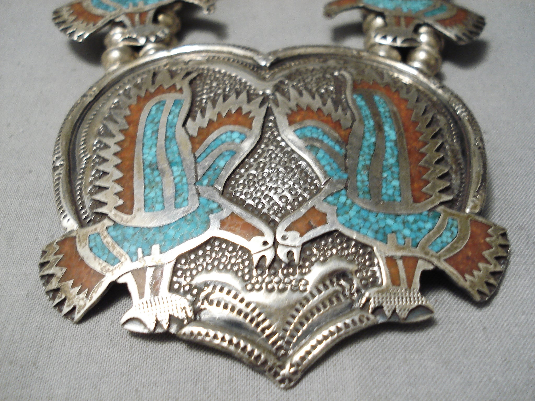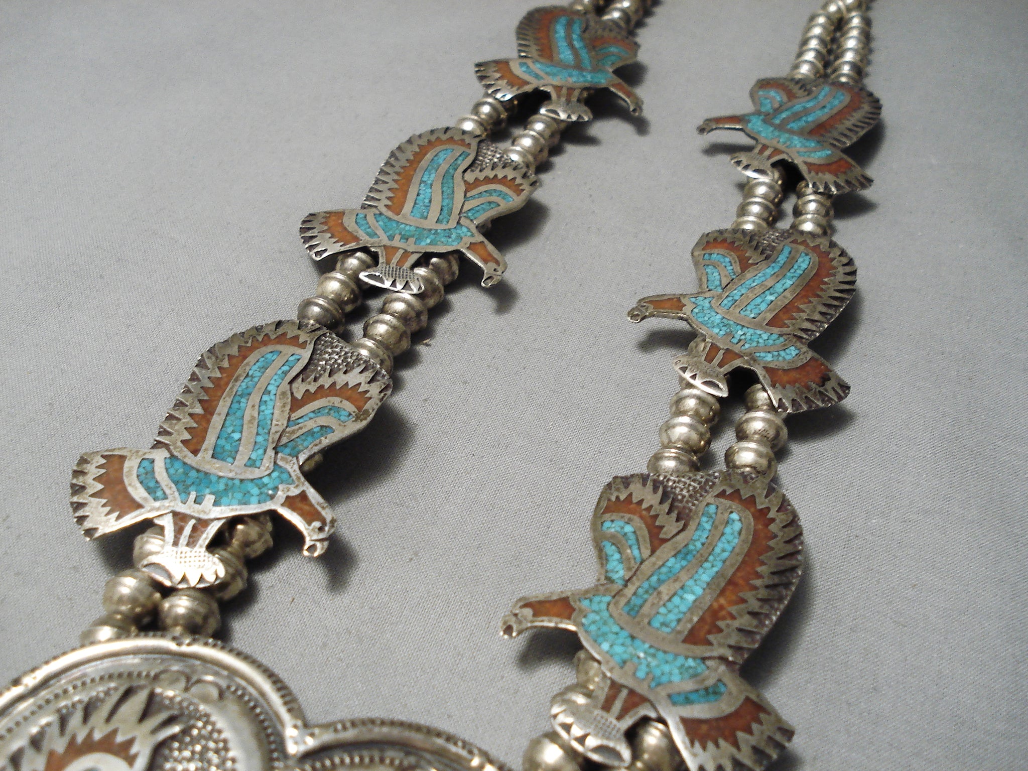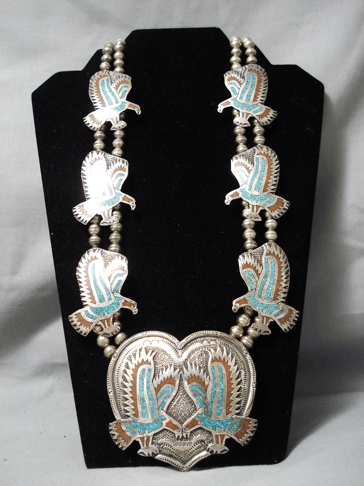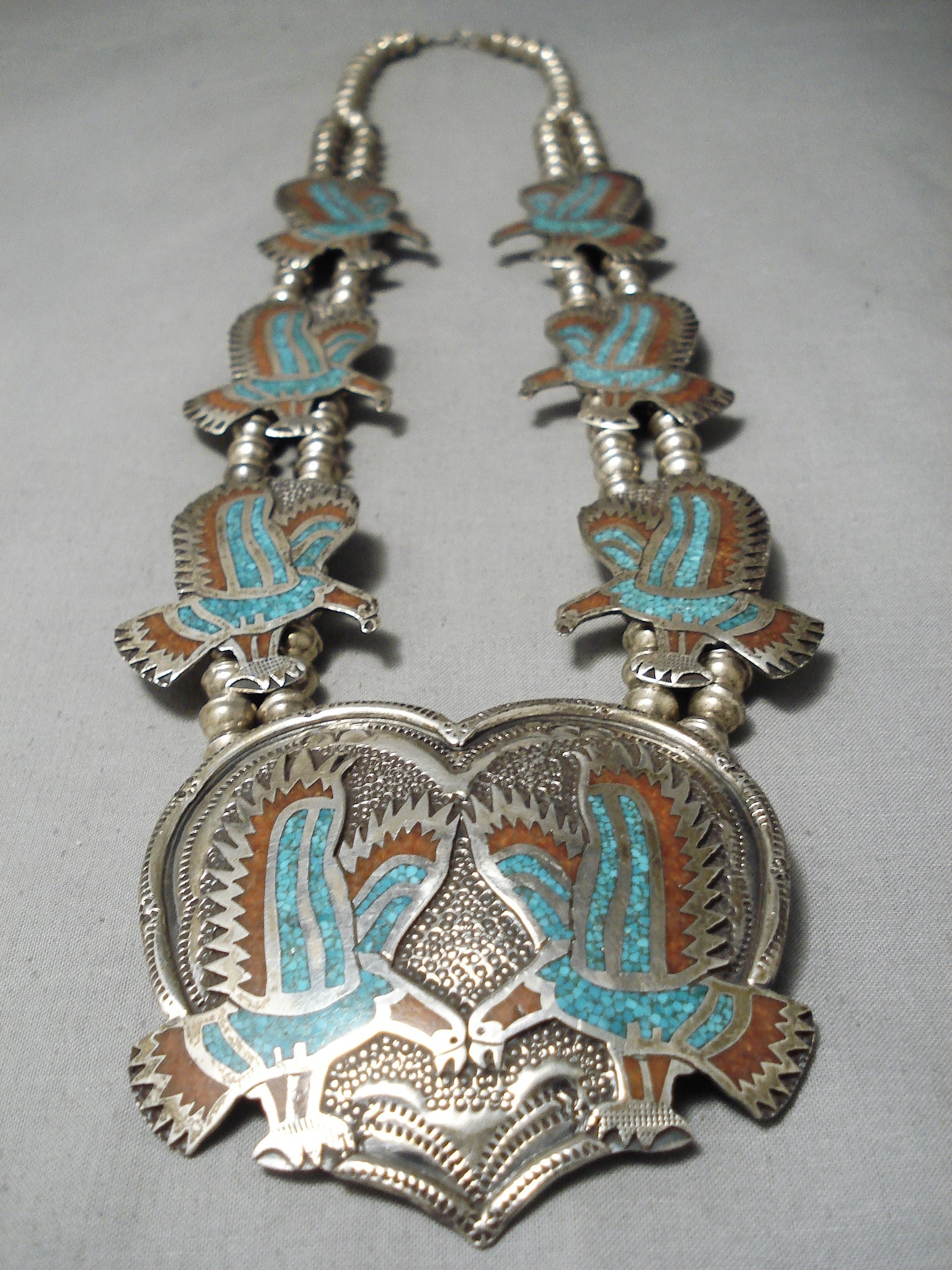Best Vintage Native American Navajo Wil Singer Turquoise Sterling Silver Squash Blossom Necklace