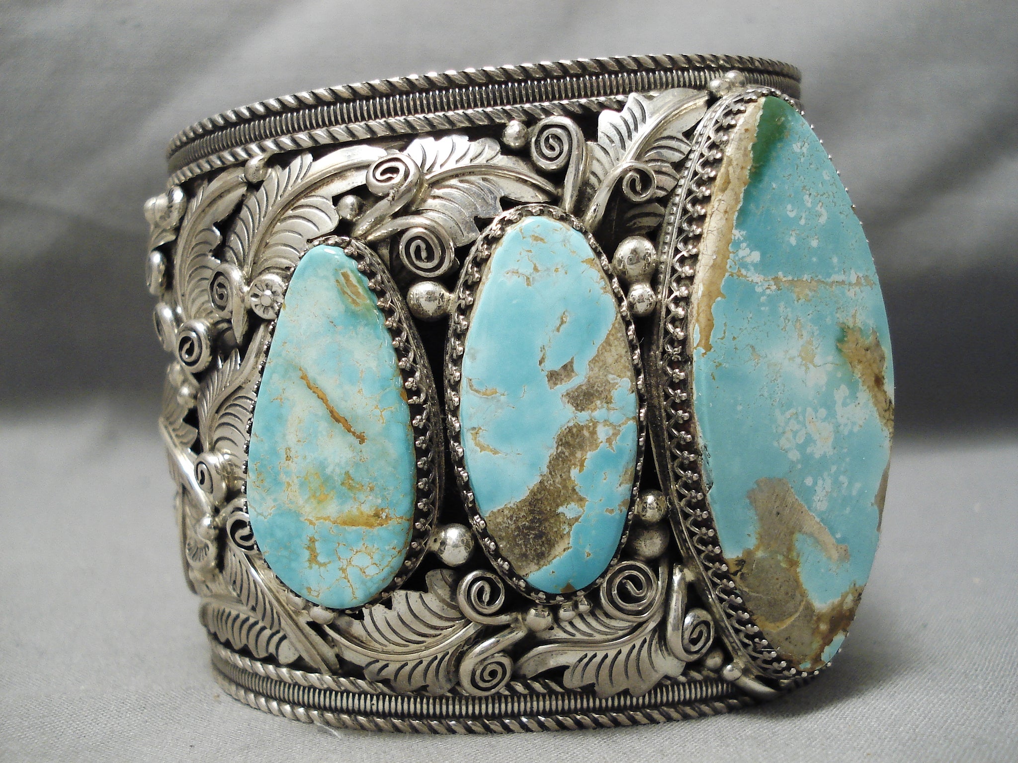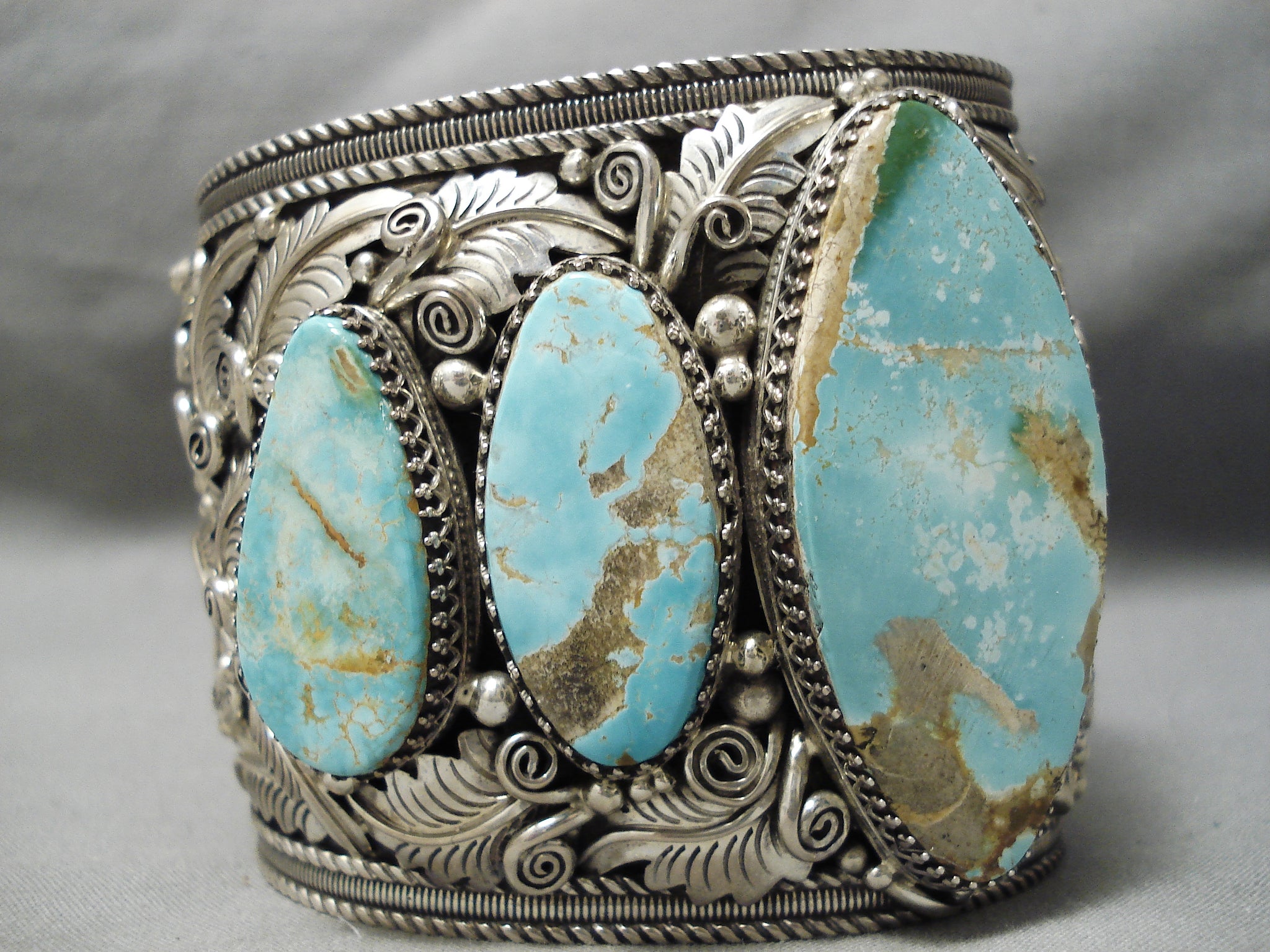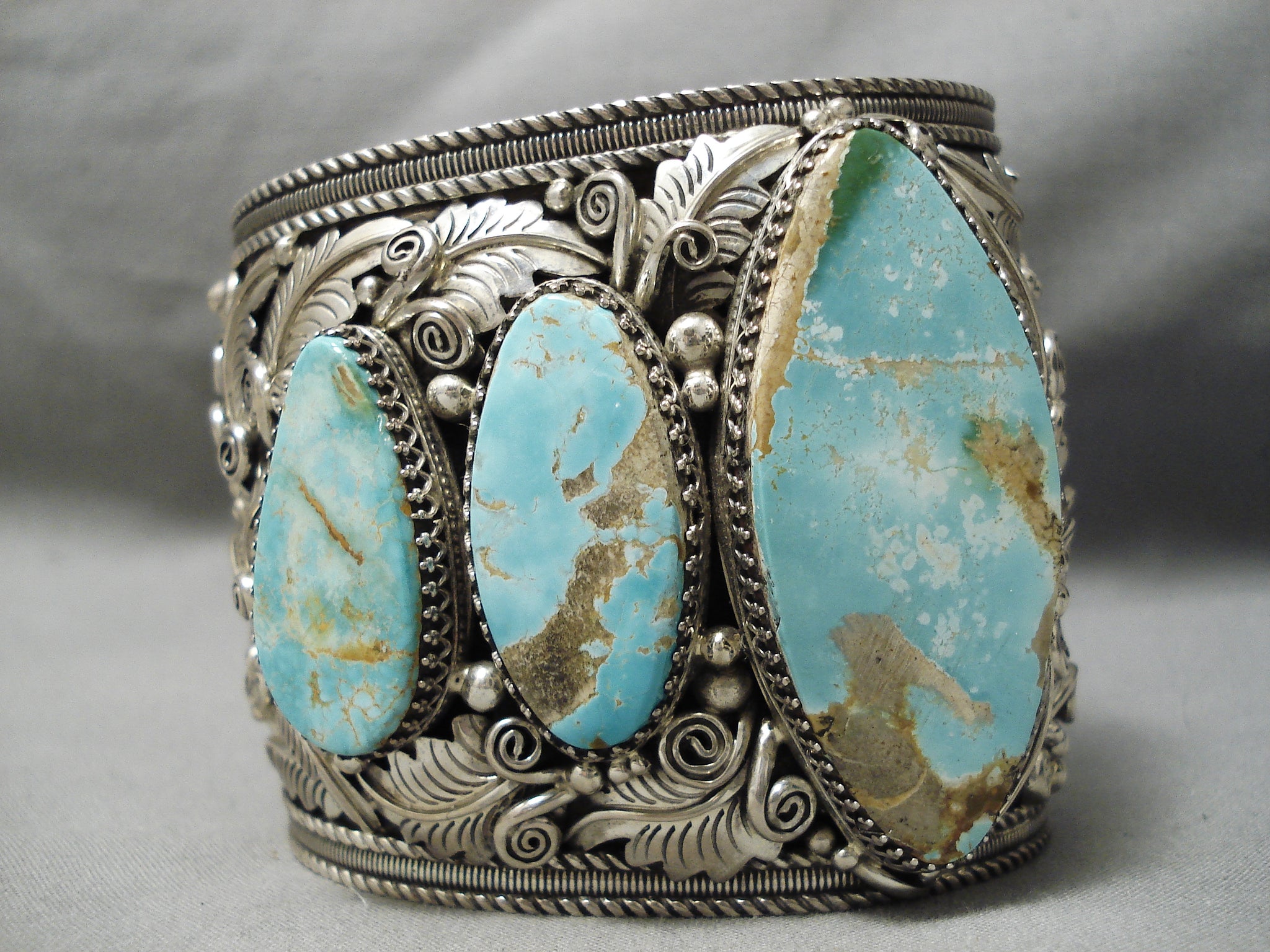 Biggest Best Vintage Native American Navajo #8 Turquoise Sterling Silver Bracelet Old