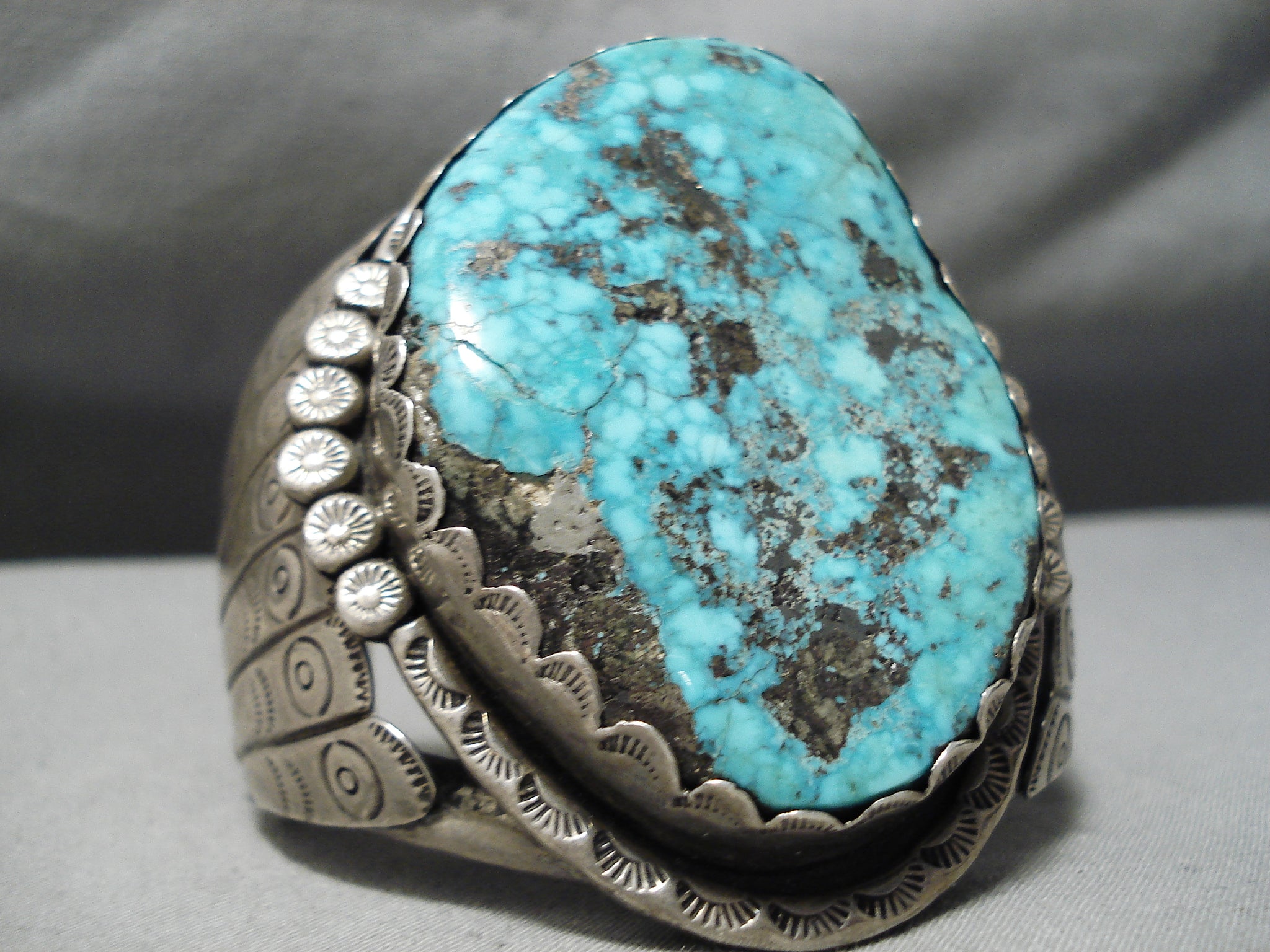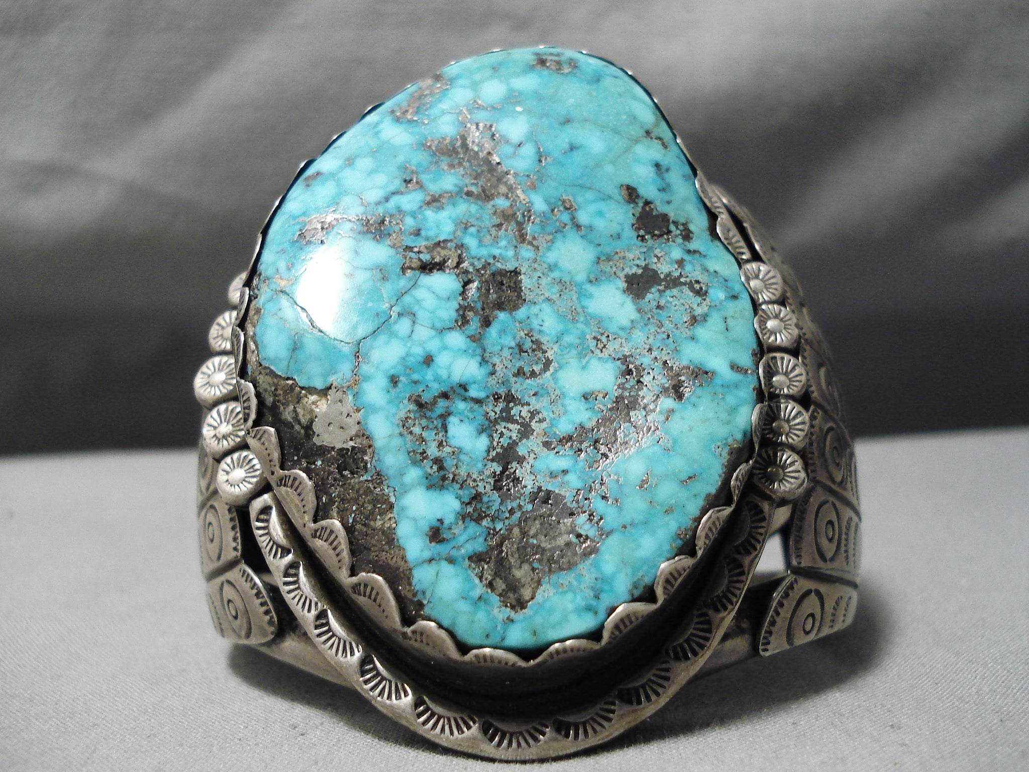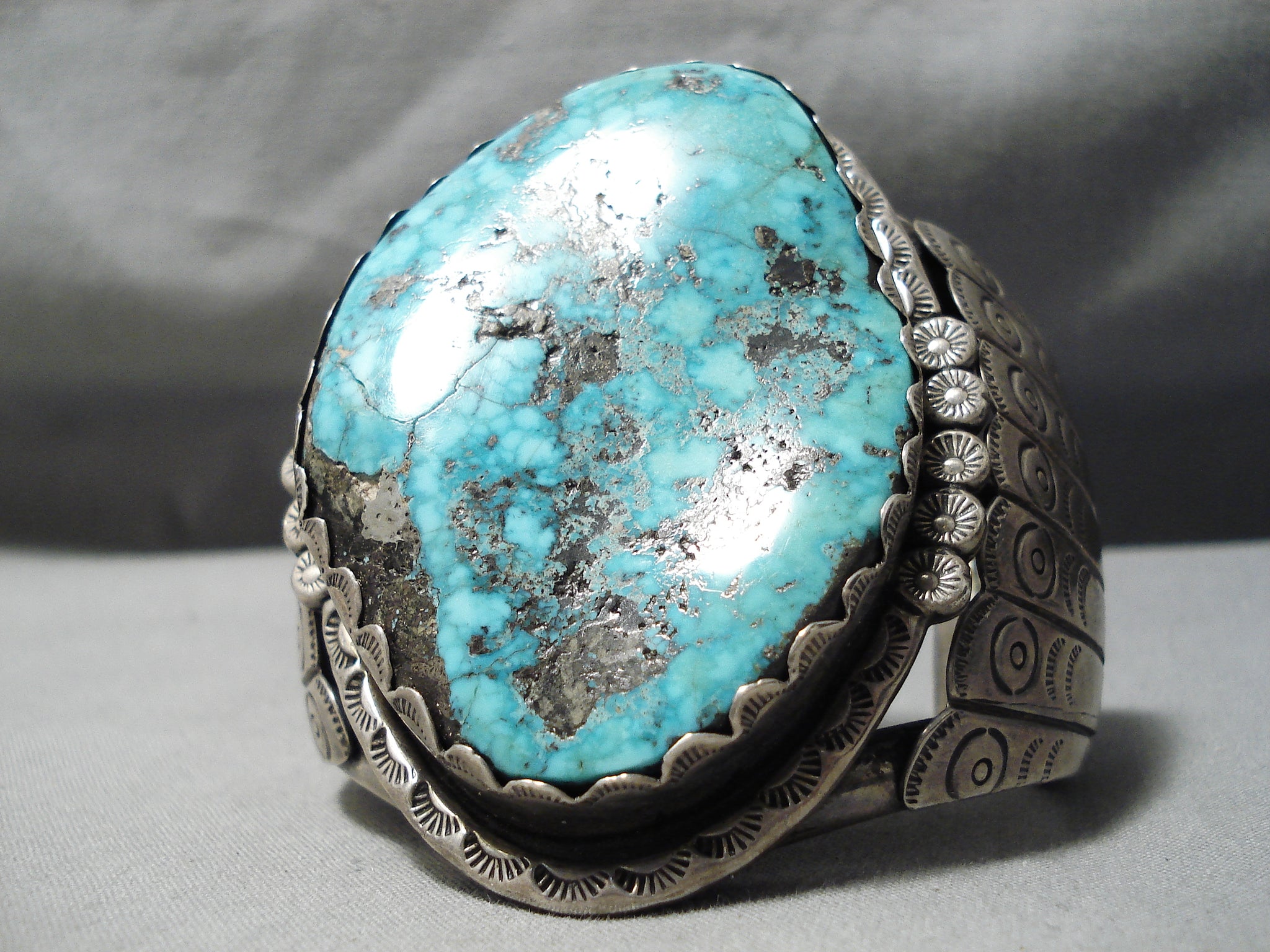 Biggest Best Vintage Native American Navajo Lone Mountain Turquoise Sterling Silver Bracelet