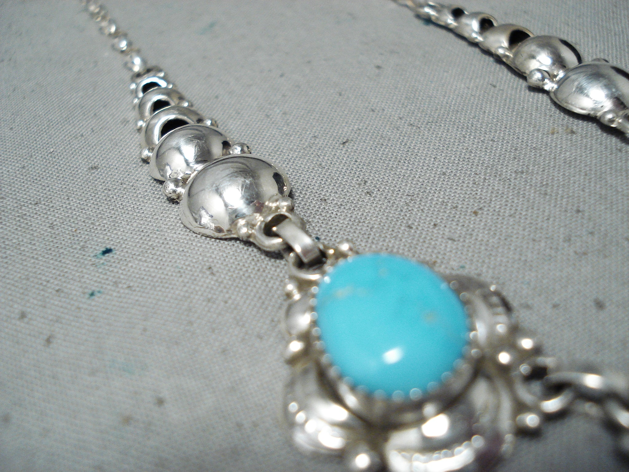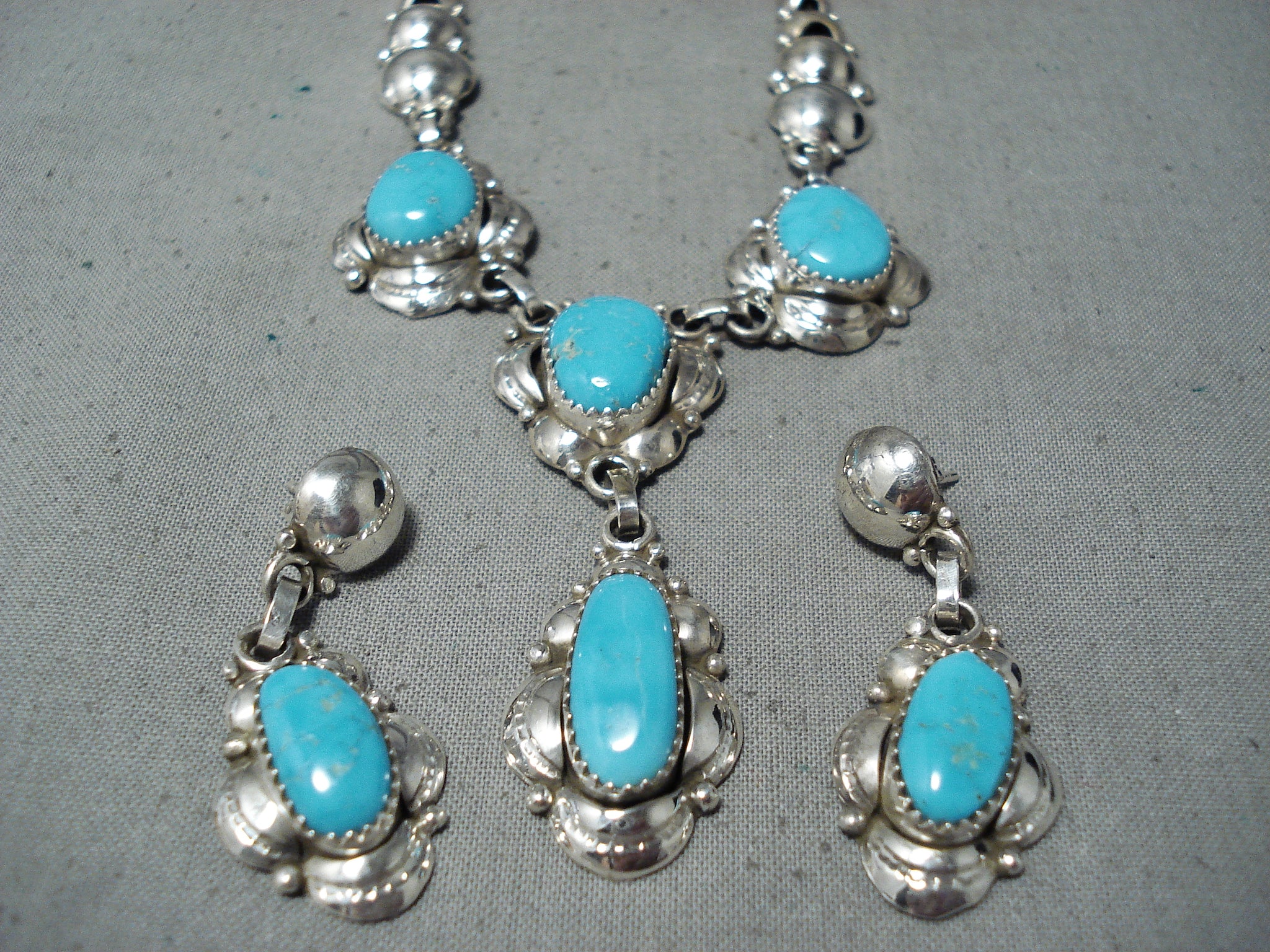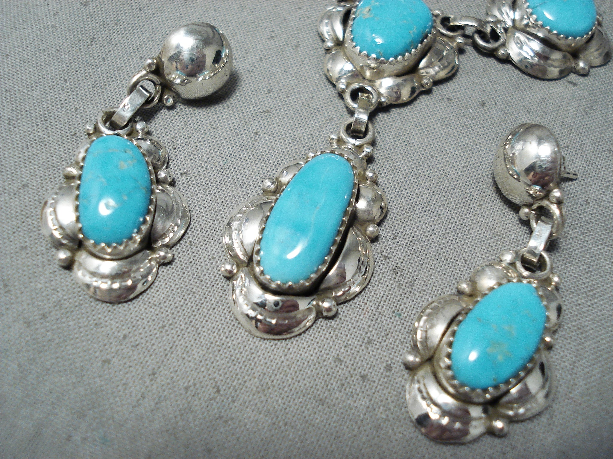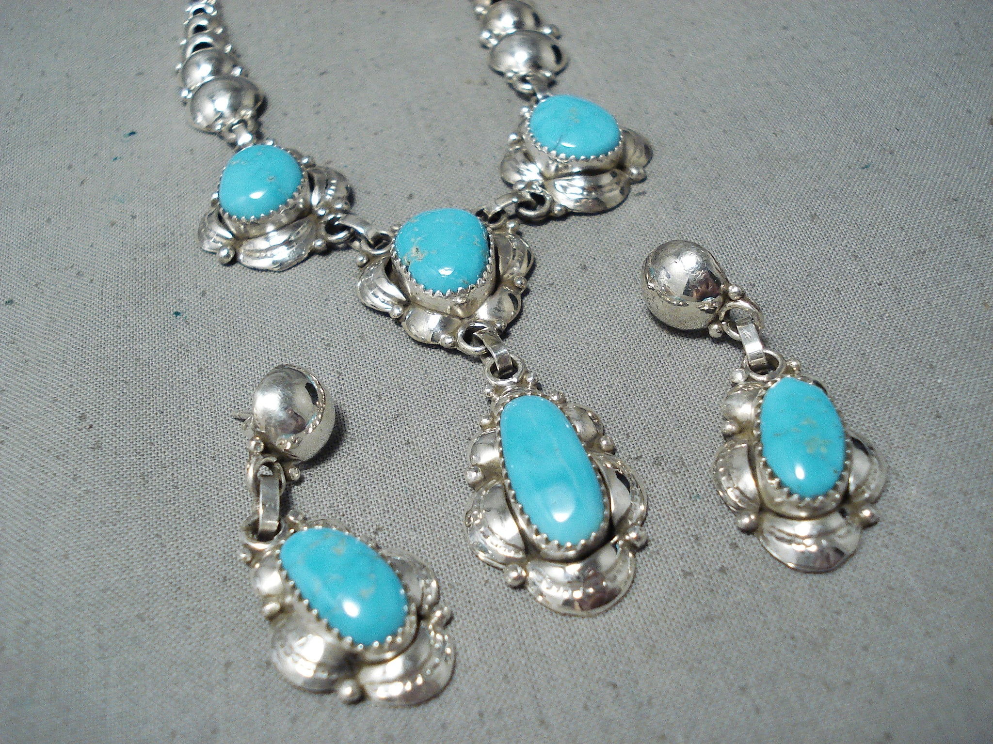 Celm Nalwood Native American Navajo Blue Gem Turquoise Sterling Silver Necklace & Earring Set