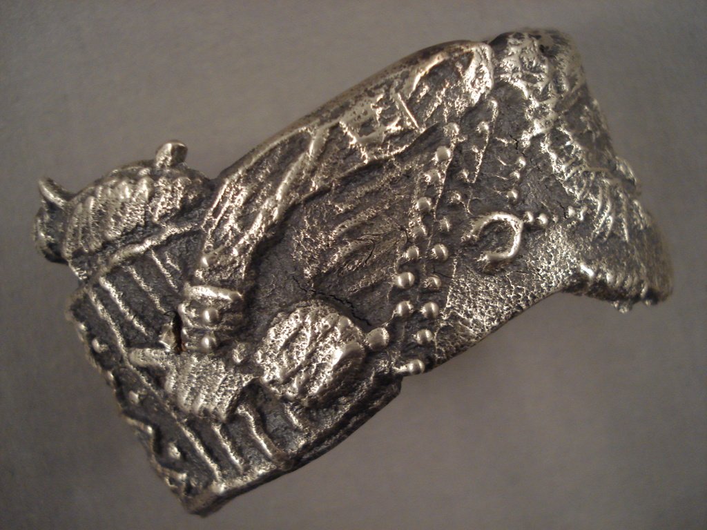 Ceremonial Dancer Tufa Casted Navajo Native American Jewelry Silver Bracelet