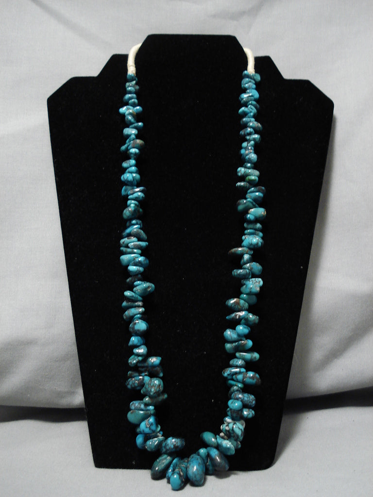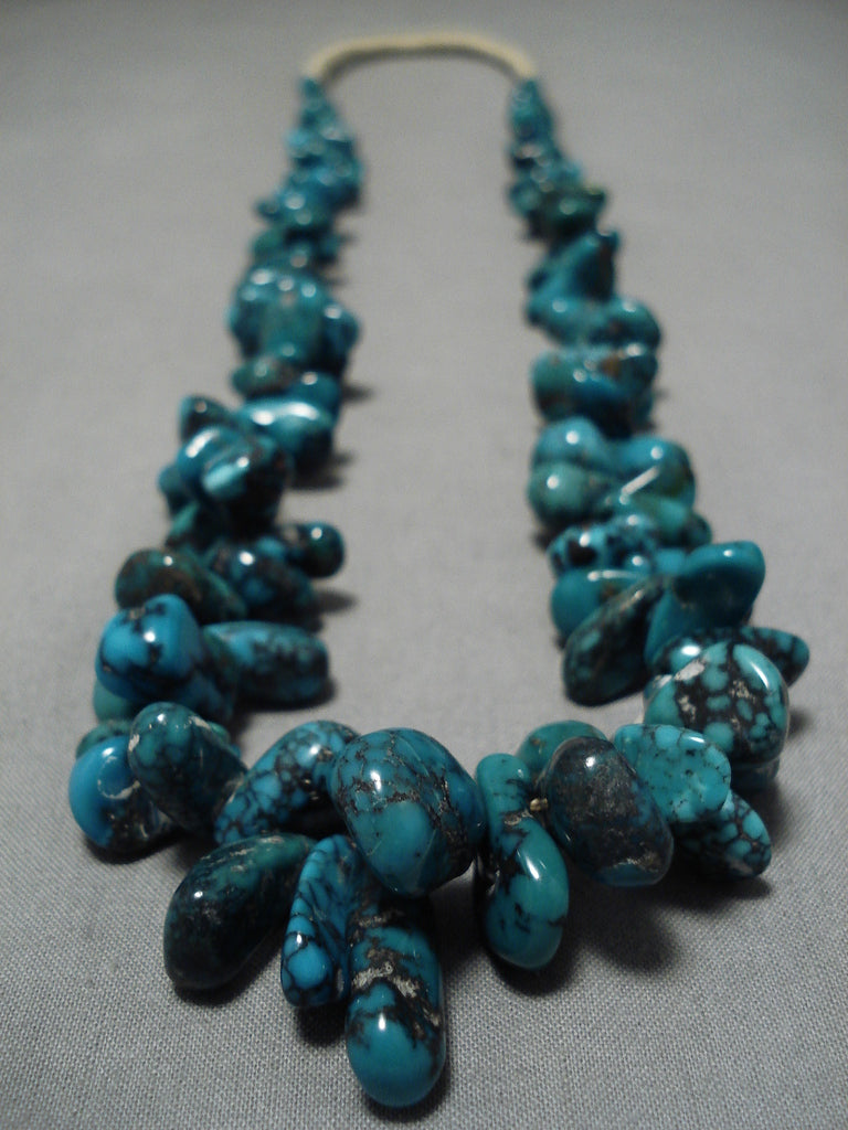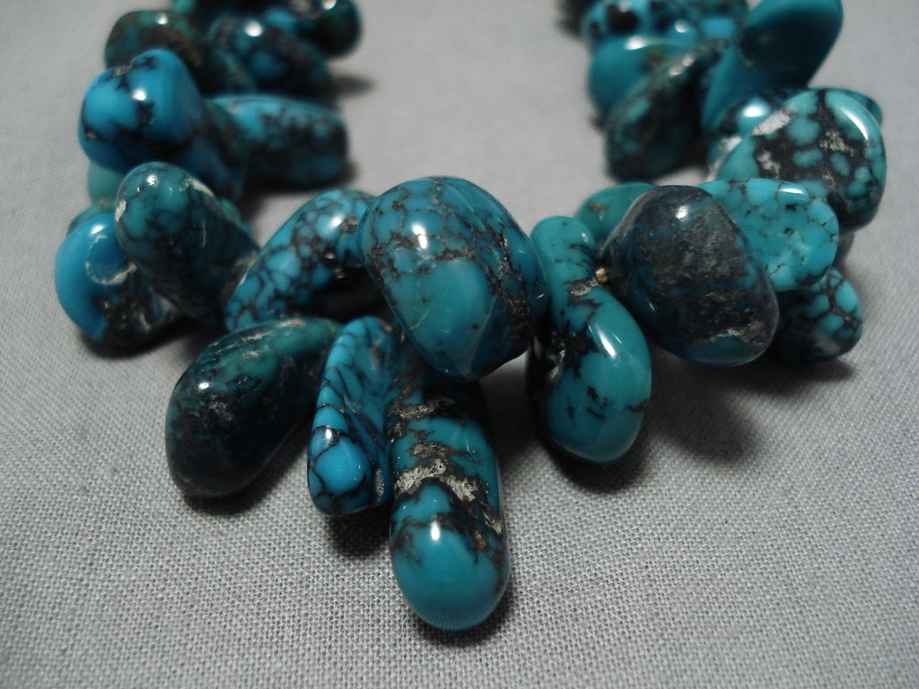 Chunky And Large Spiderweb Turquoise Vintage Native American Navajo Necklace Old