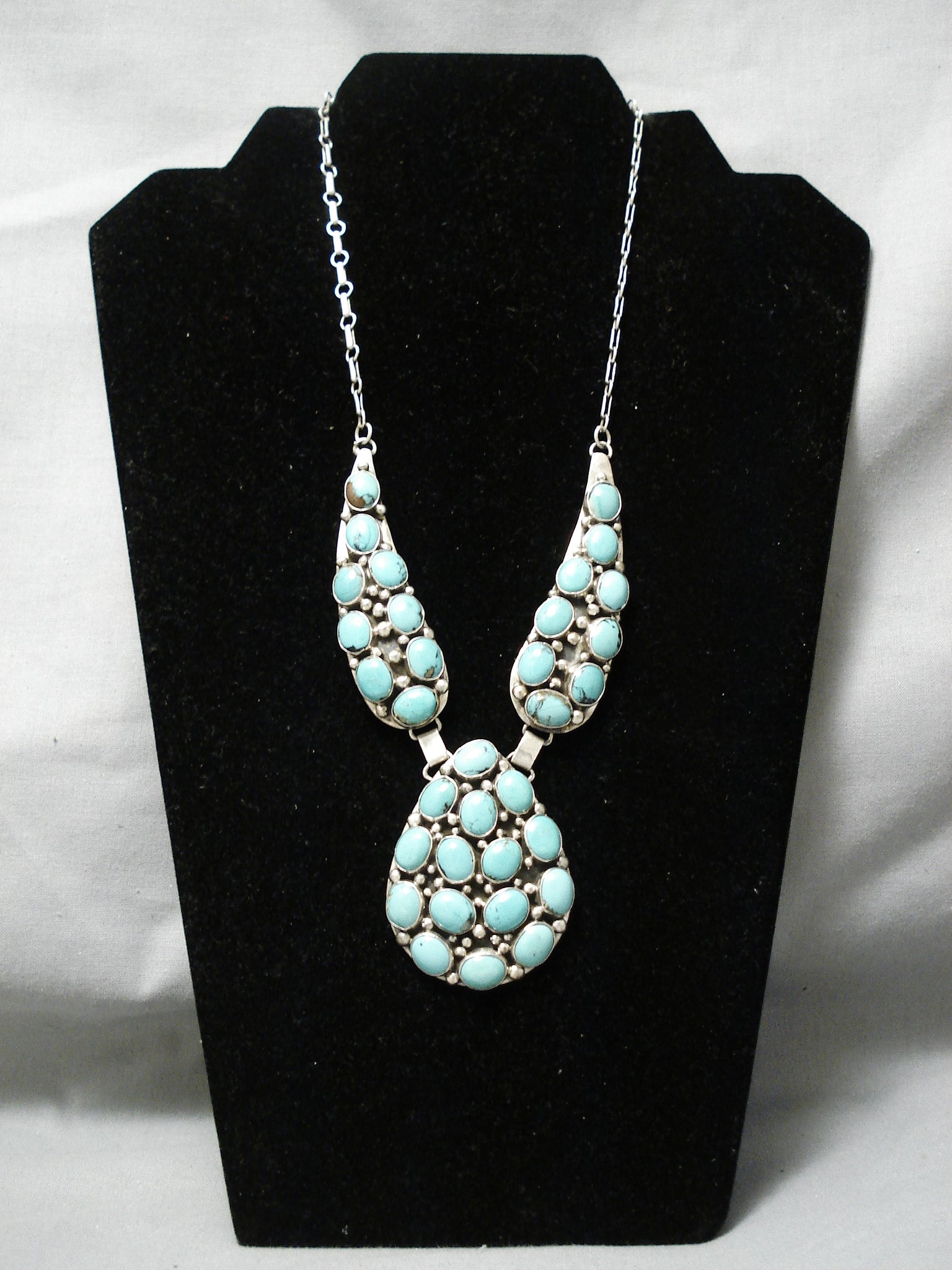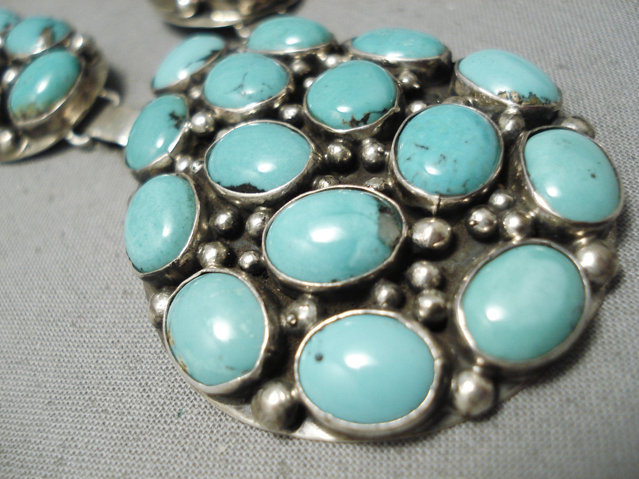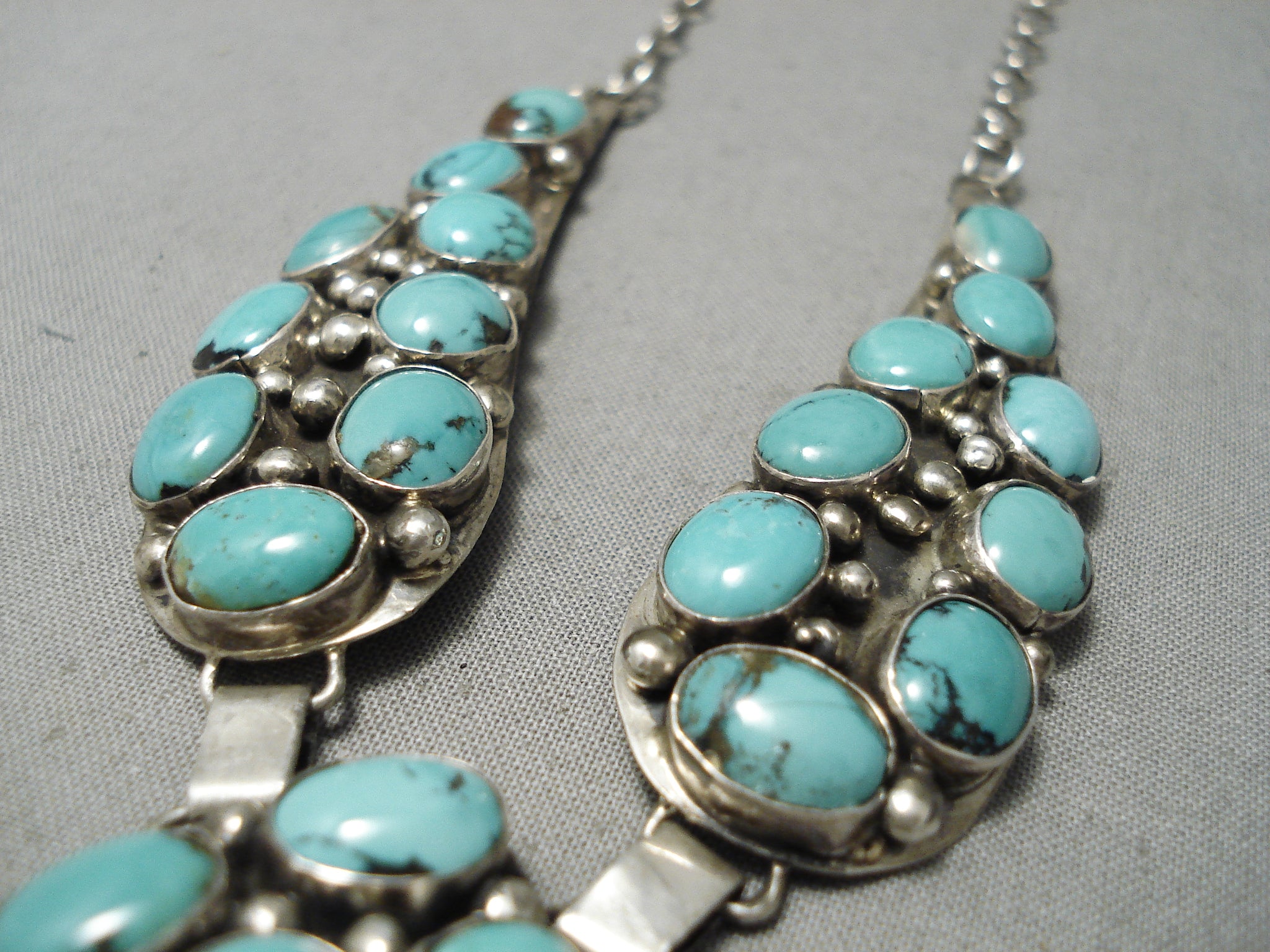 Chunky Dunky Turquoise Vintage Native American Navajo Sterling Silver Necklace