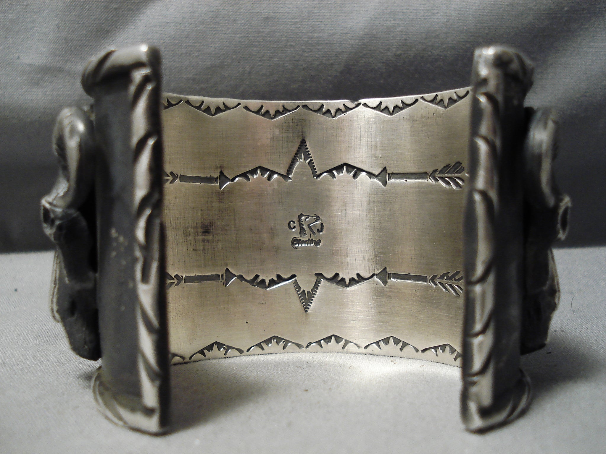 Colossal Cow Head Native American Navajo Blue Turquoise Sterling Silver Bracelet Cuff