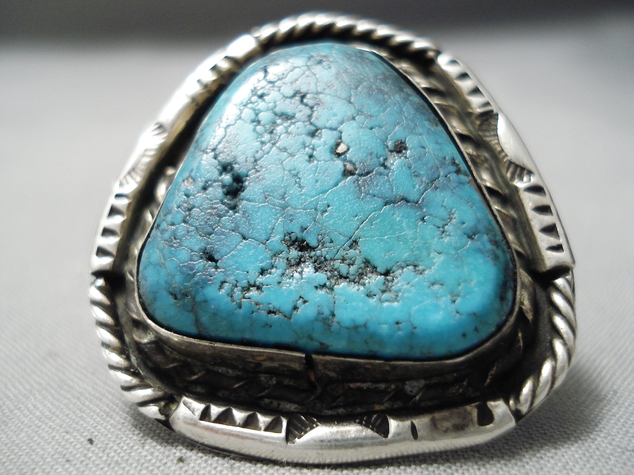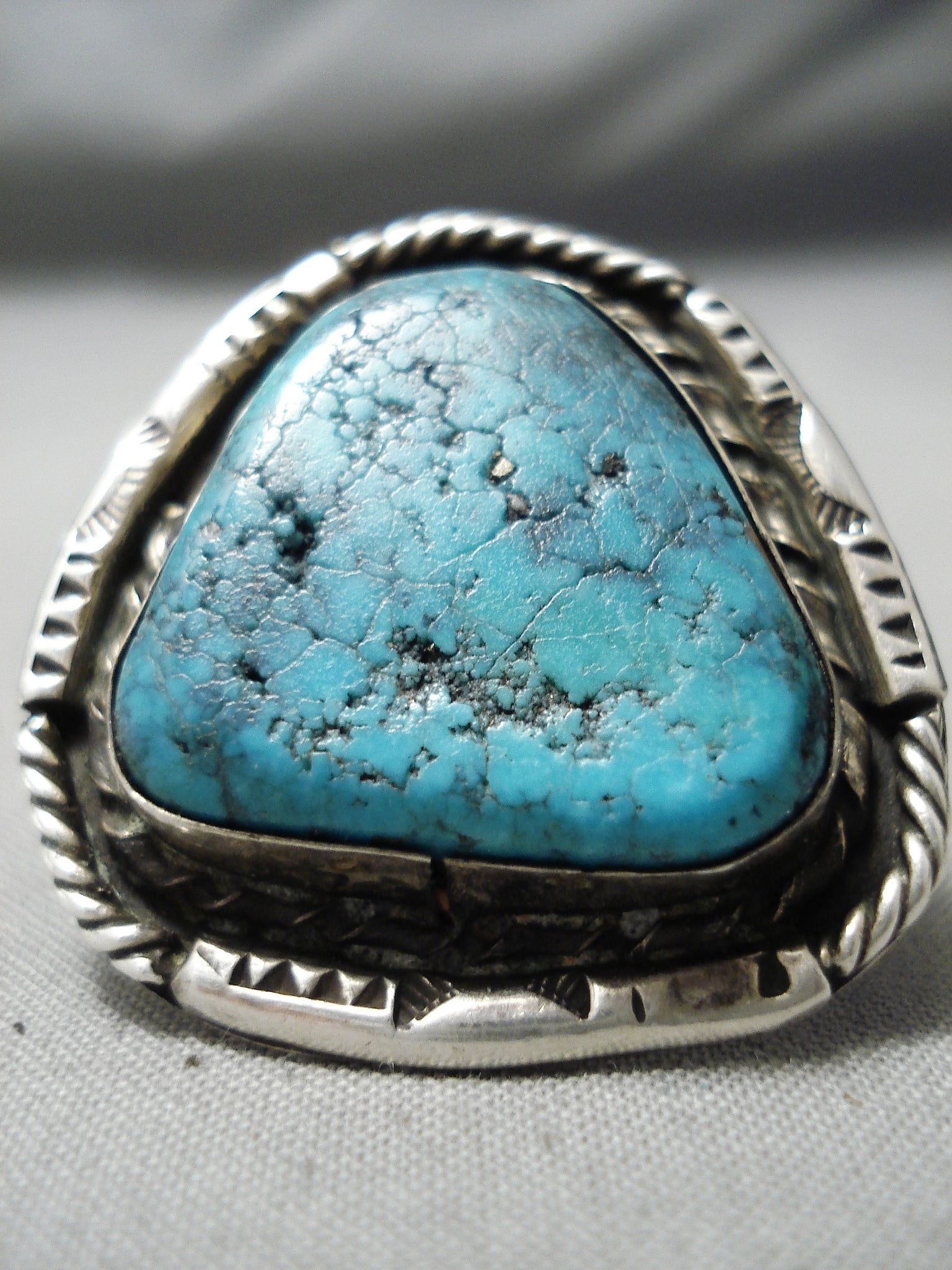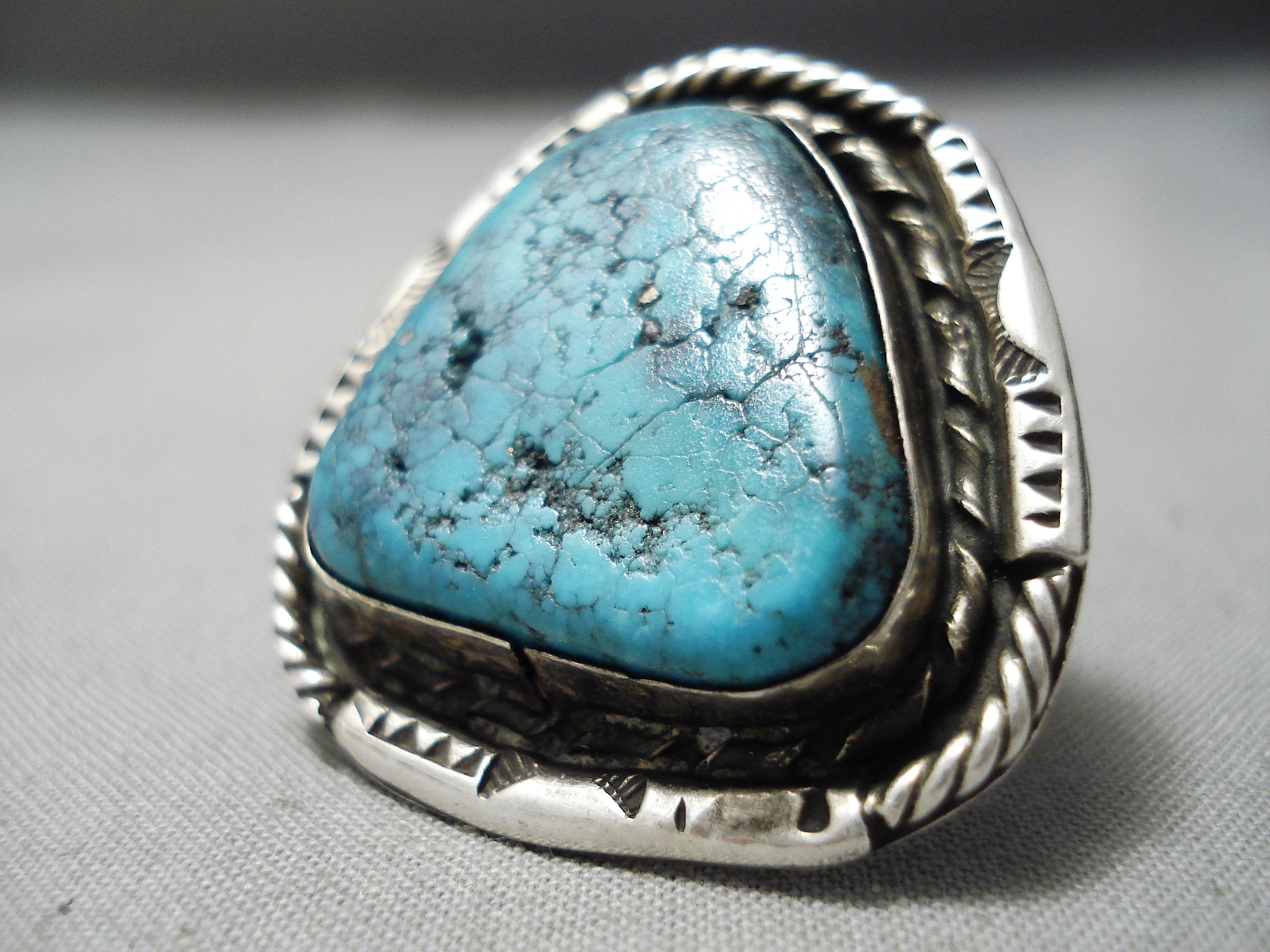 Colossal Huge Vintage Native American Navajo Triangle Turquoise Sterling Silver Ring Old