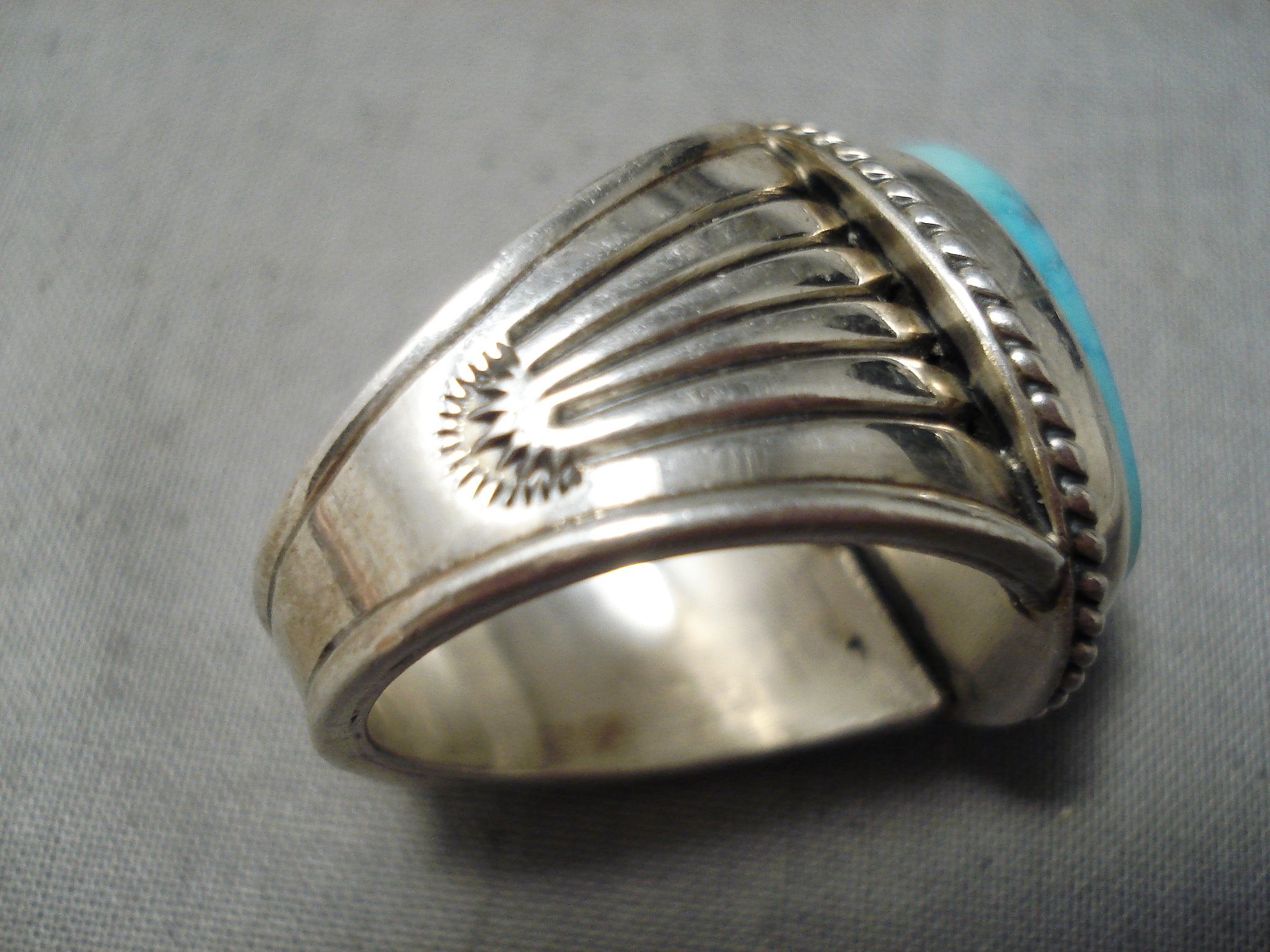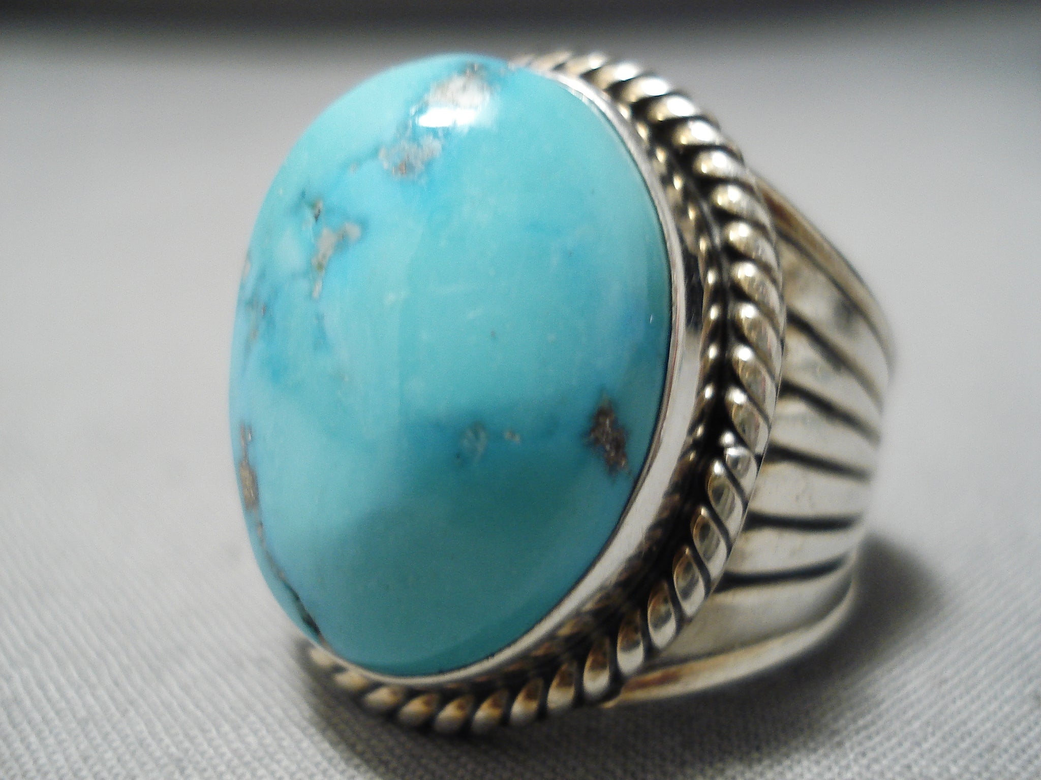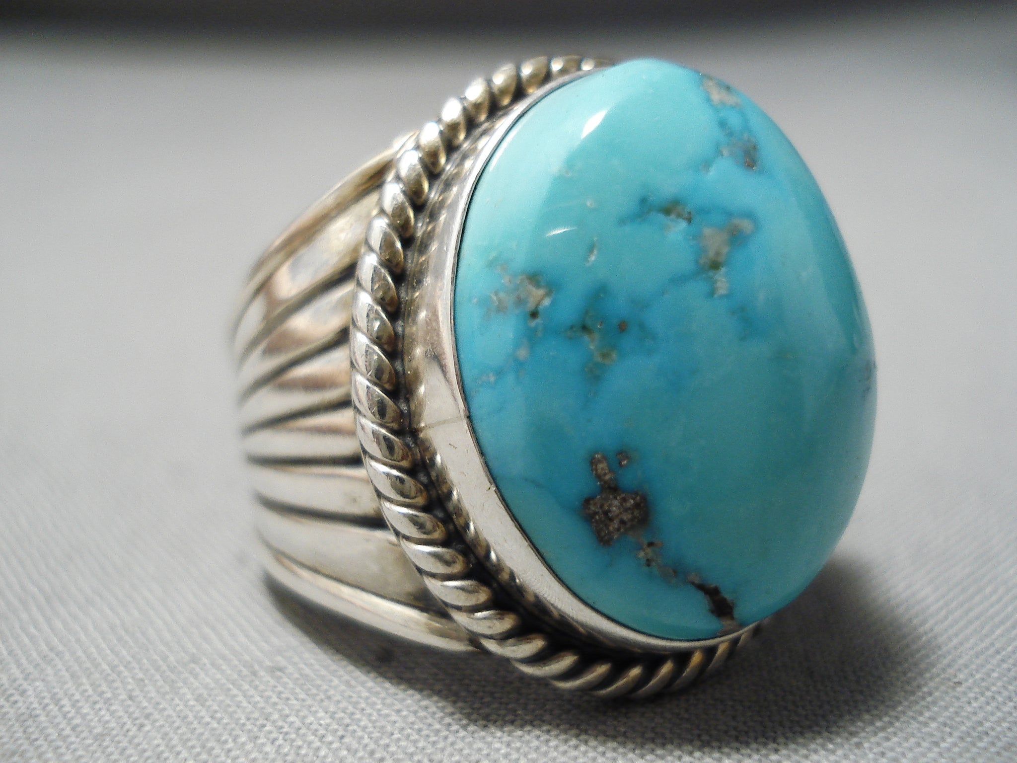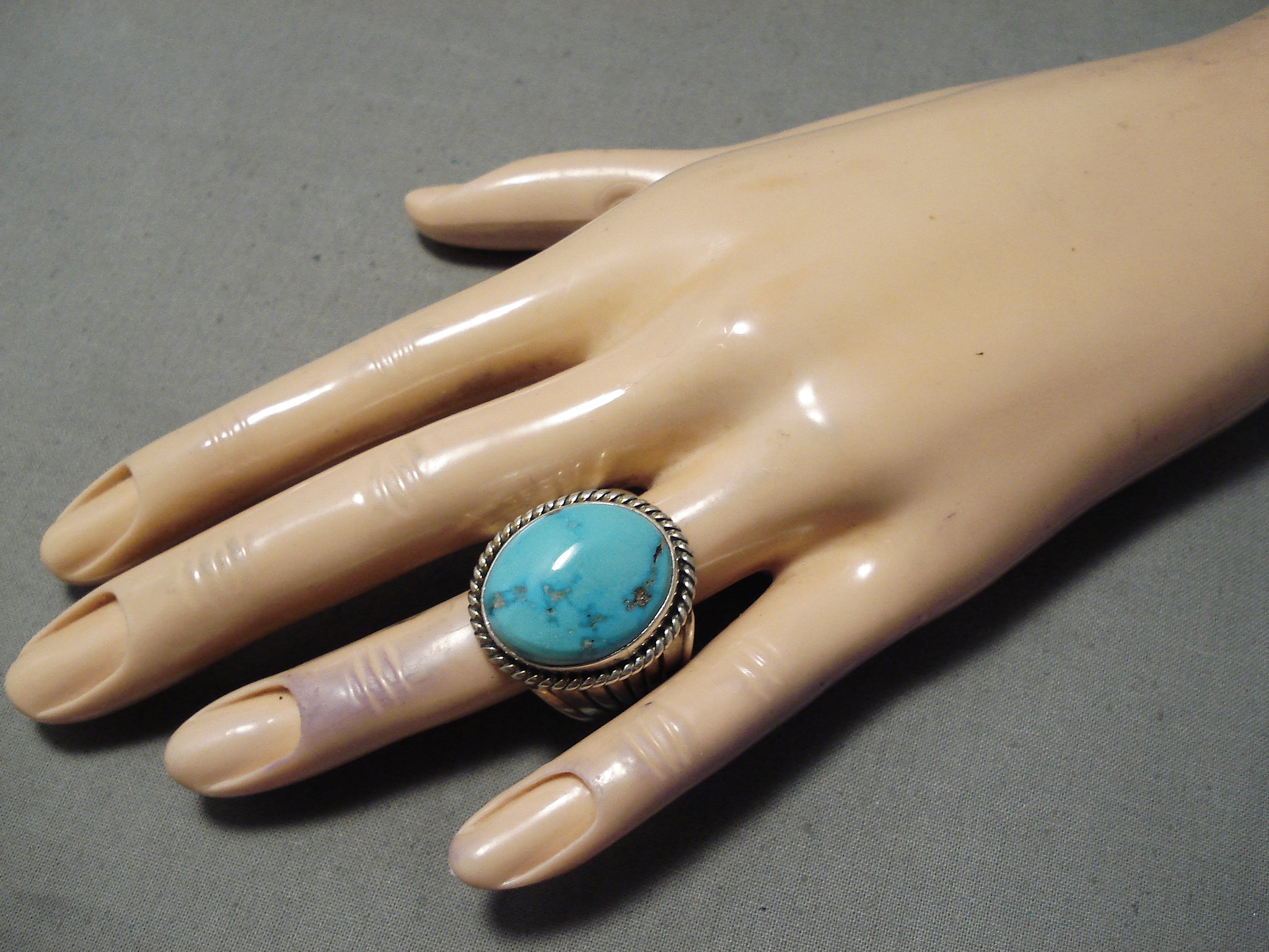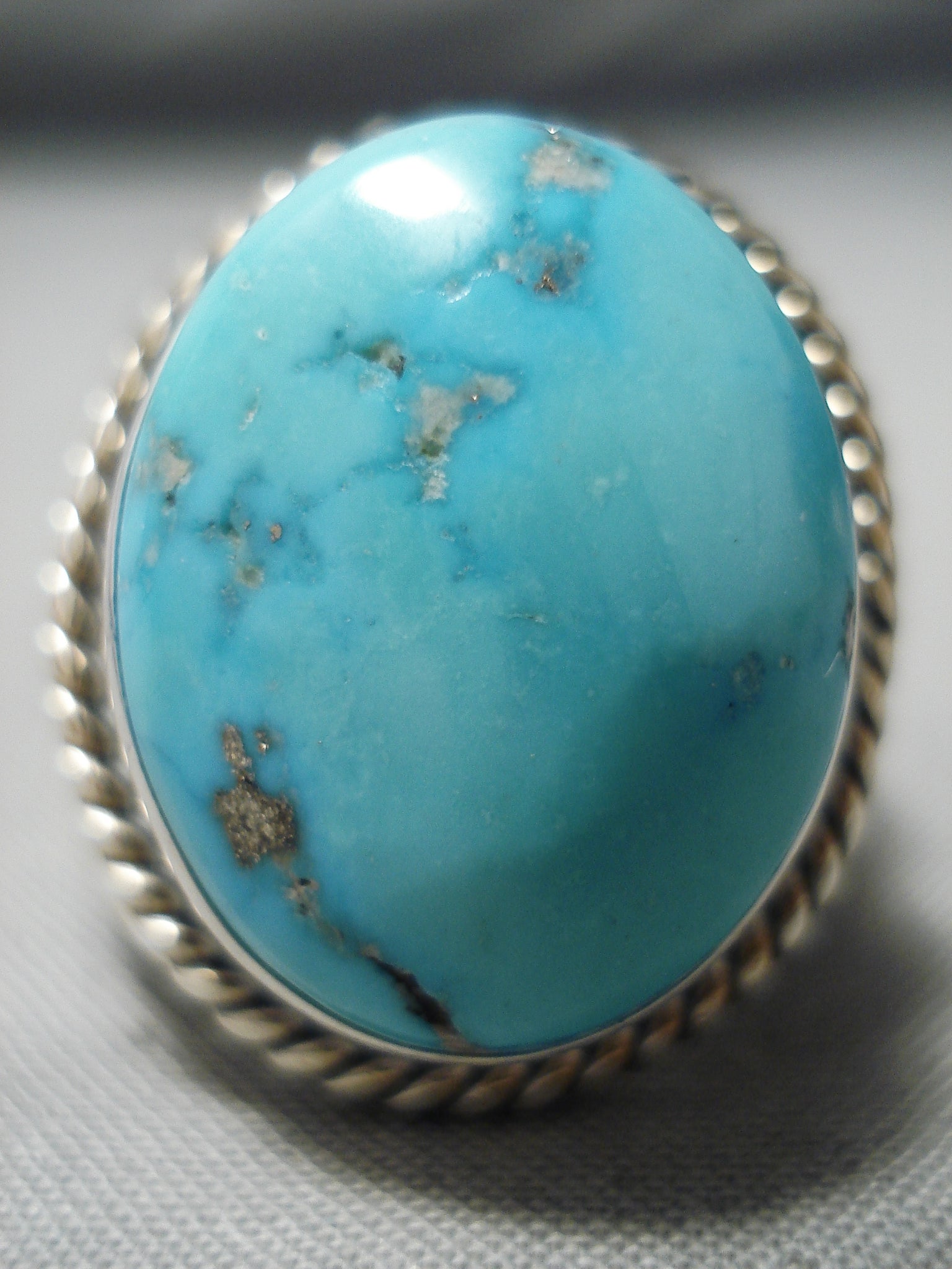 Colossal Vintage Native American Navajo Blue Gem Turquoise Sterling Silver Ring Old