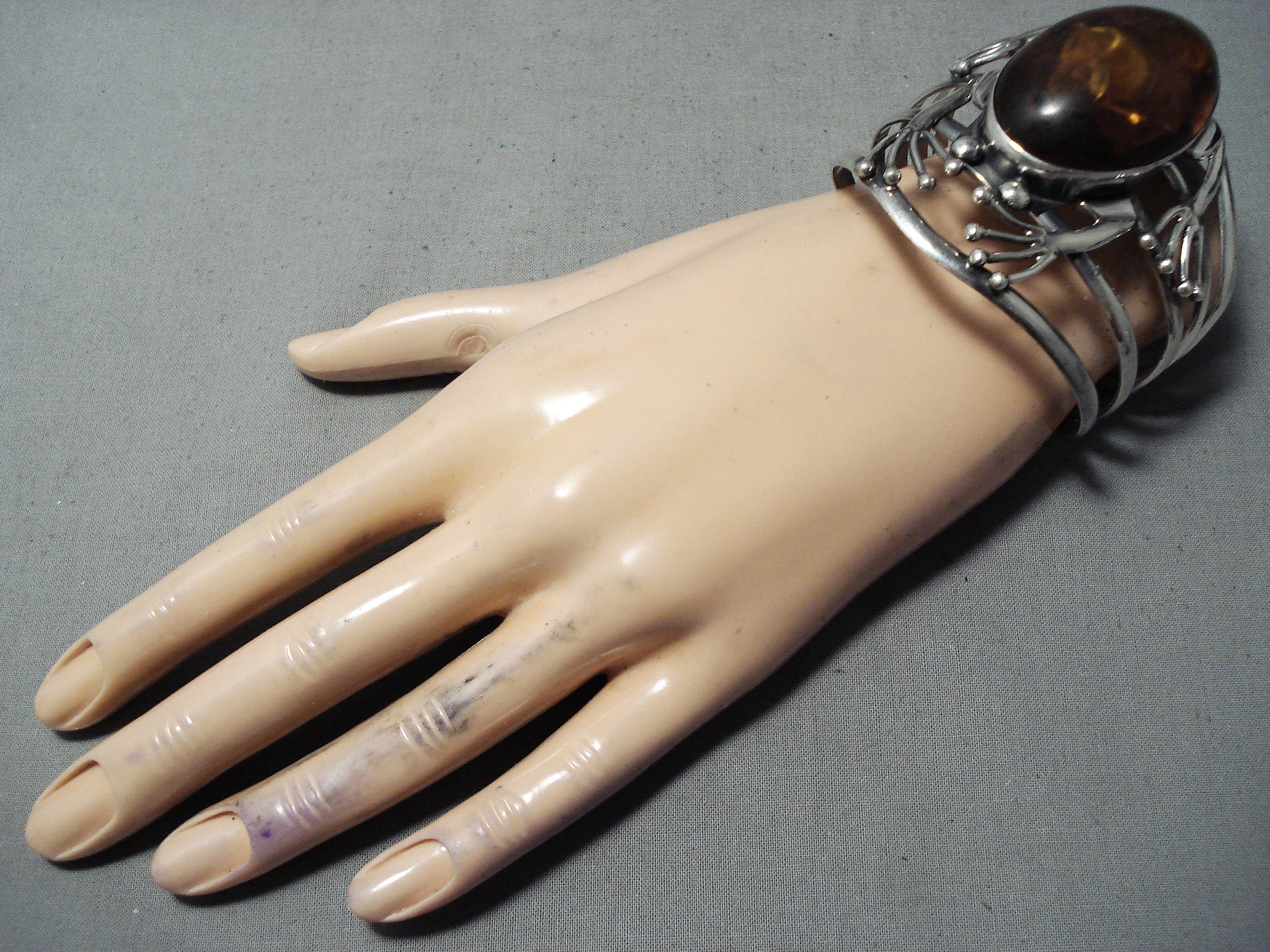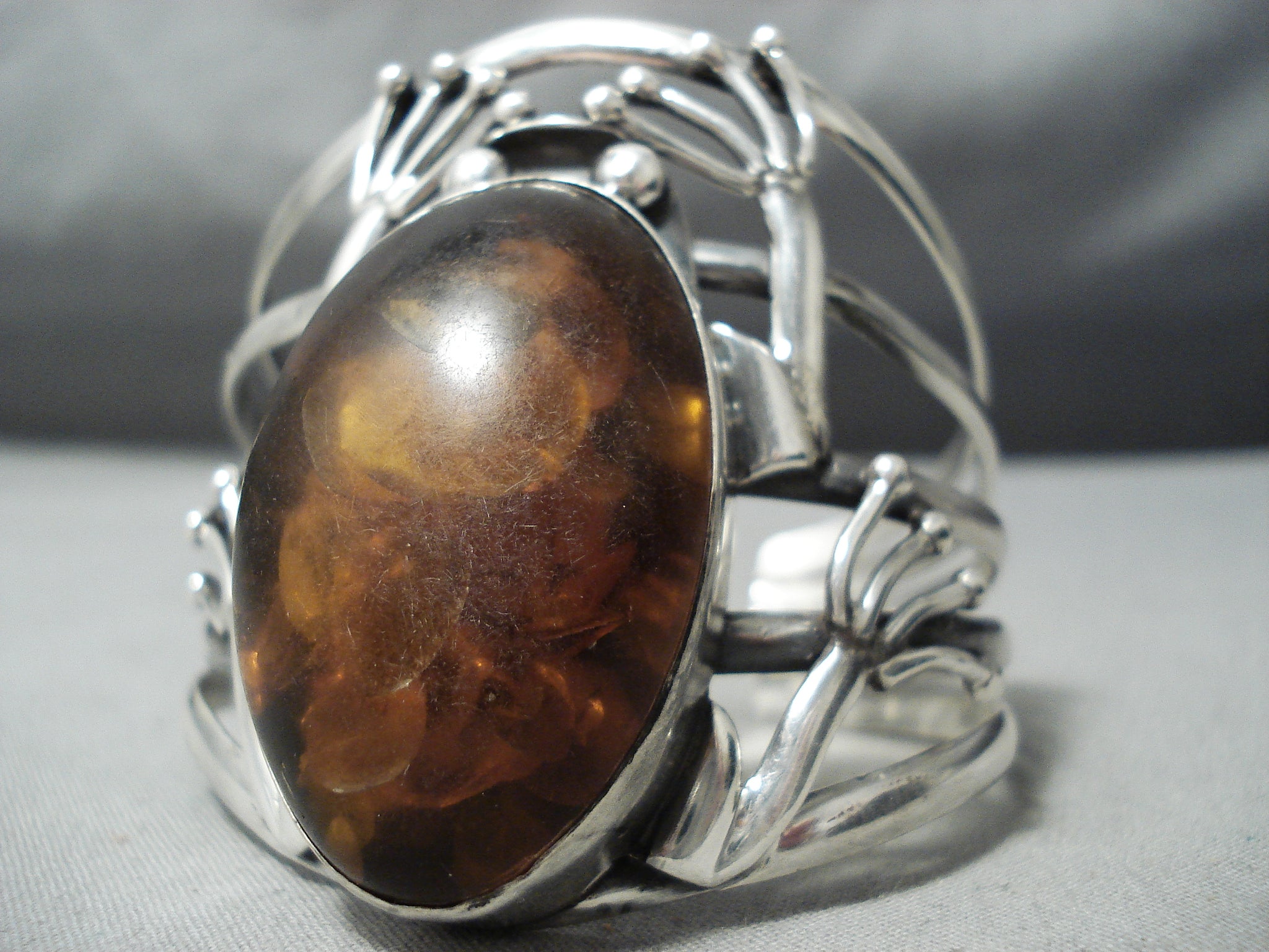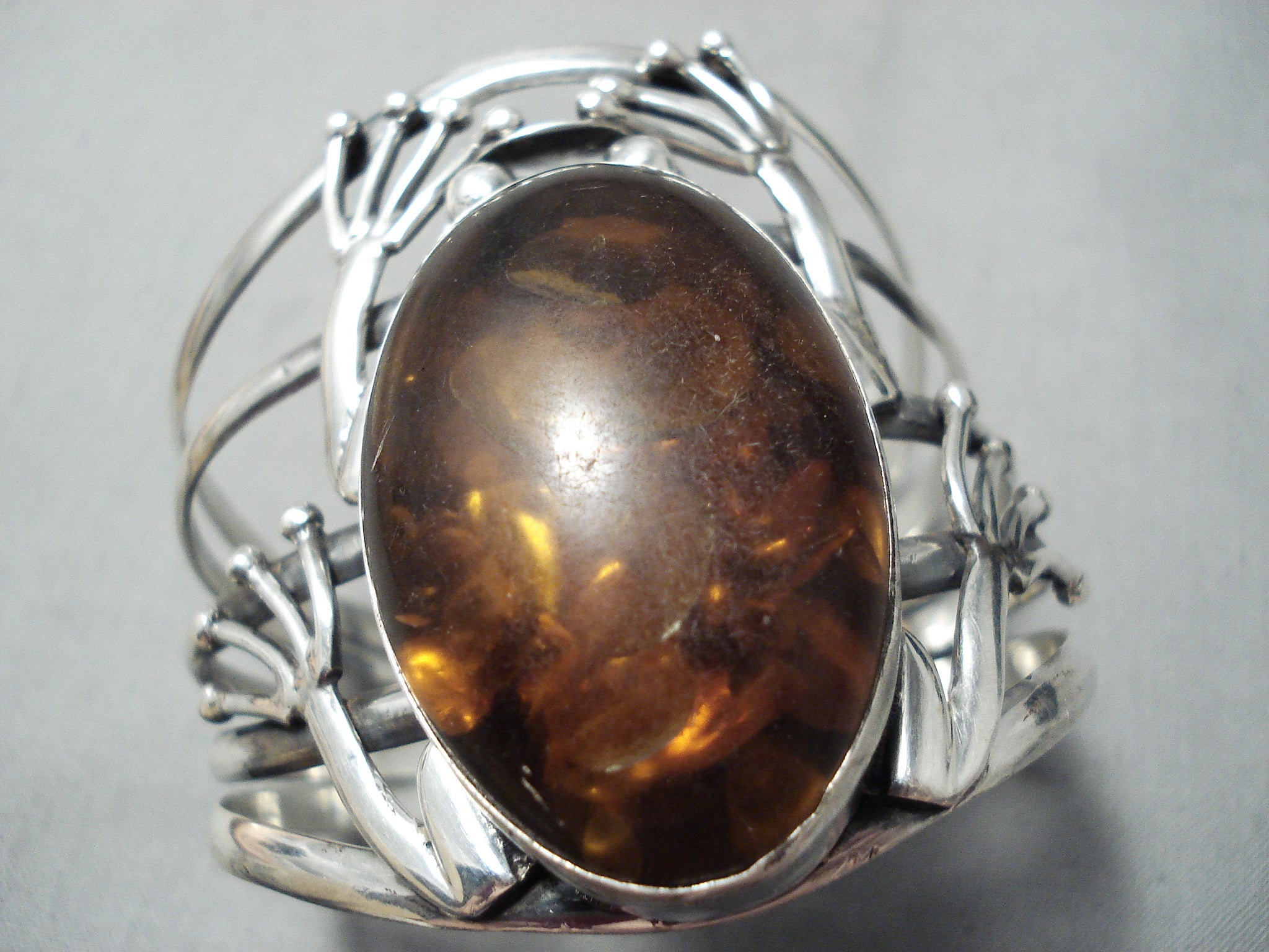 Colossal Vintage Native American Navajo Frog Amber Sterling Silver Bracelet Cuff
