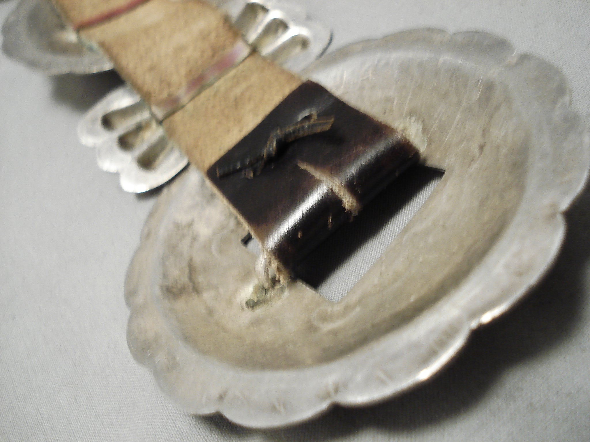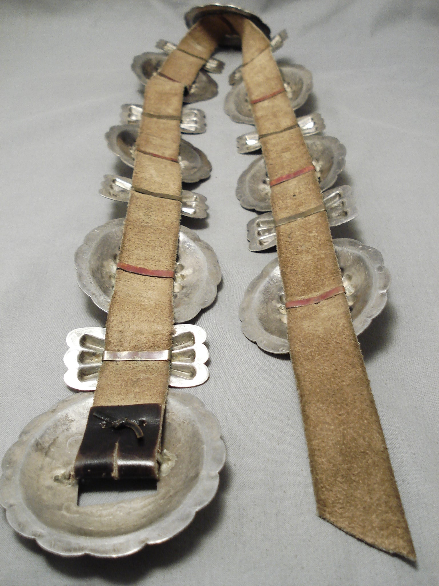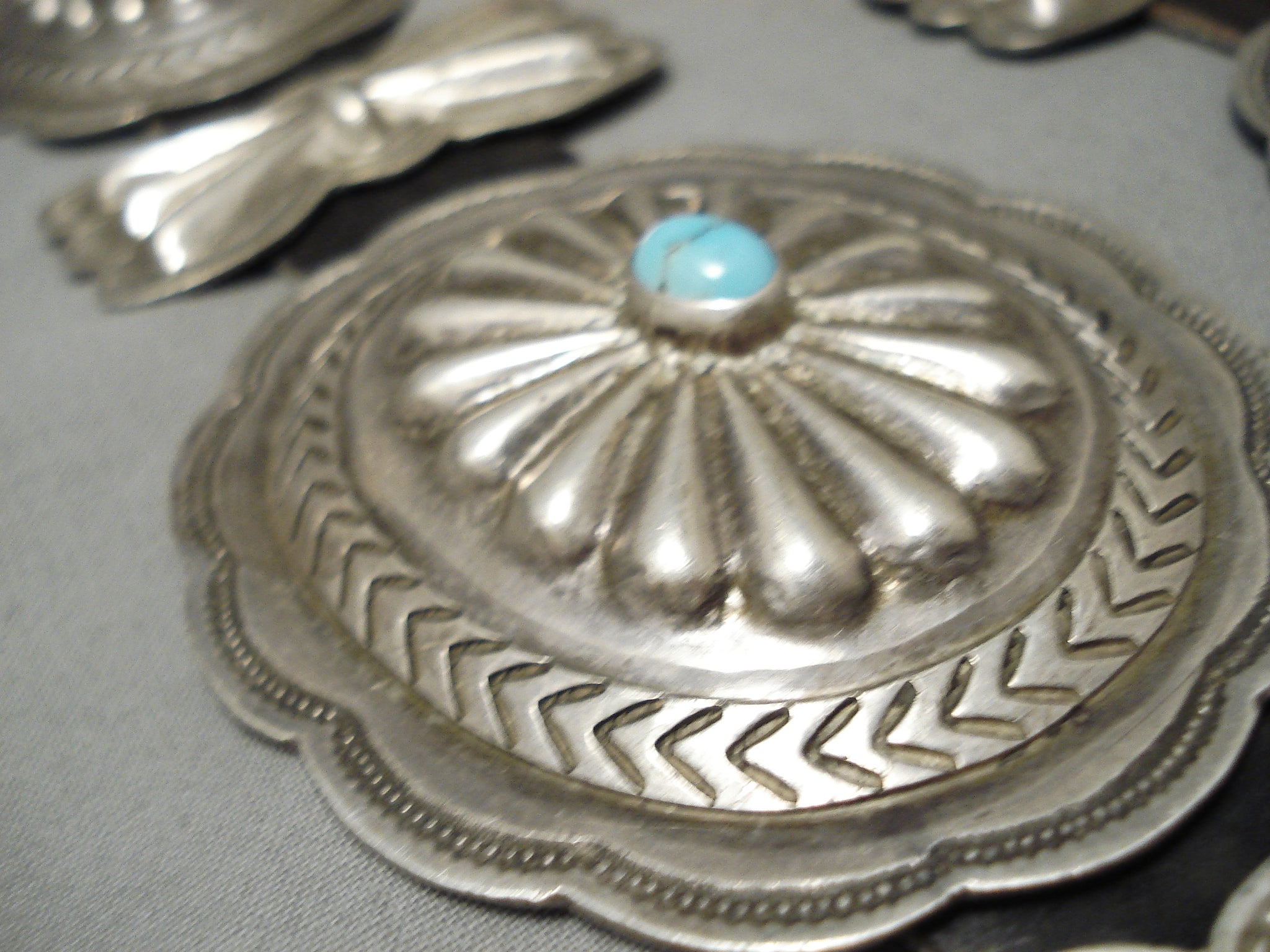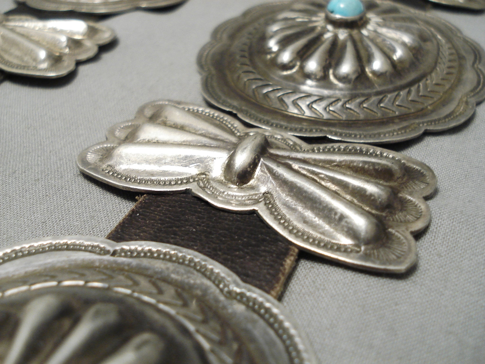 Colossal Vintage Native American Navajo Hand Tooled Sterling Silver Turquoise Concho Belt Old