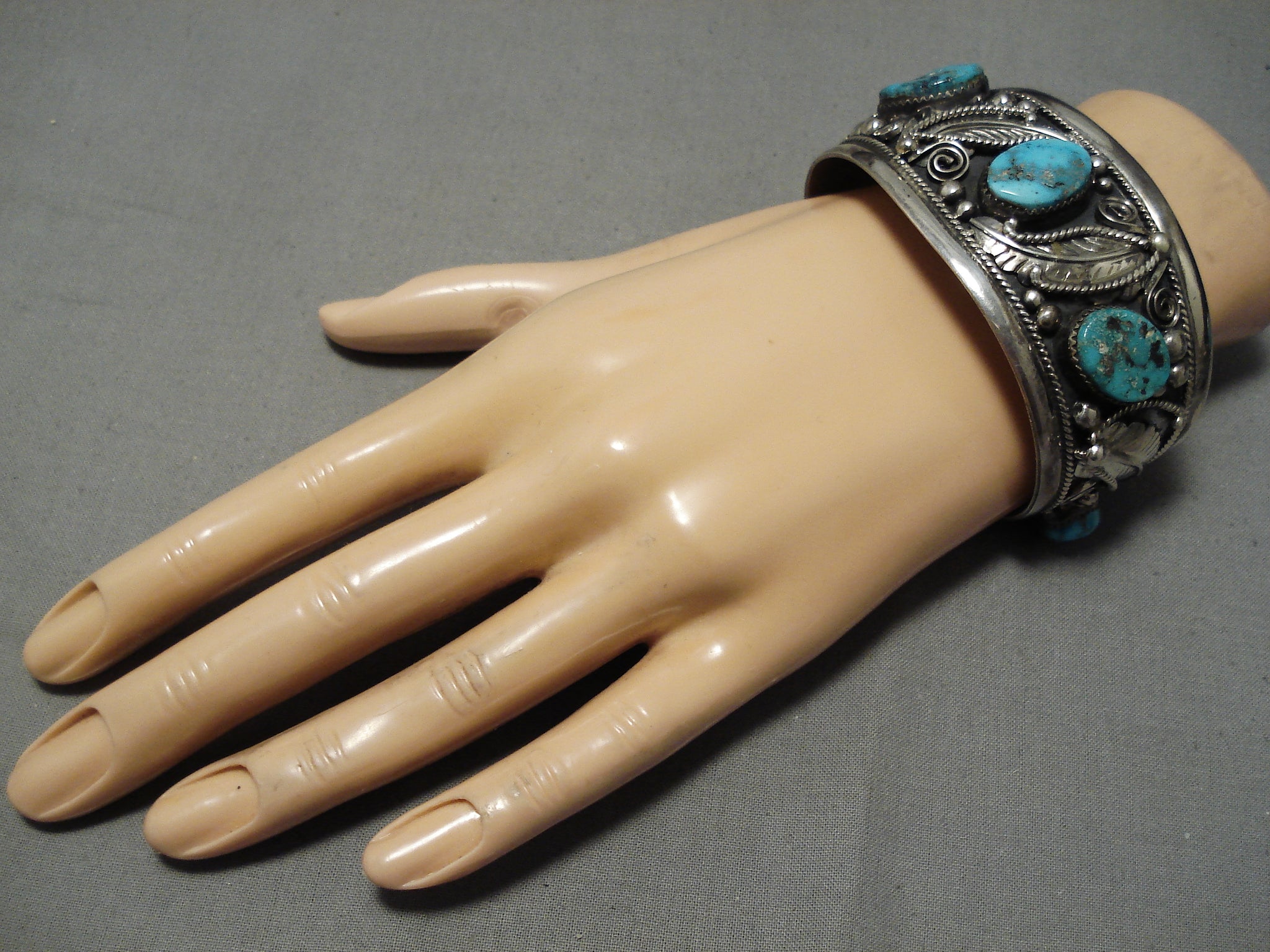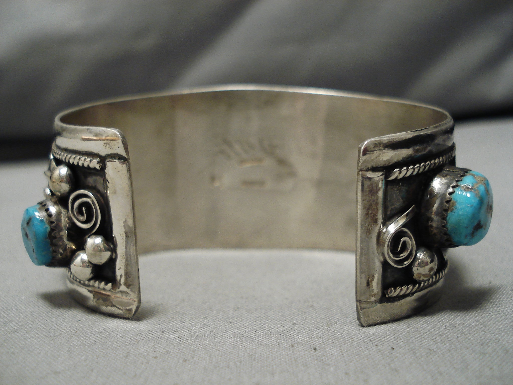 Colossal Vintage Native American Navajo Old Persin Turquoise Sterling Silver Bracelet Old
