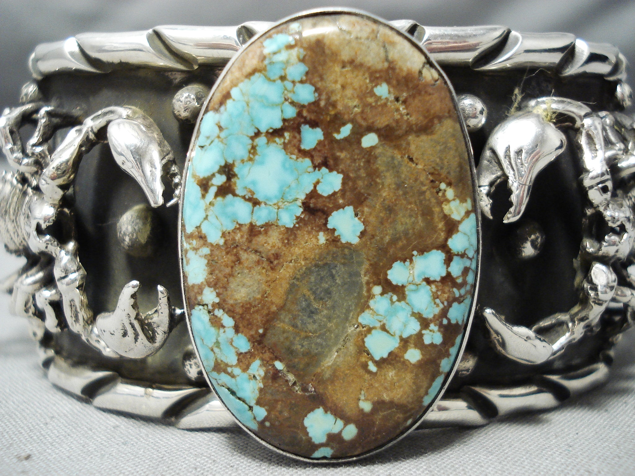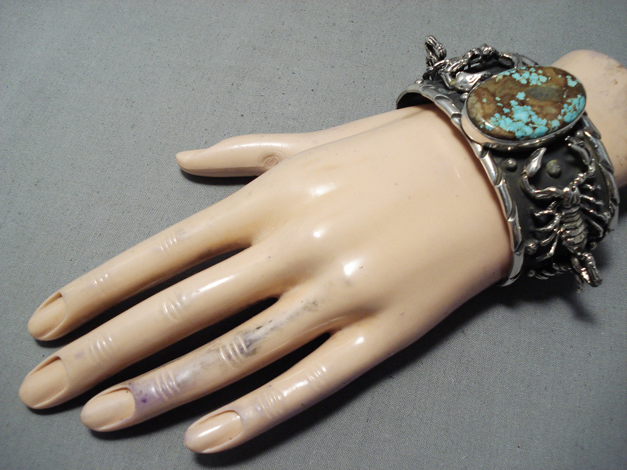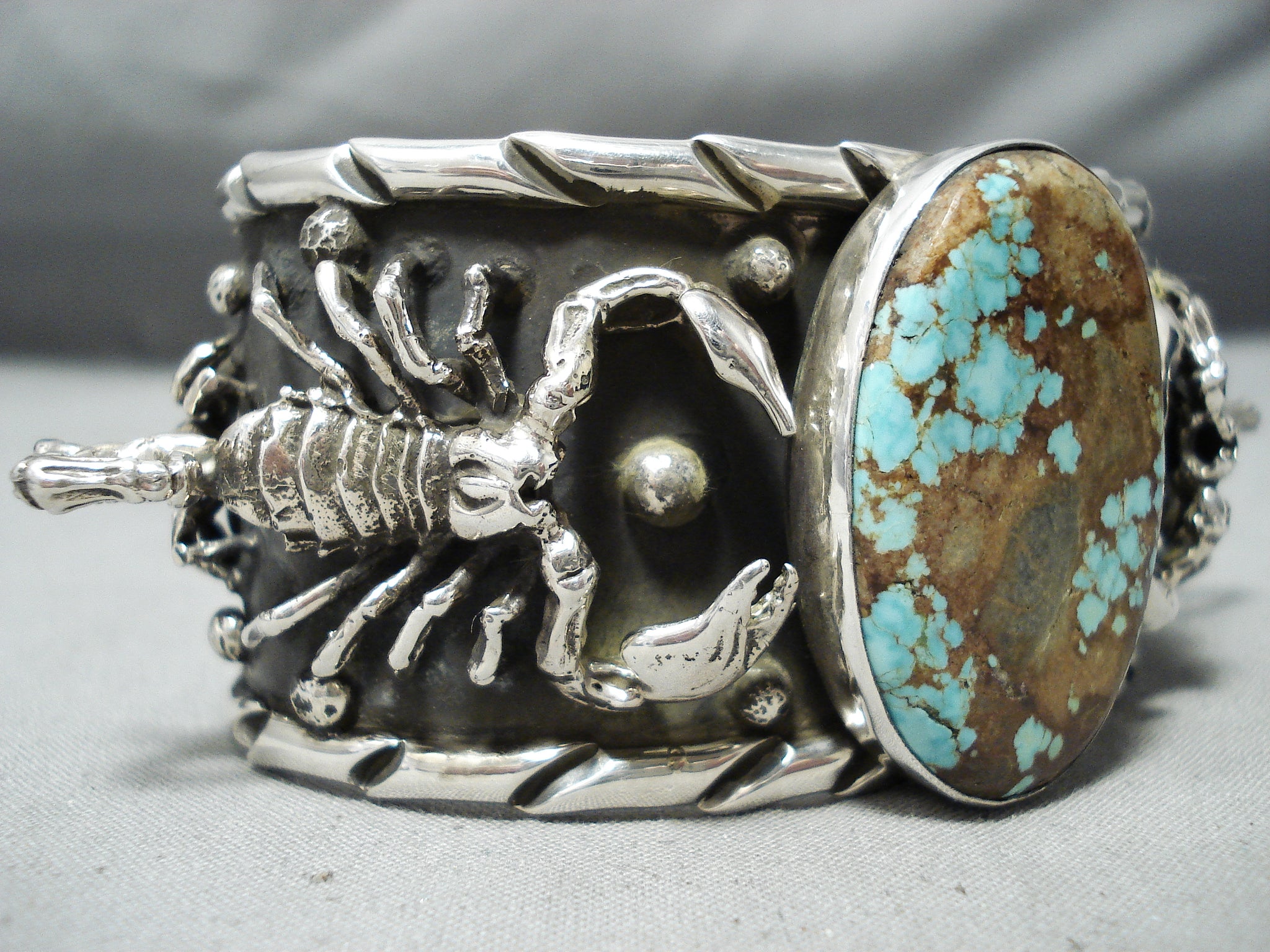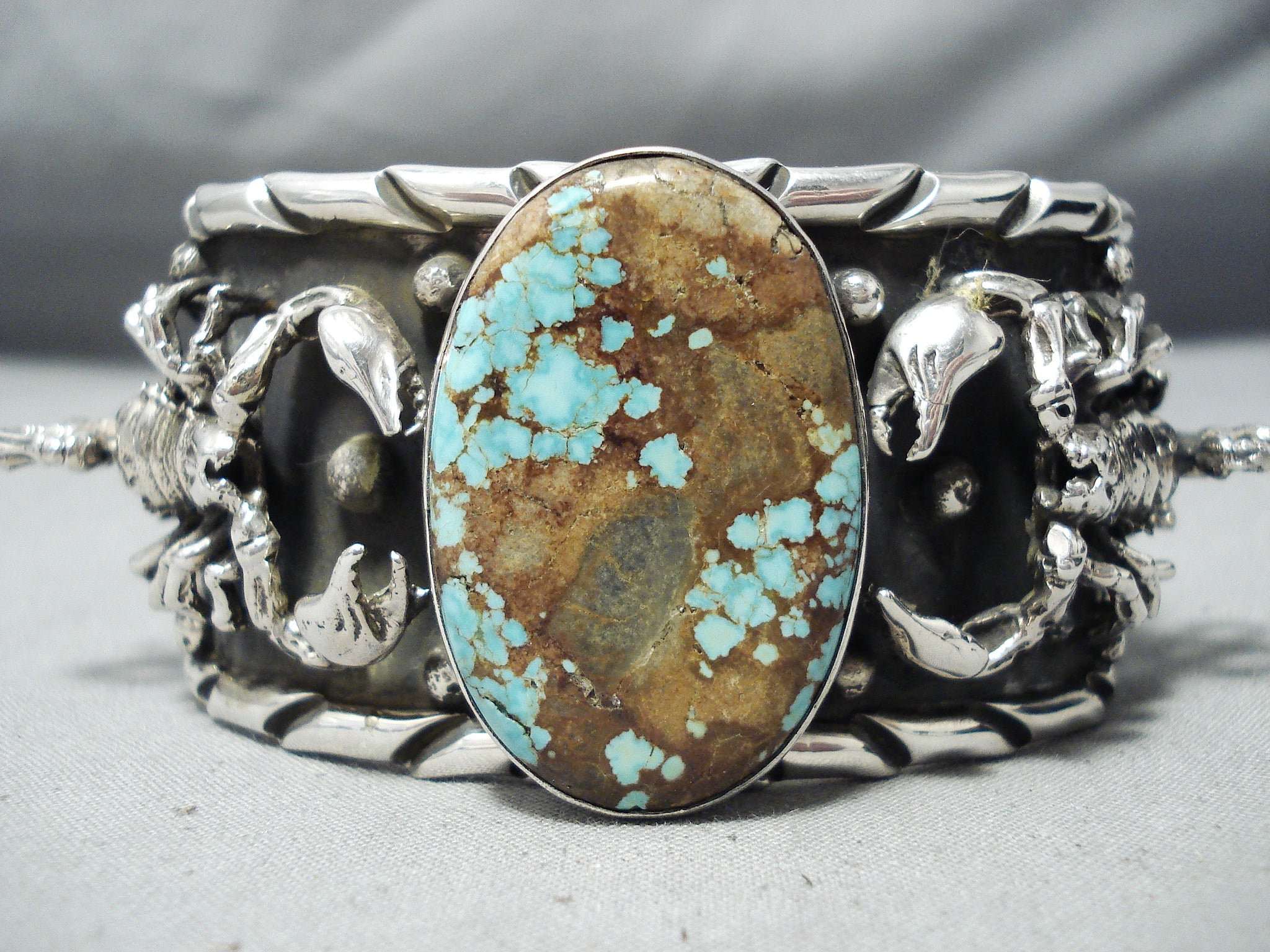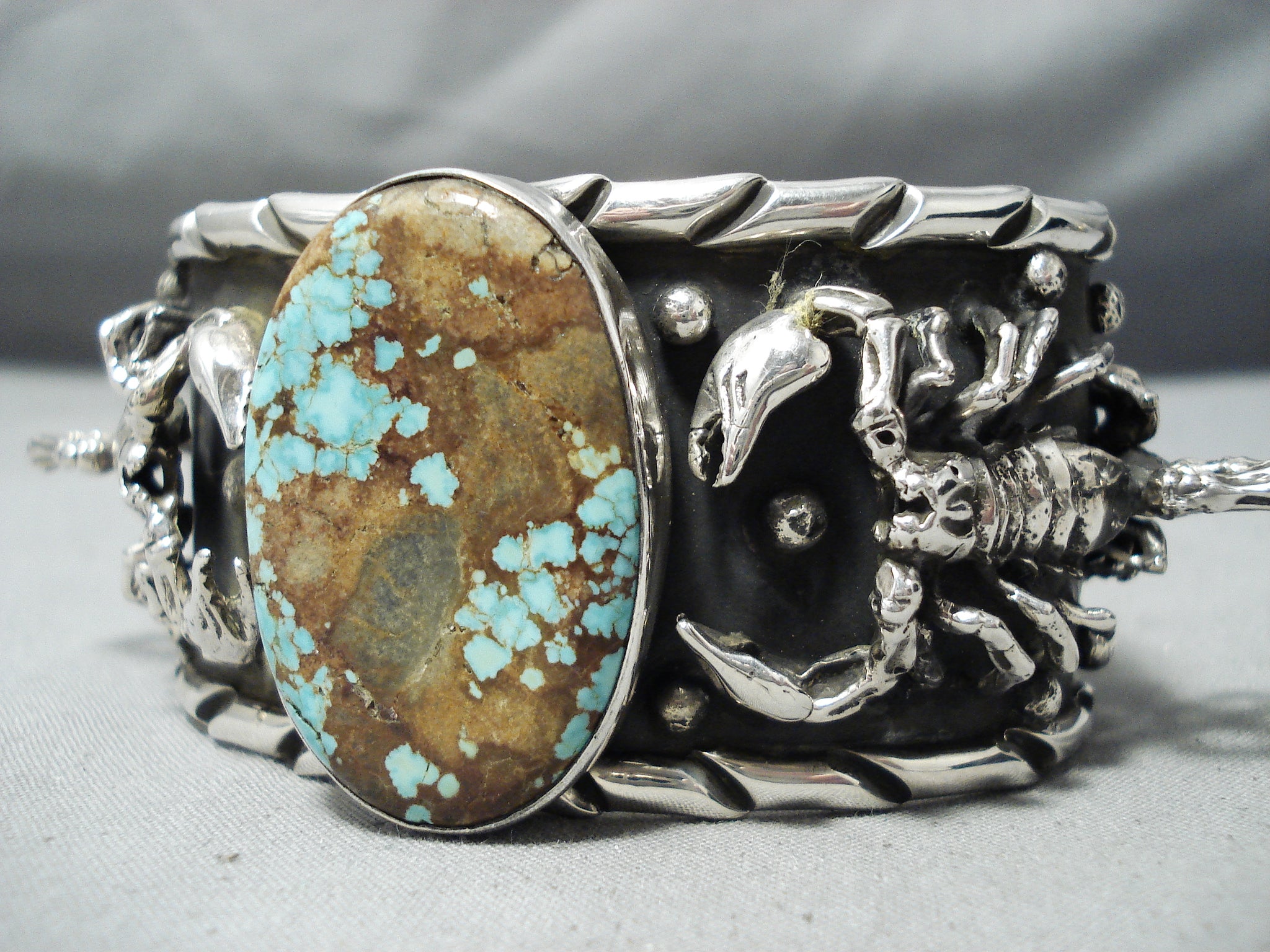 Crazy Heavy Scorpion Native American #8 Turquoise Sterling Silver Bracelet