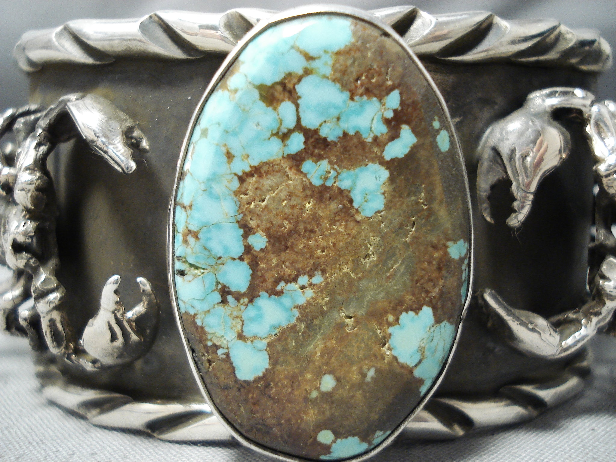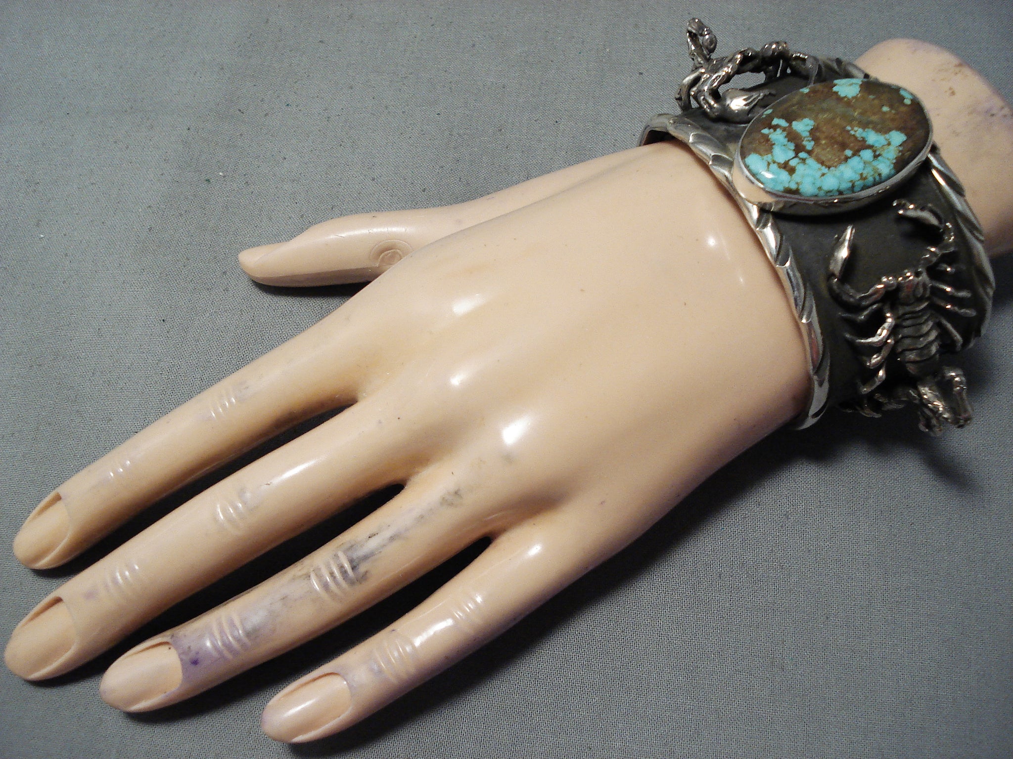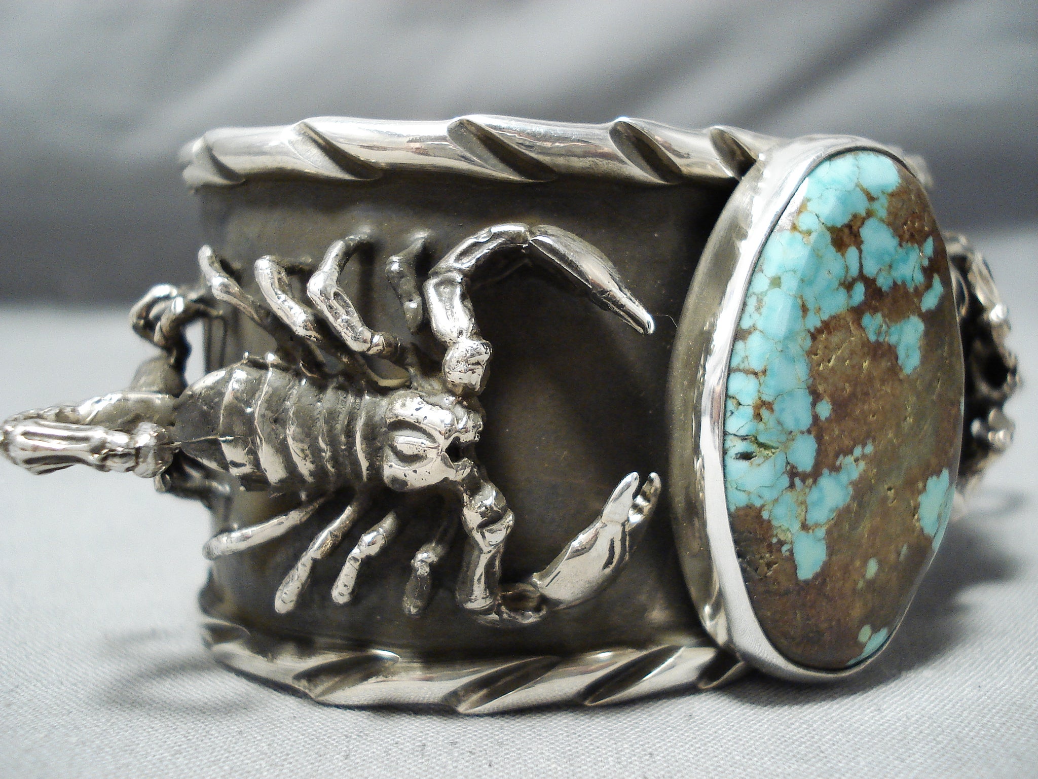 Crazy Scorpion Native American #8 Turquoise Sterling Silver Bracelet Cuff