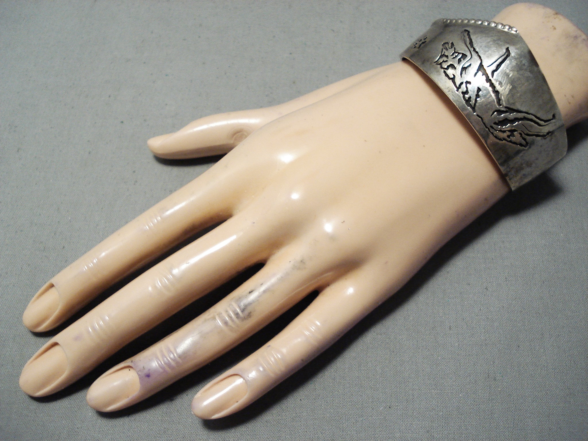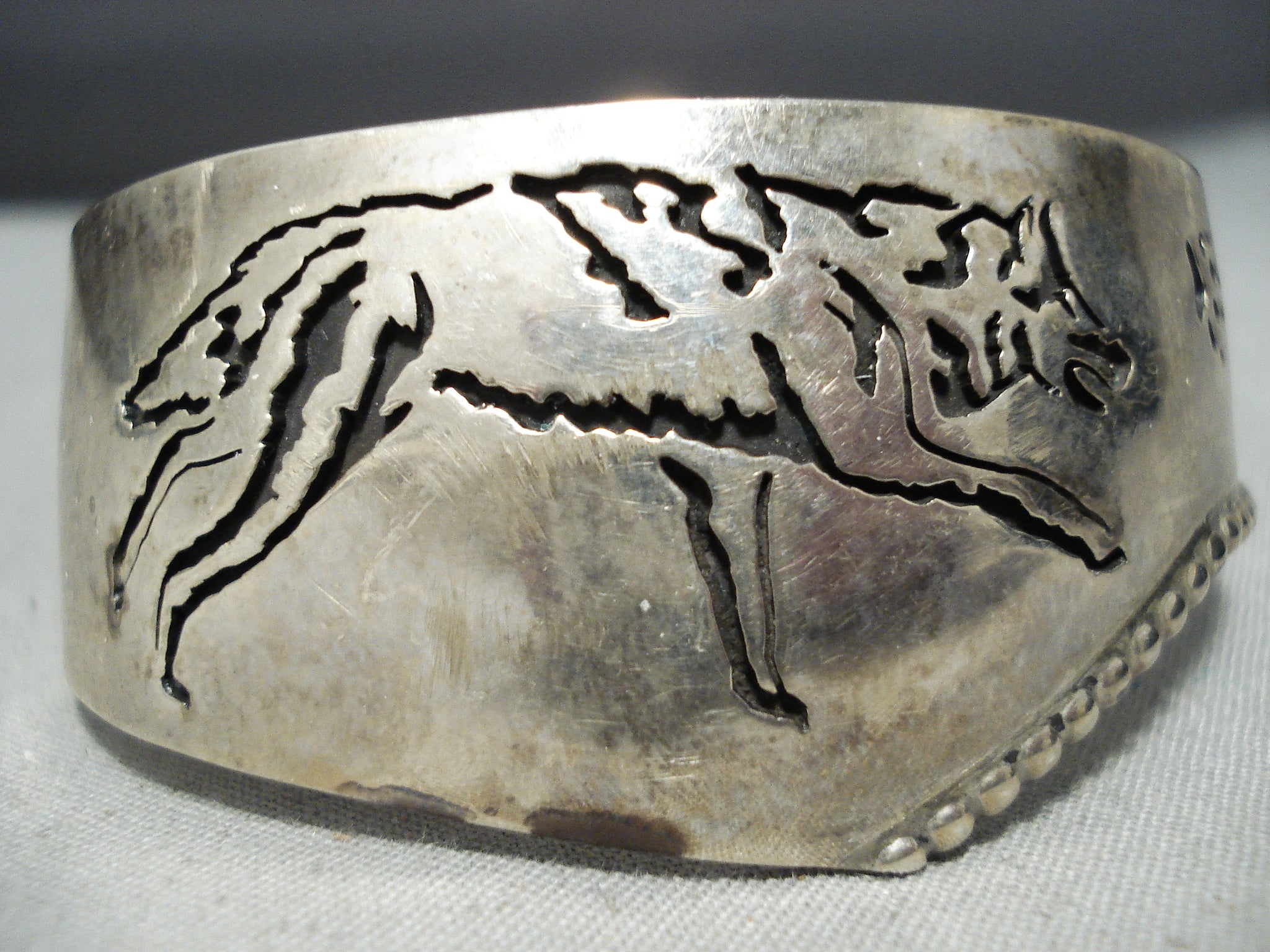 Creeping Coyote Vintage Native American Navajo Sterling Silver Bracelet Cuff
