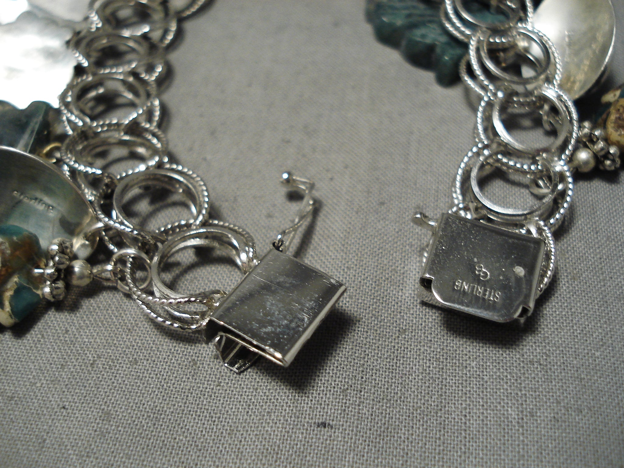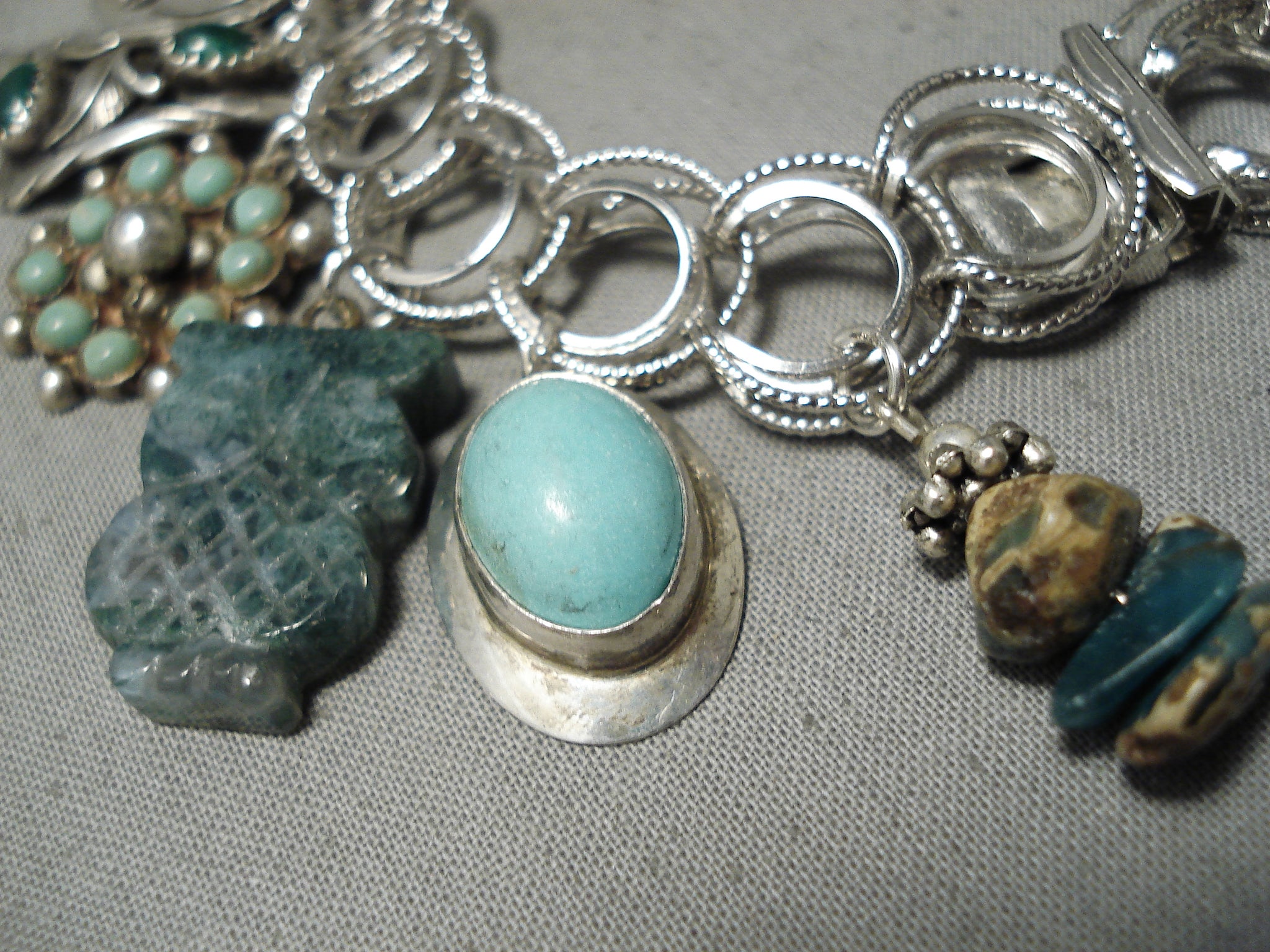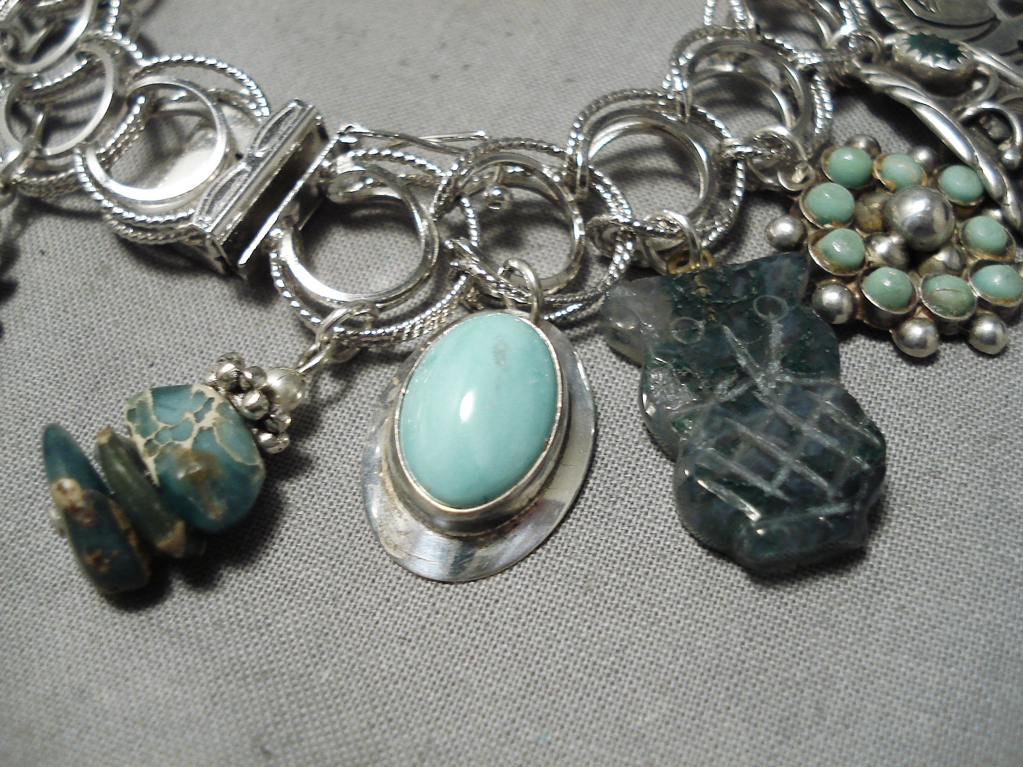 Cute!! Vintage Native American Navajo Zuni Turquoise Sterling Silver Charm Bracelet