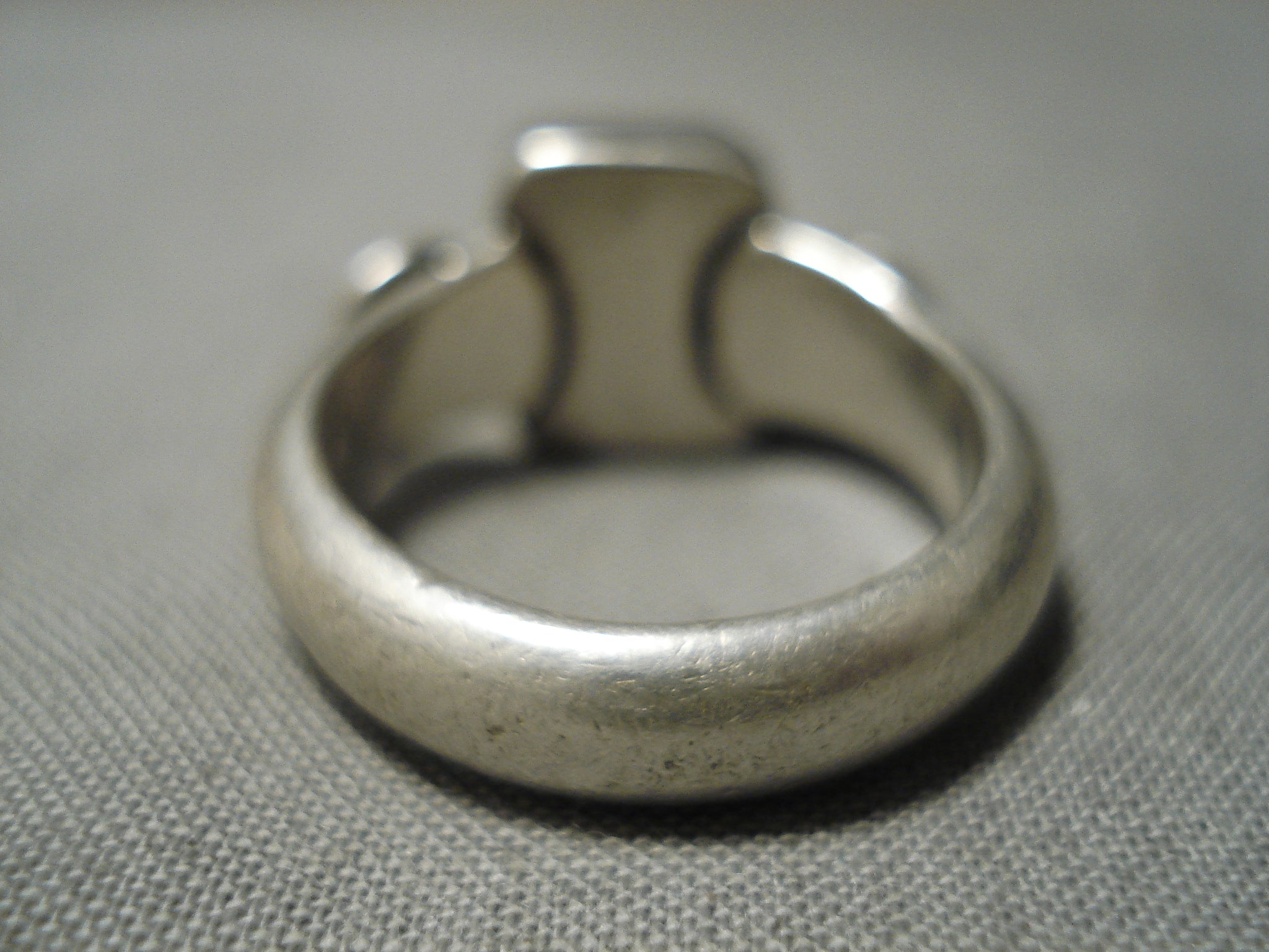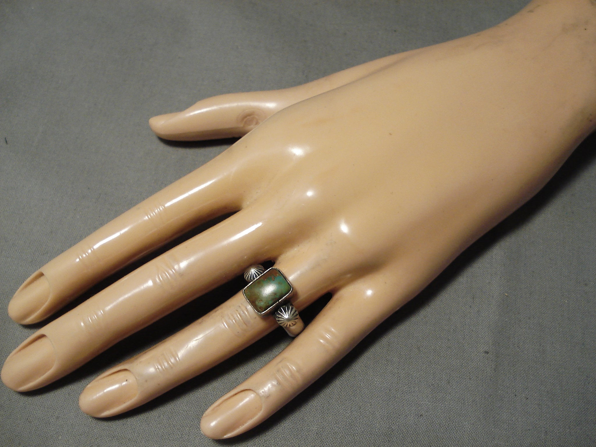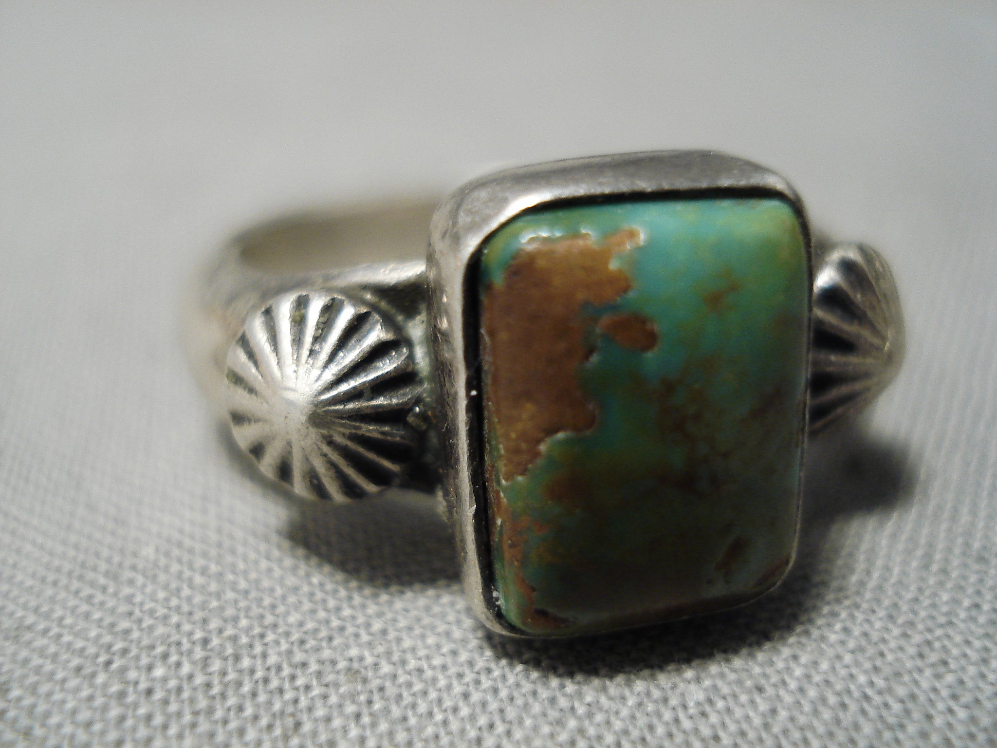 Detailed And Thick!! Vintage Native American Navajo Royston Turquoise Sterling Silver Ring