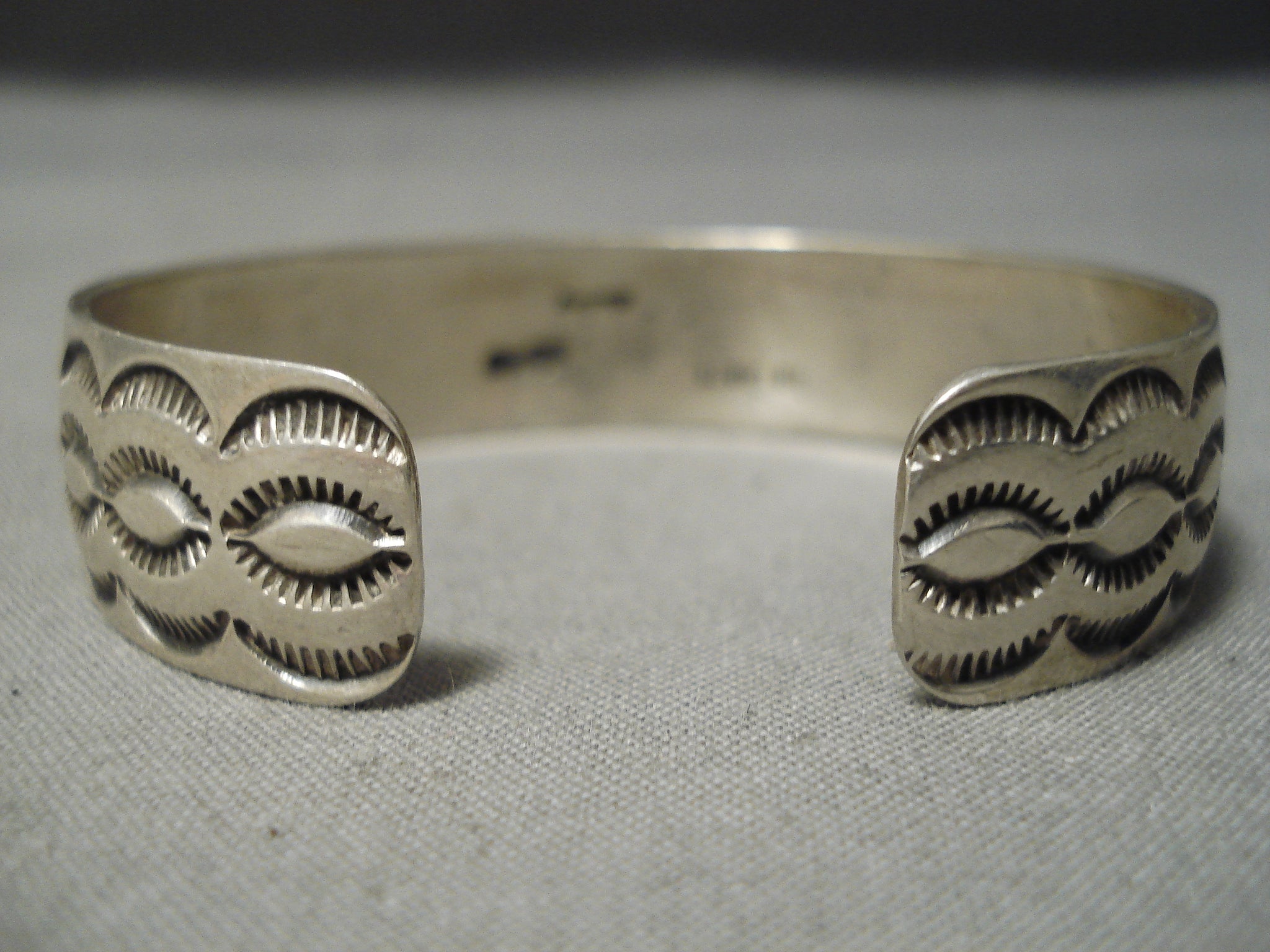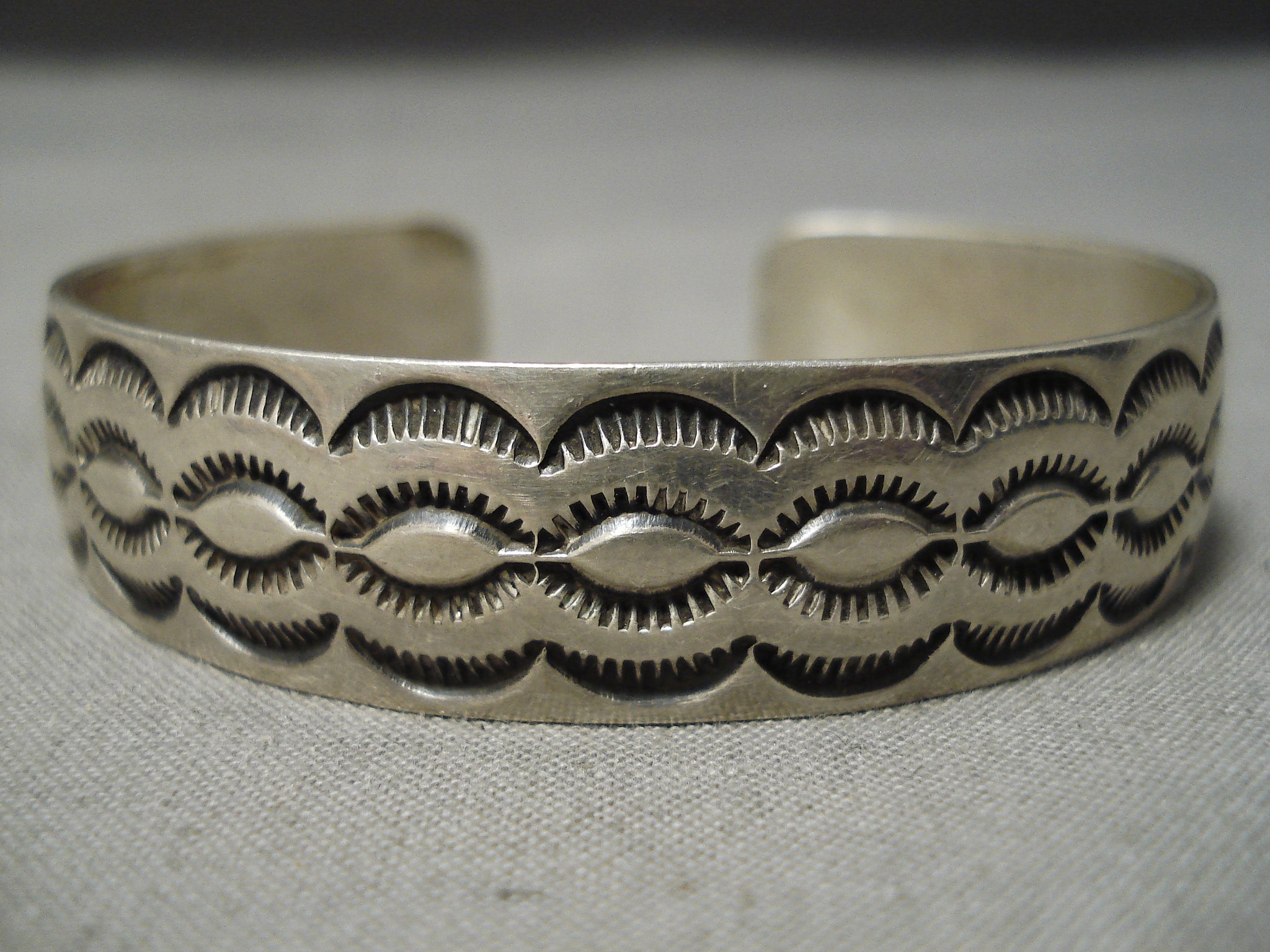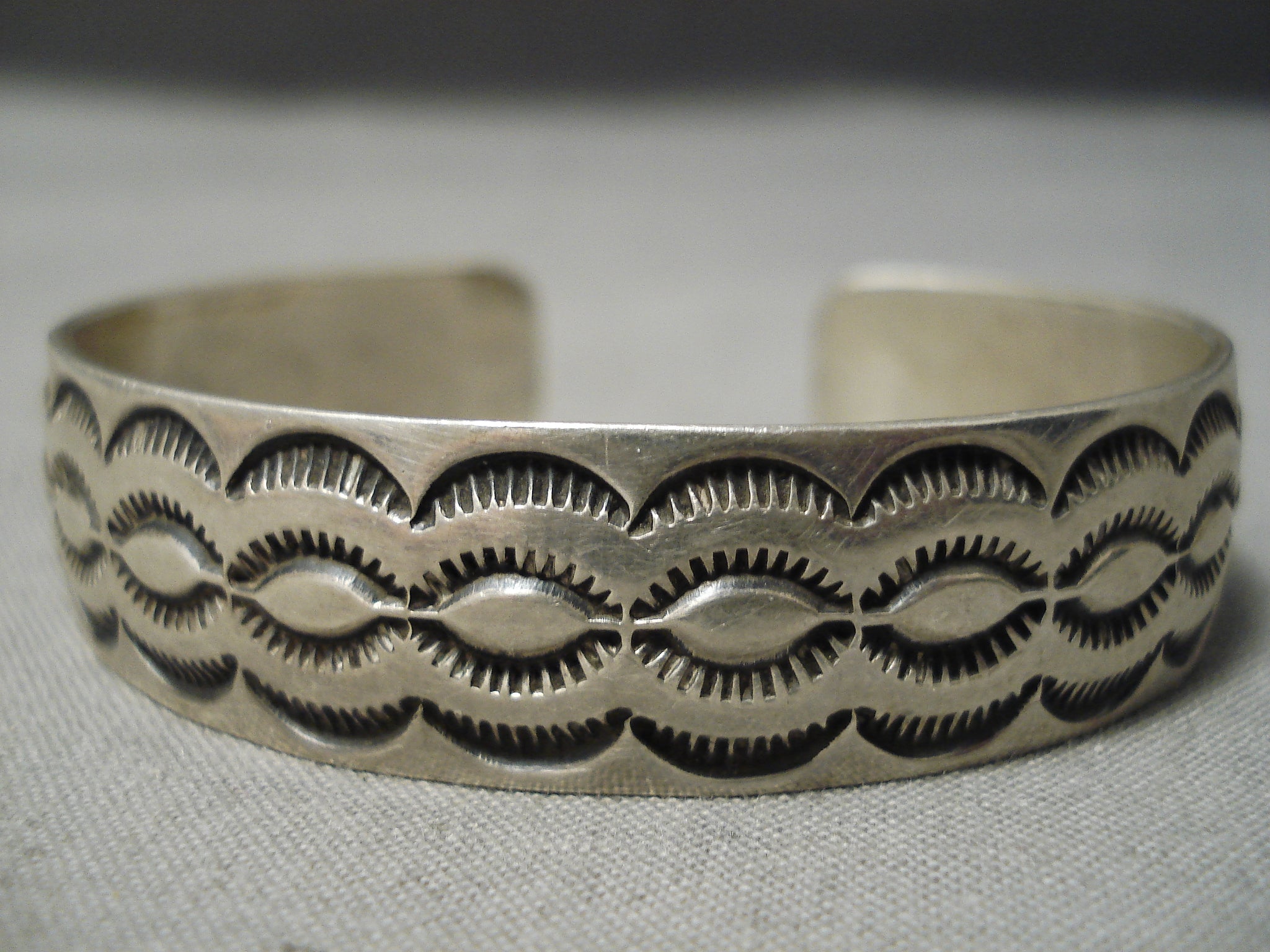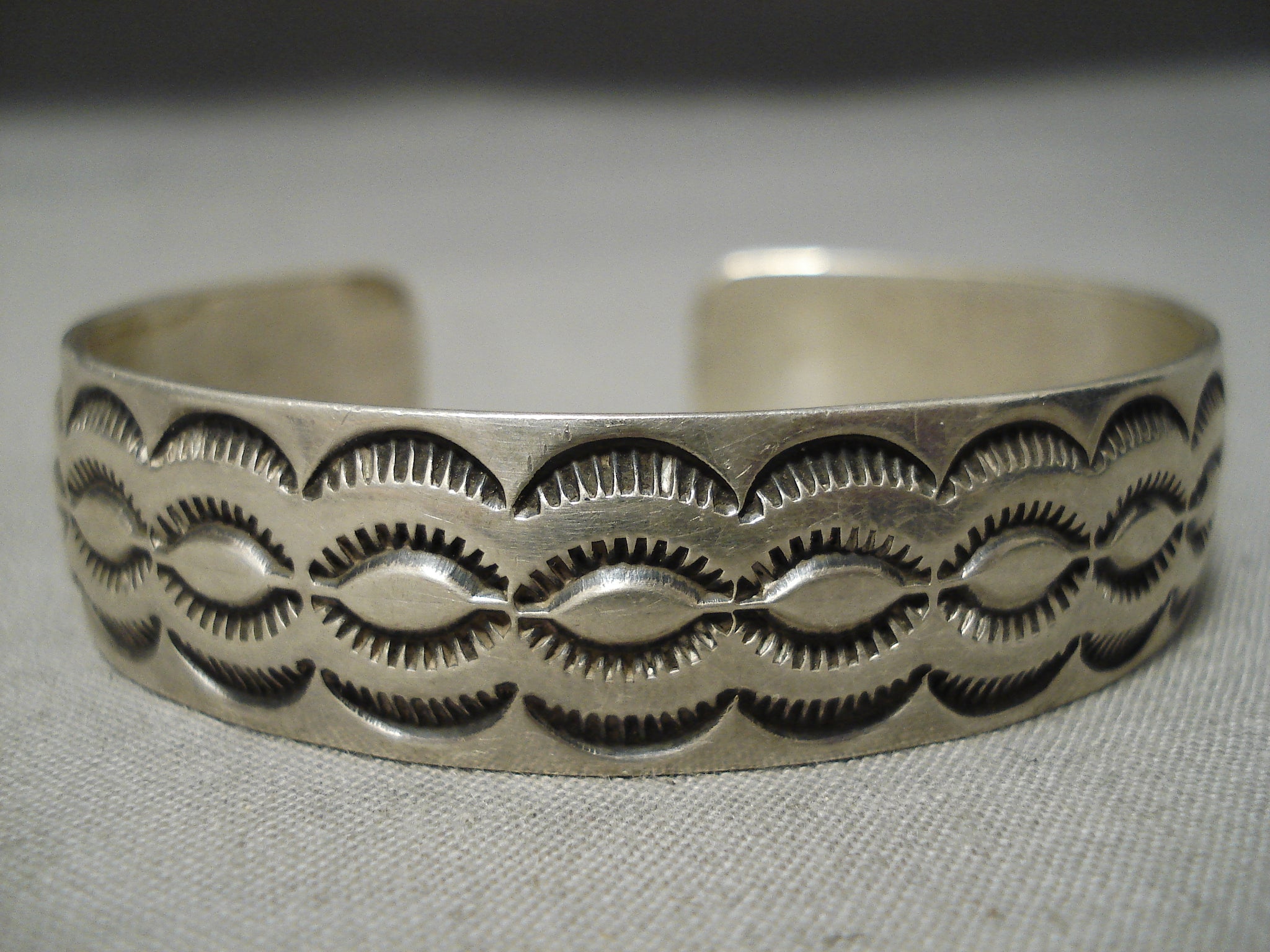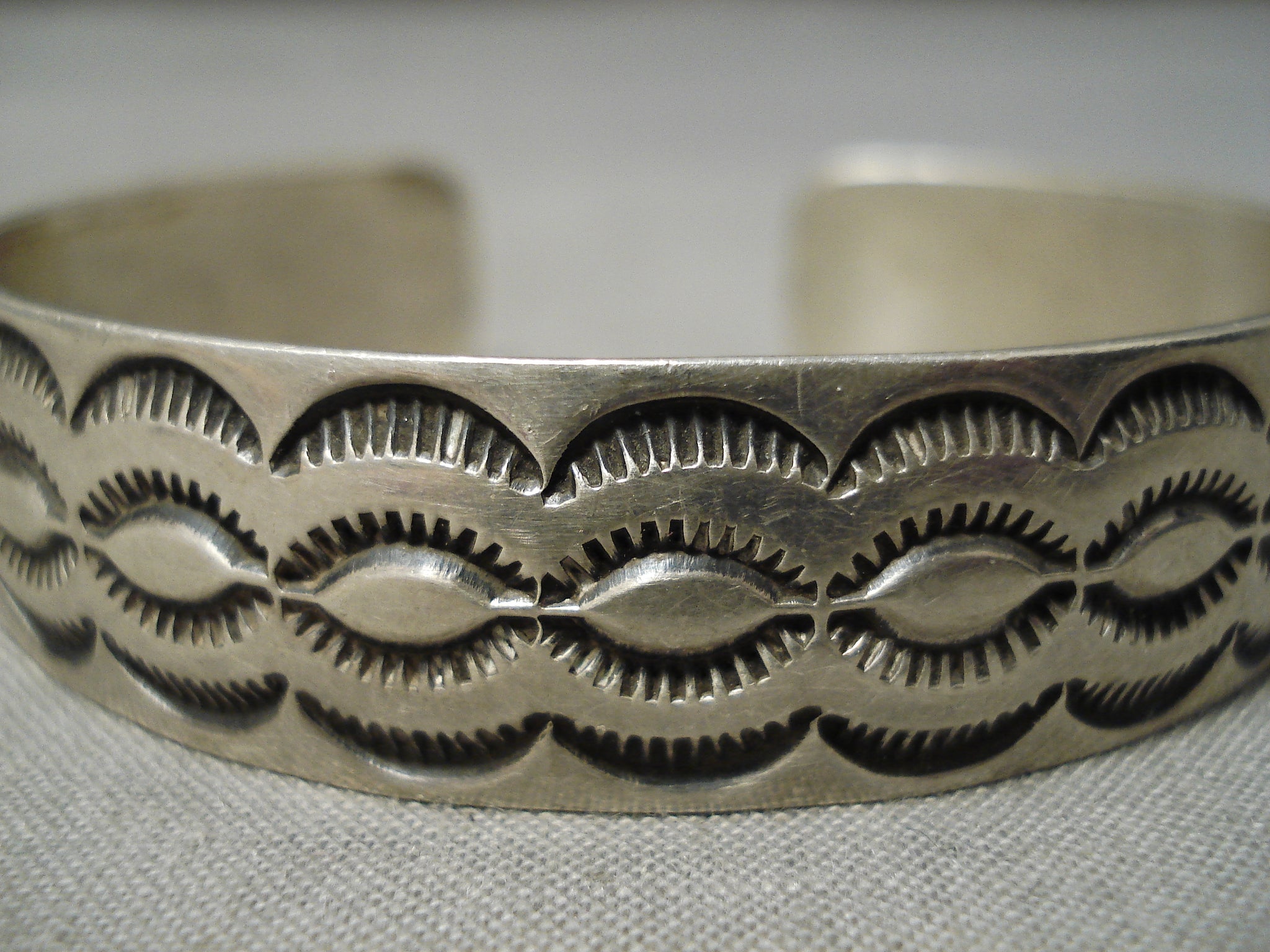 Detailed Hand Tooled!! Vintage Native American Navajo Sterling Silver Bracelet Old