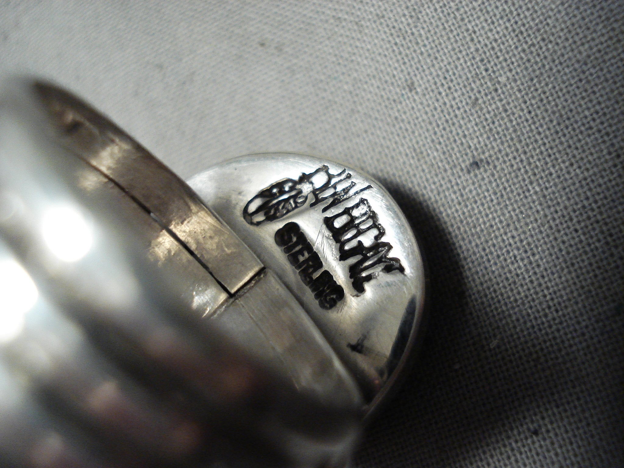 Up for sale is this wonderful Navajo silver ring having a coral and jet oval ladybug and a handcarved solid silver band with 2 handcarved silver stars! Truly Unique! The ring face measures around 7/8" x 3/4". Signed by Navajo artist, Ben Begaye. The ring size is around 9. Sterling silver, marked. Sturdy 17 grams.