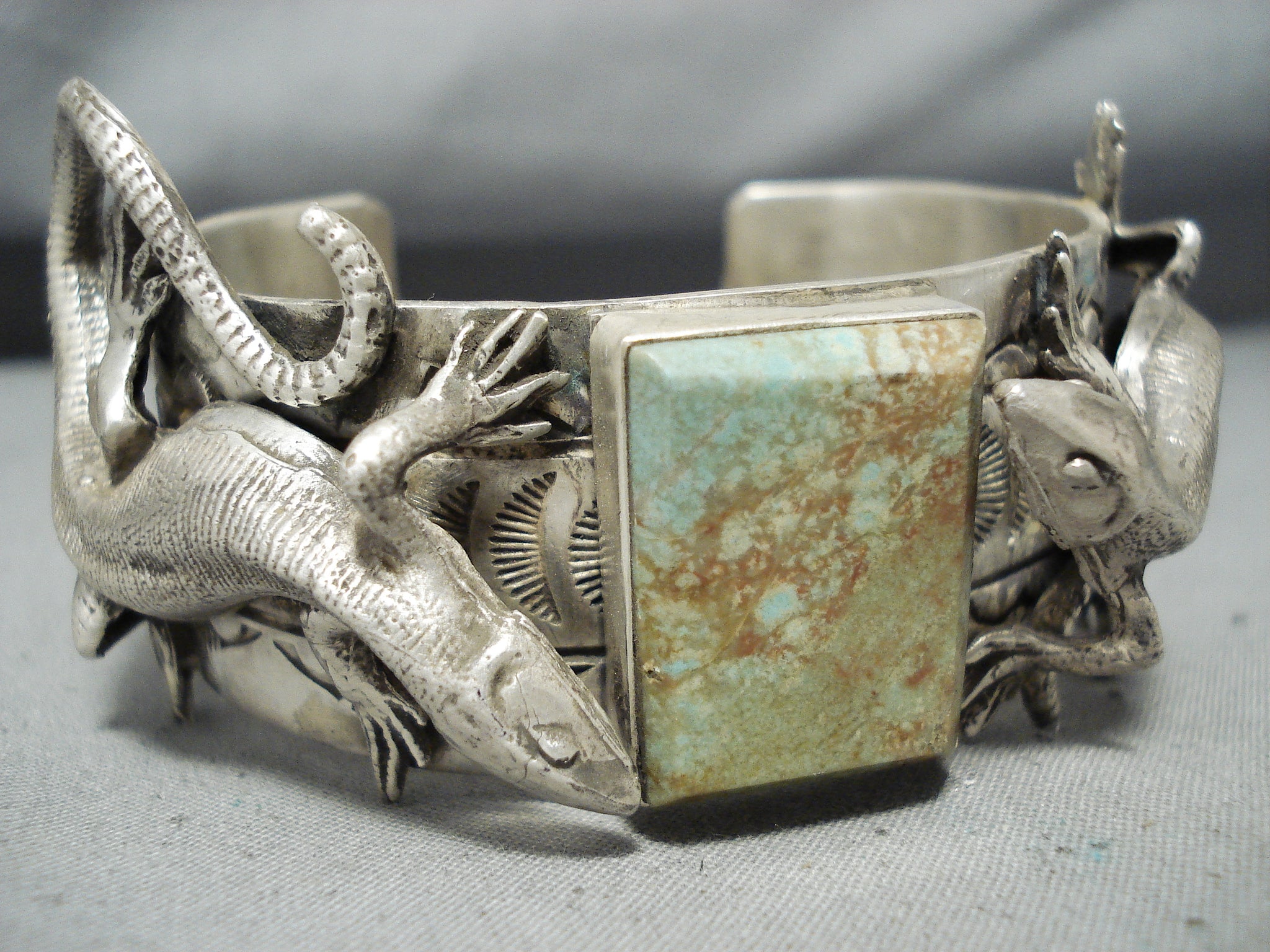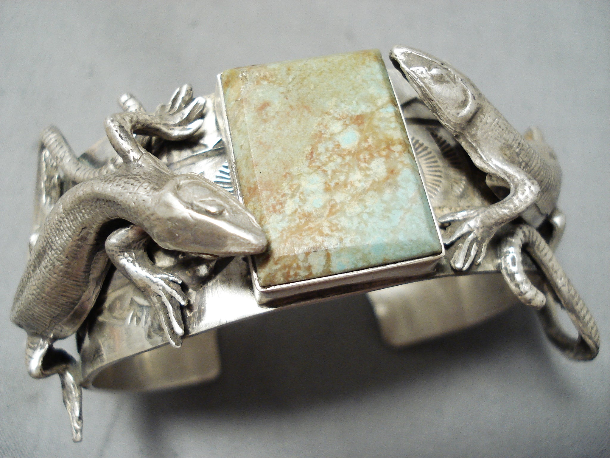 Detailed Lizard Native American Navajo Royston Turquoise Sterling Silver Bracelet