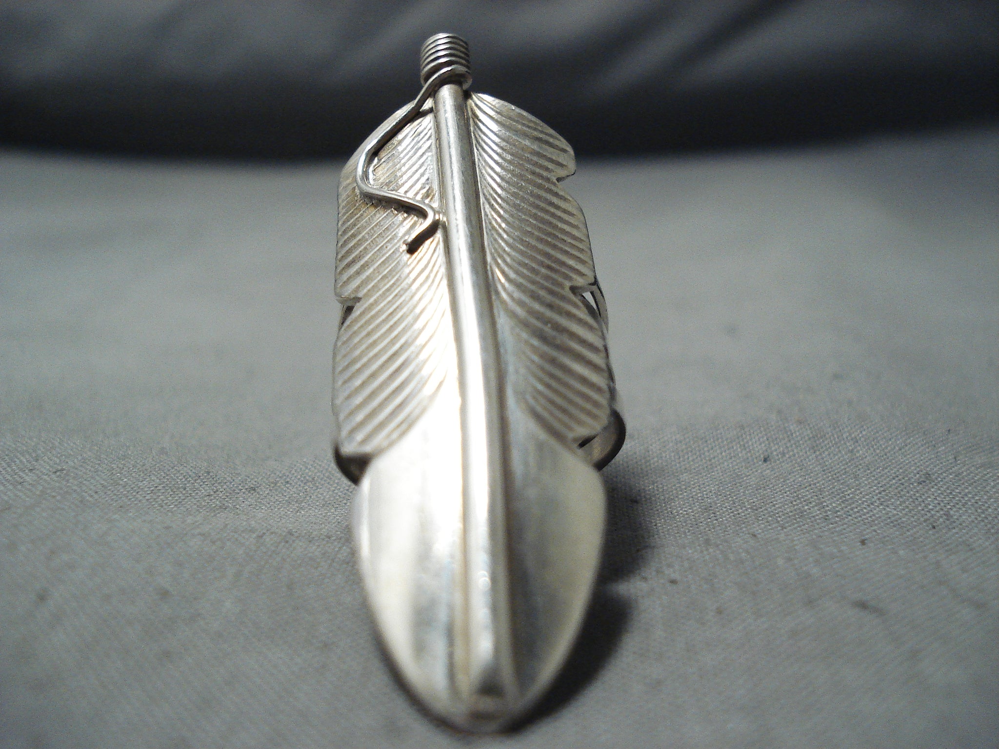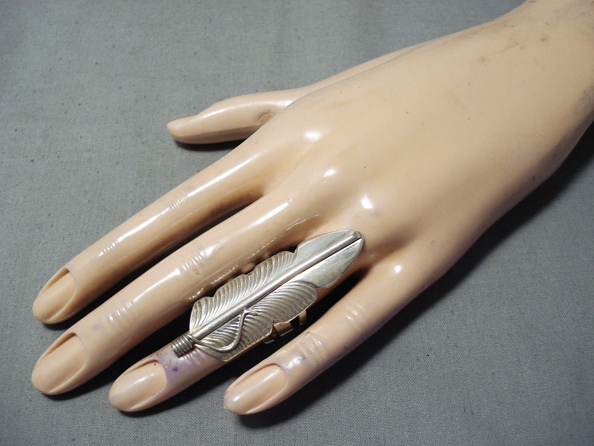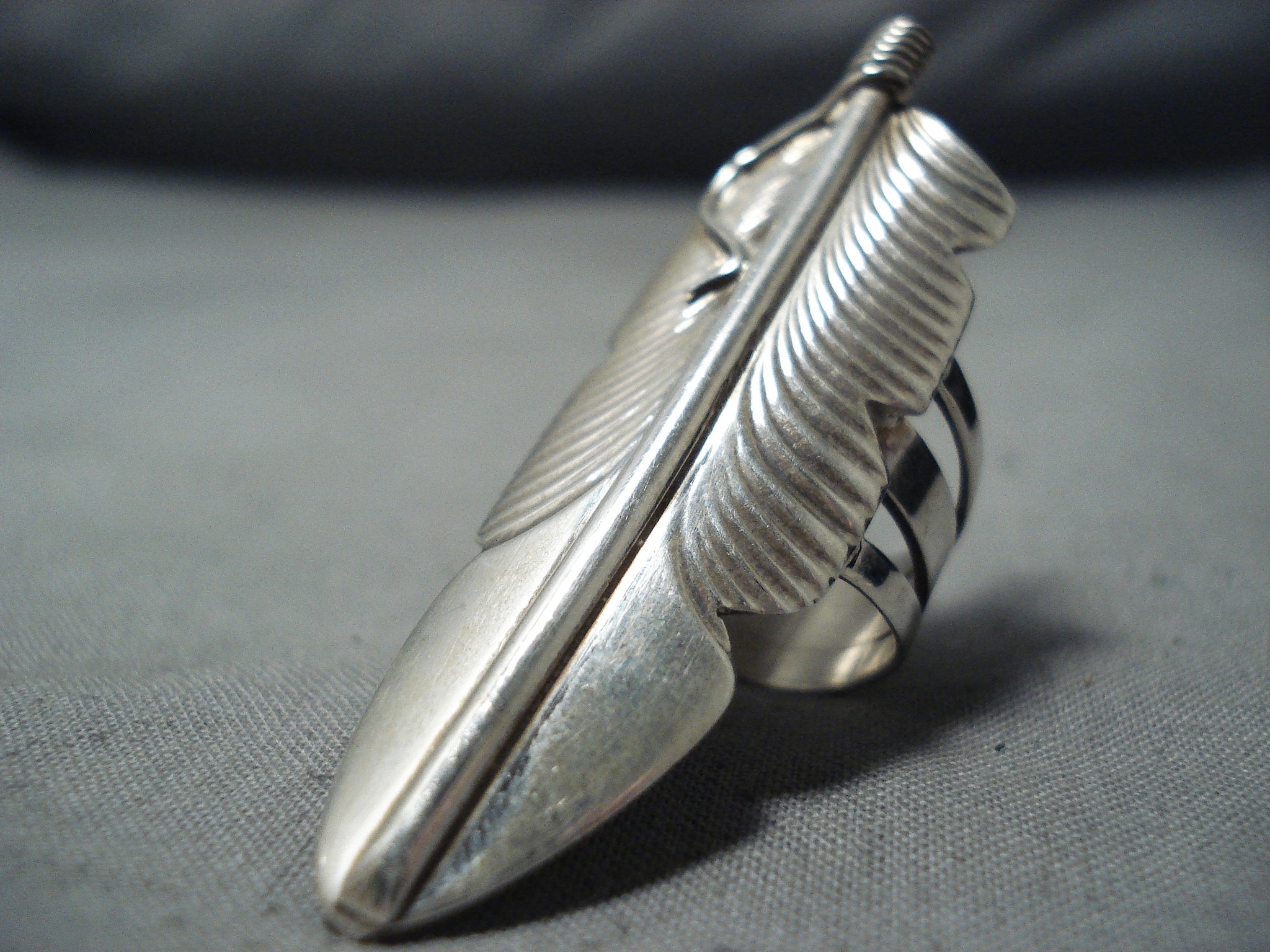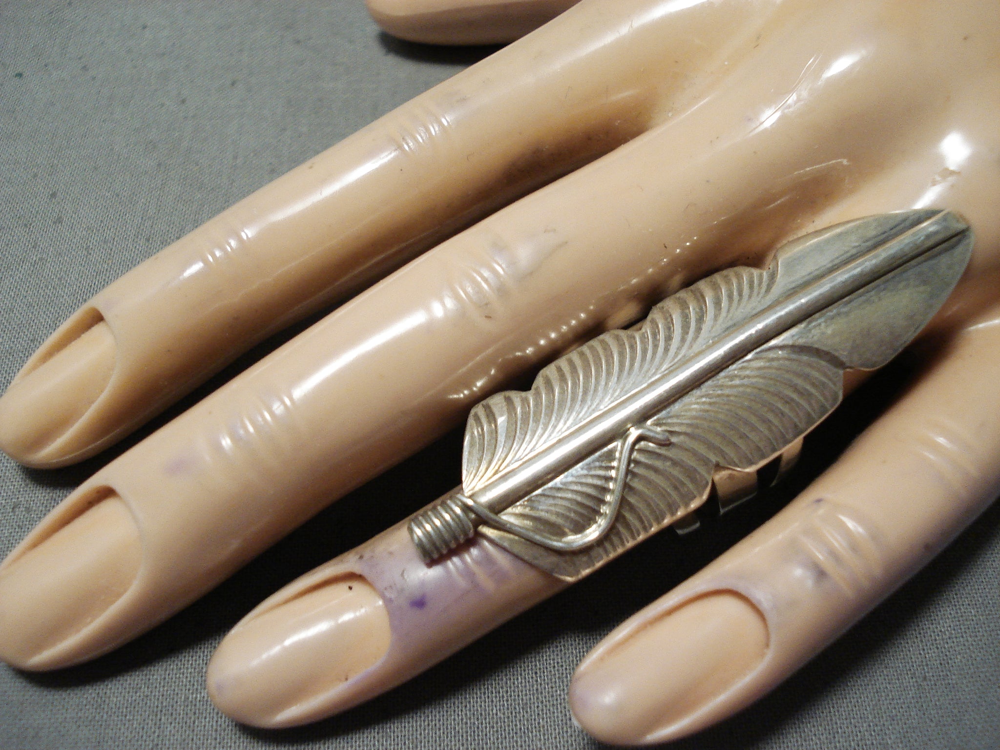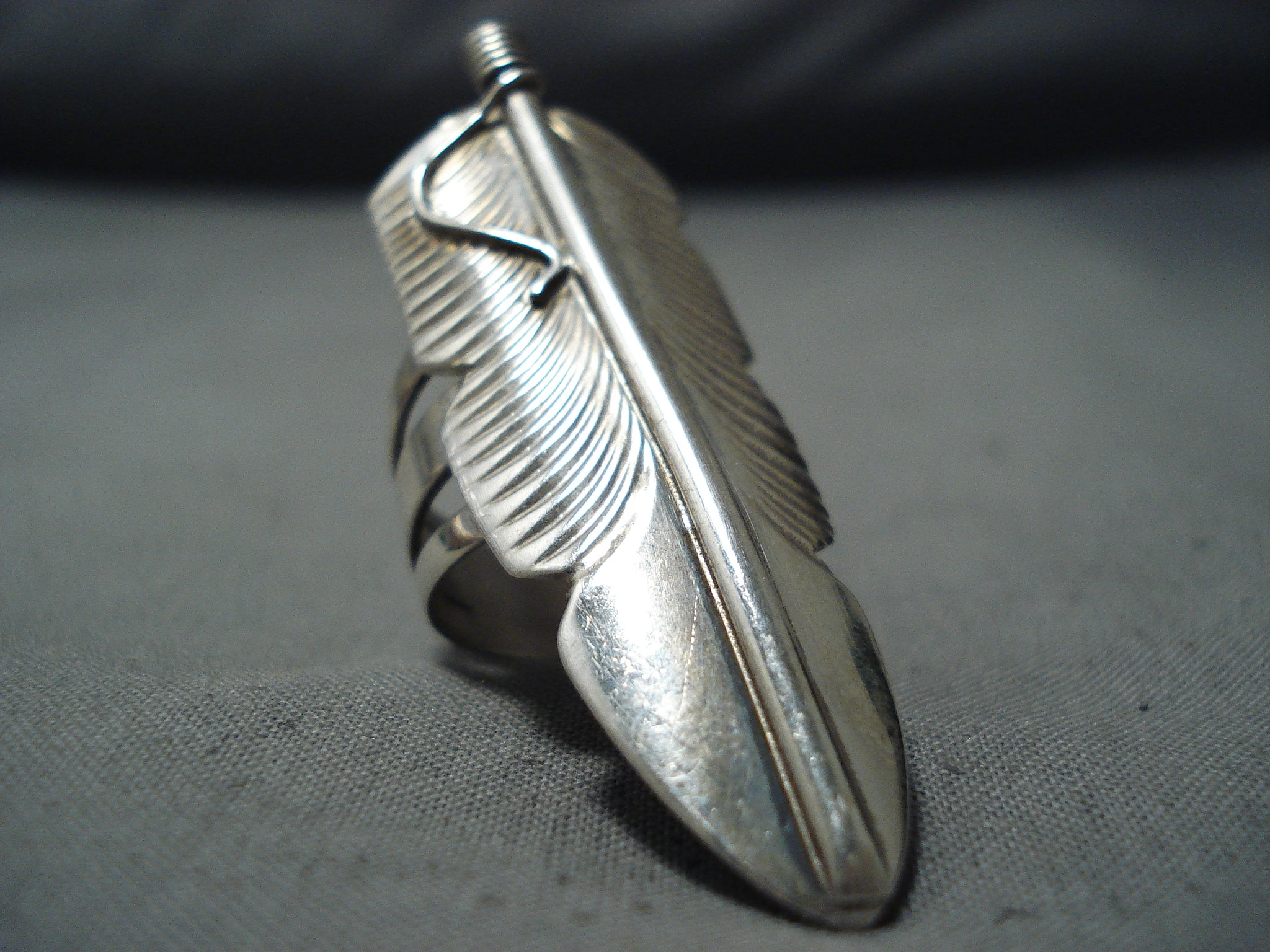 Detailed Navajo Sterling Silver Feather Ring Native American