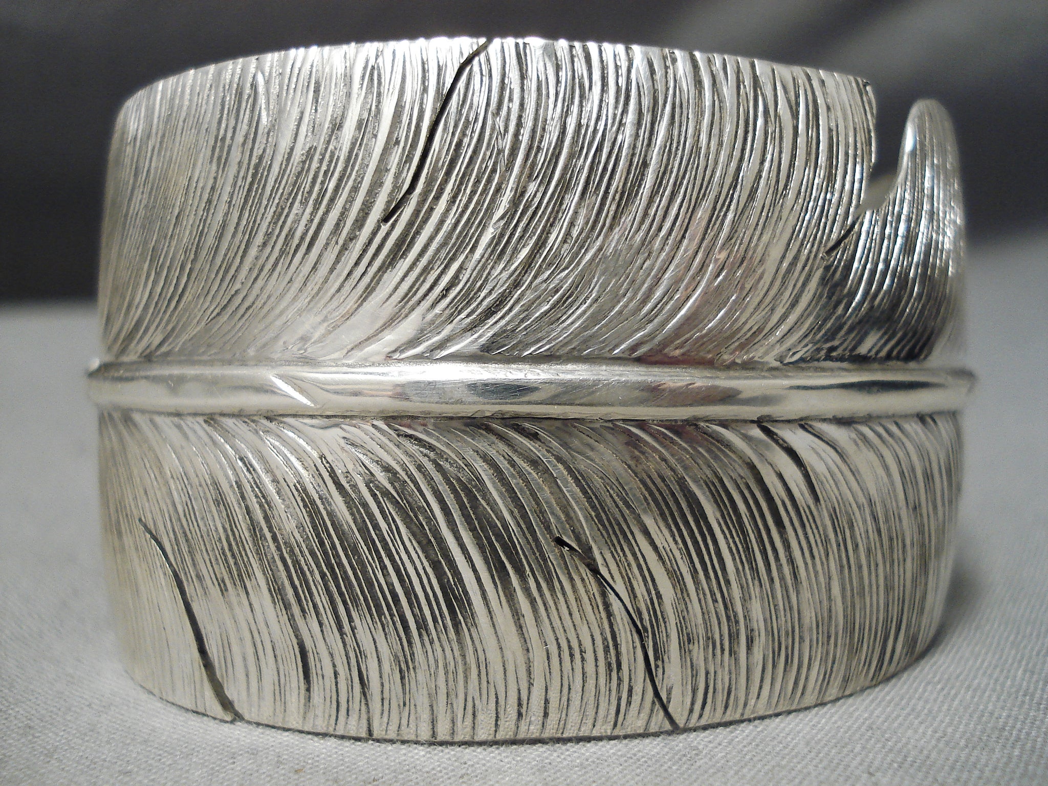 Detailed Precise Intricate Native American Navajo Sterling Silver Feather Master Bracelet