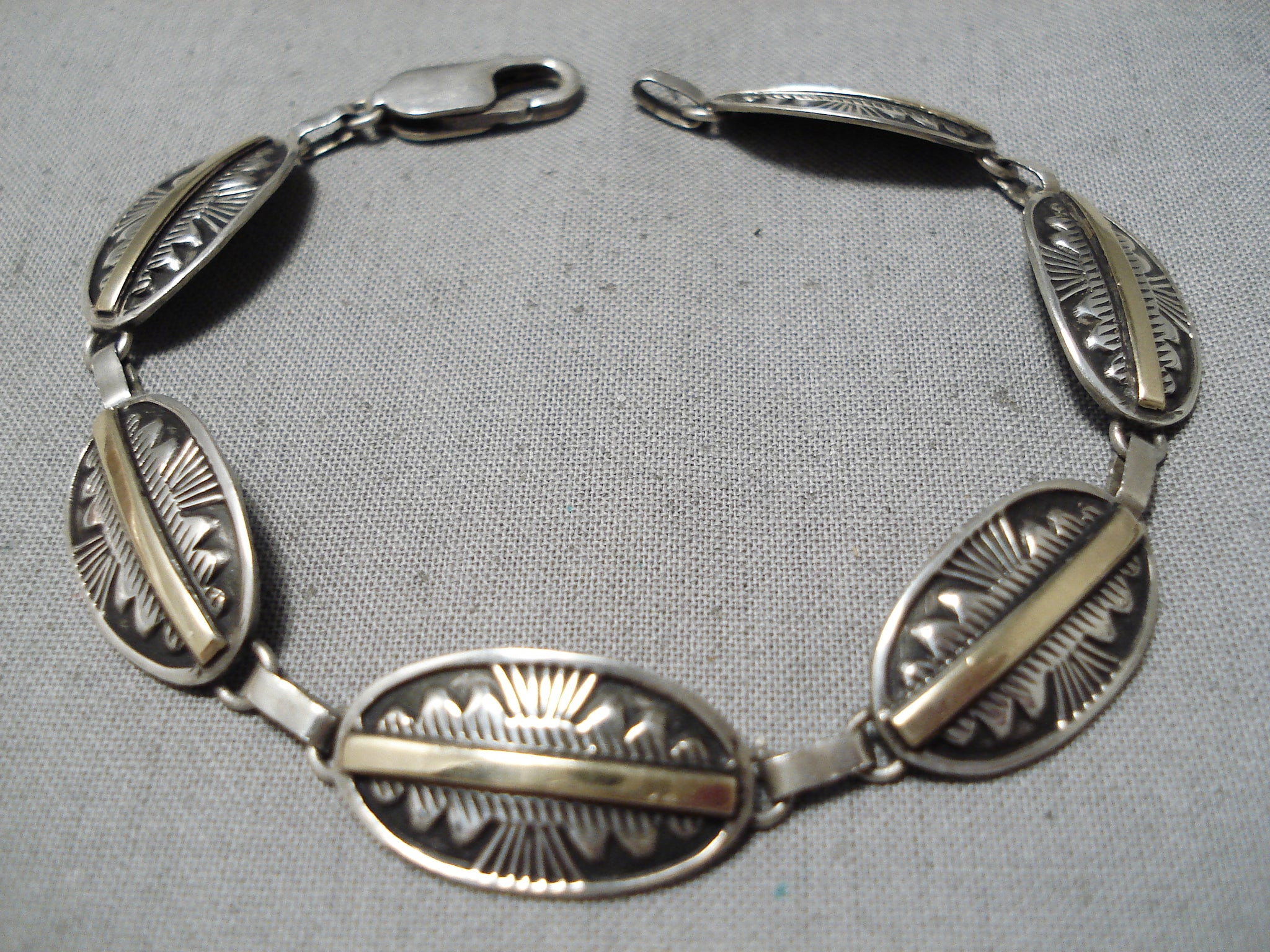 Detailed!! Vintage Native American Navajo 14k Gold Sterling Silver Link Bracelet Old