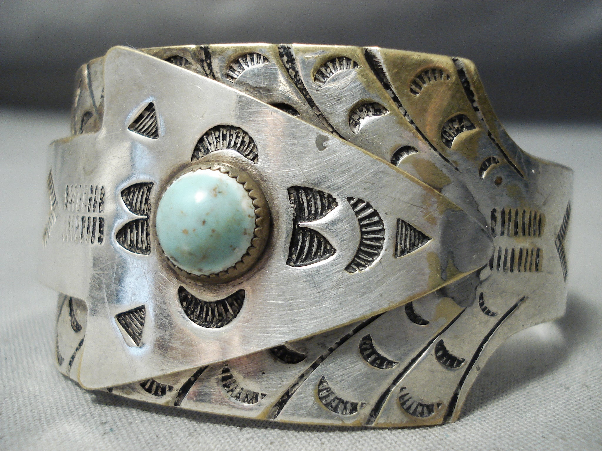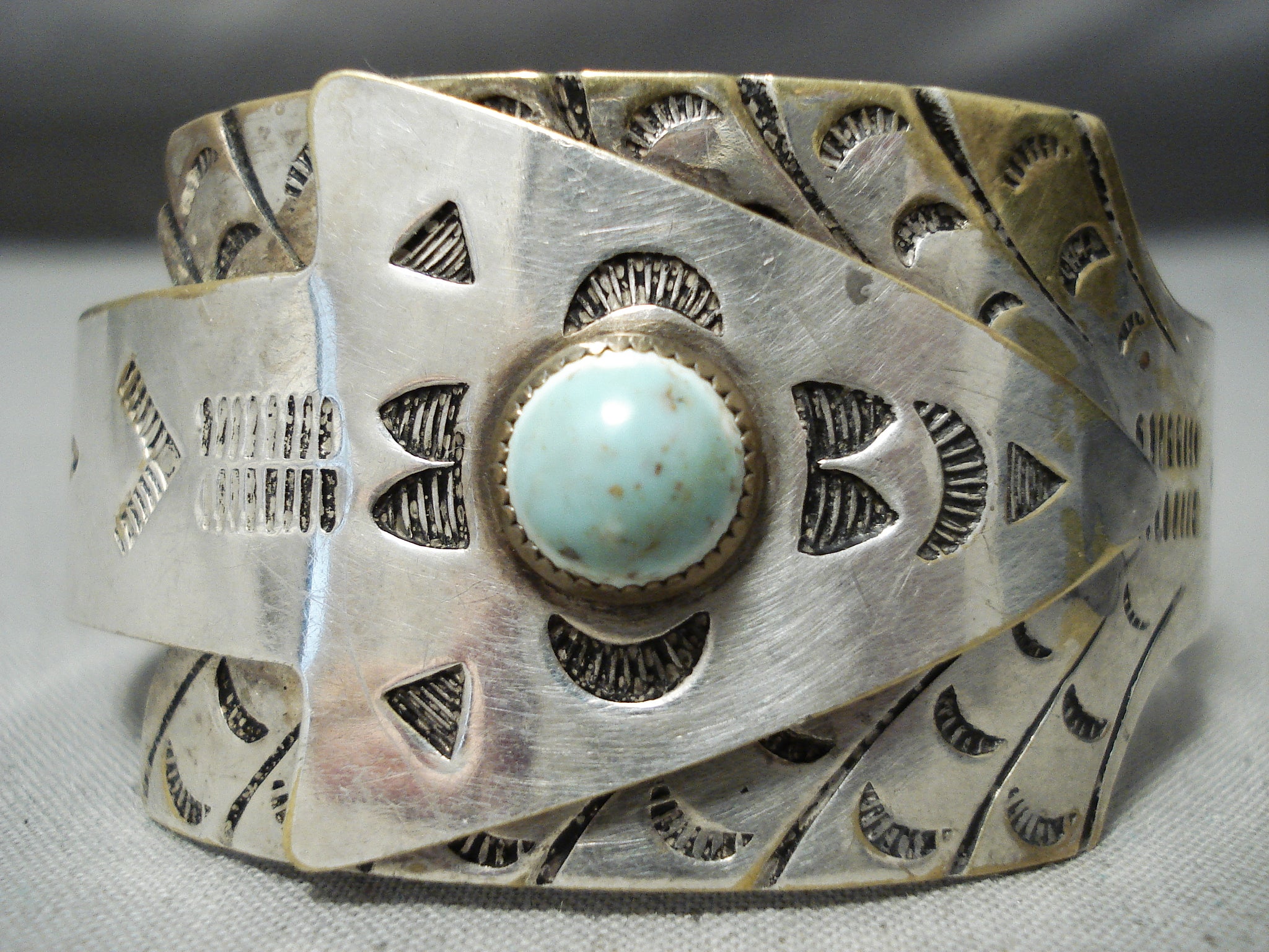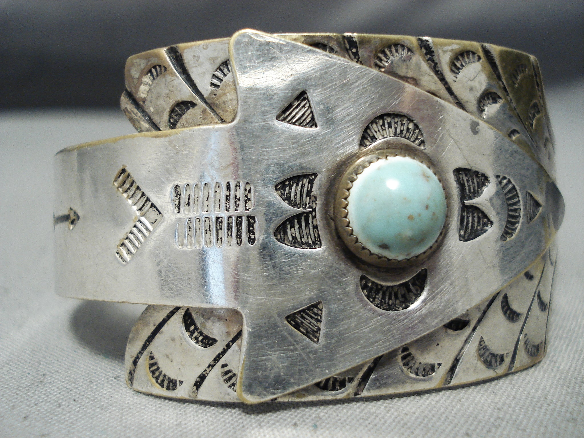 Detailed Vintage Native American Navajo Huge Arrow Turquoise Sterling Silver Bracelet Old