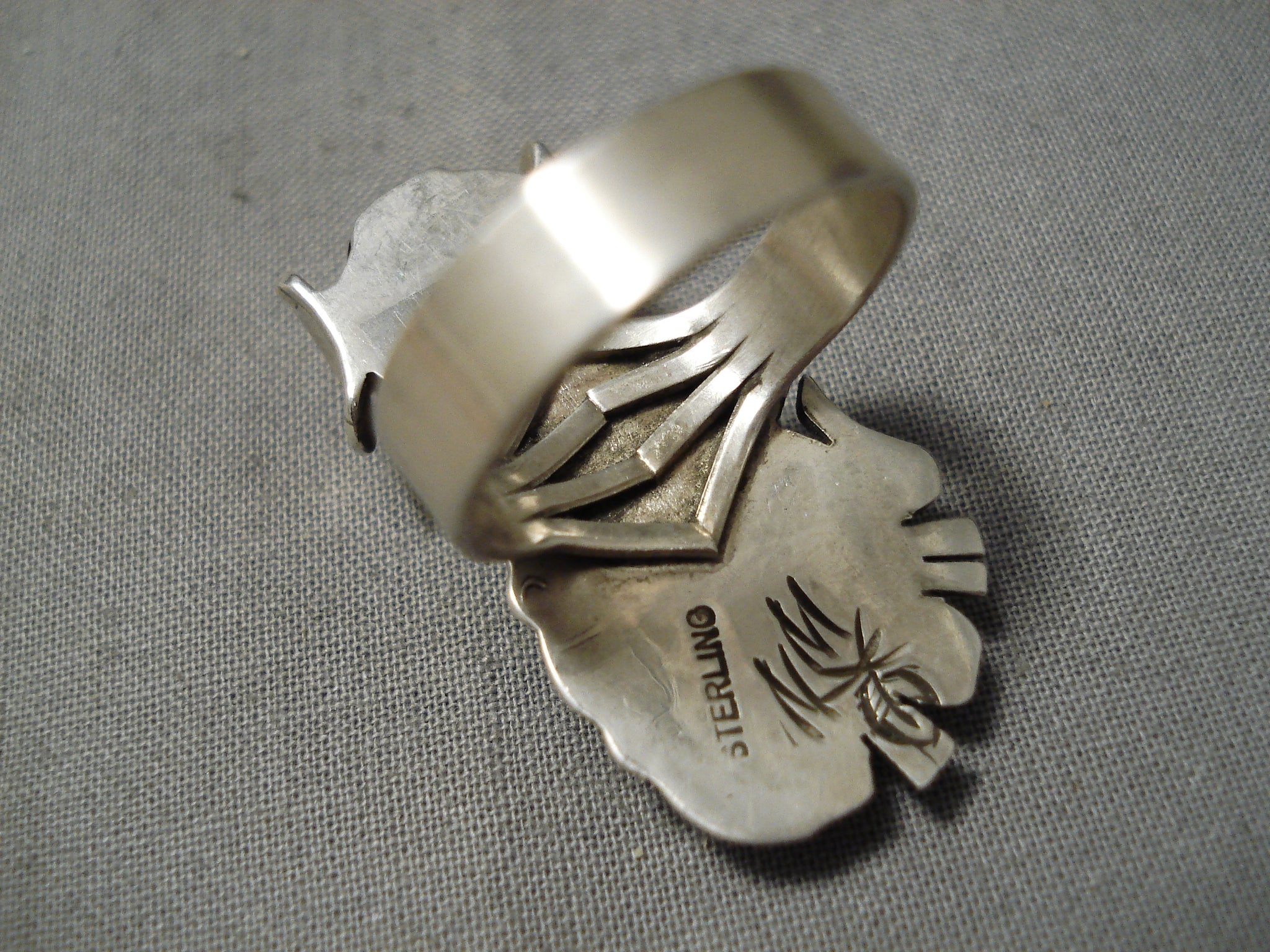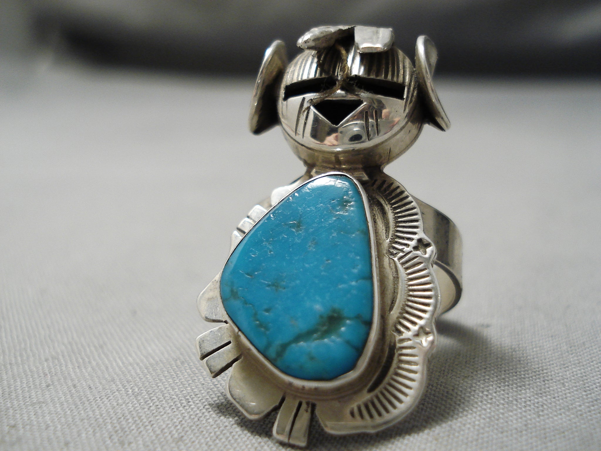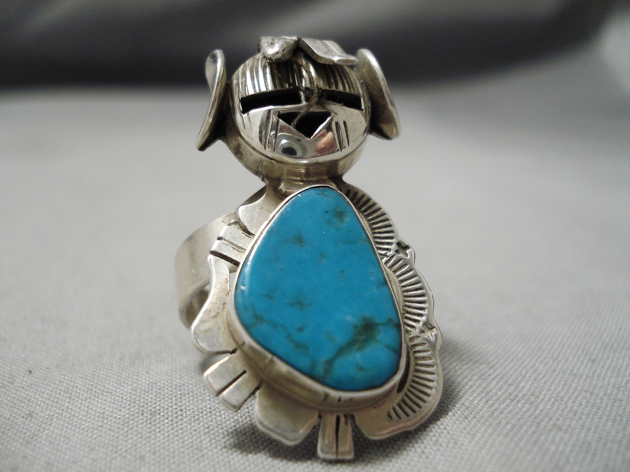 Detailed!! Vintage Native American Navajo Kachina Master Sterling Silver Turquoise Ring