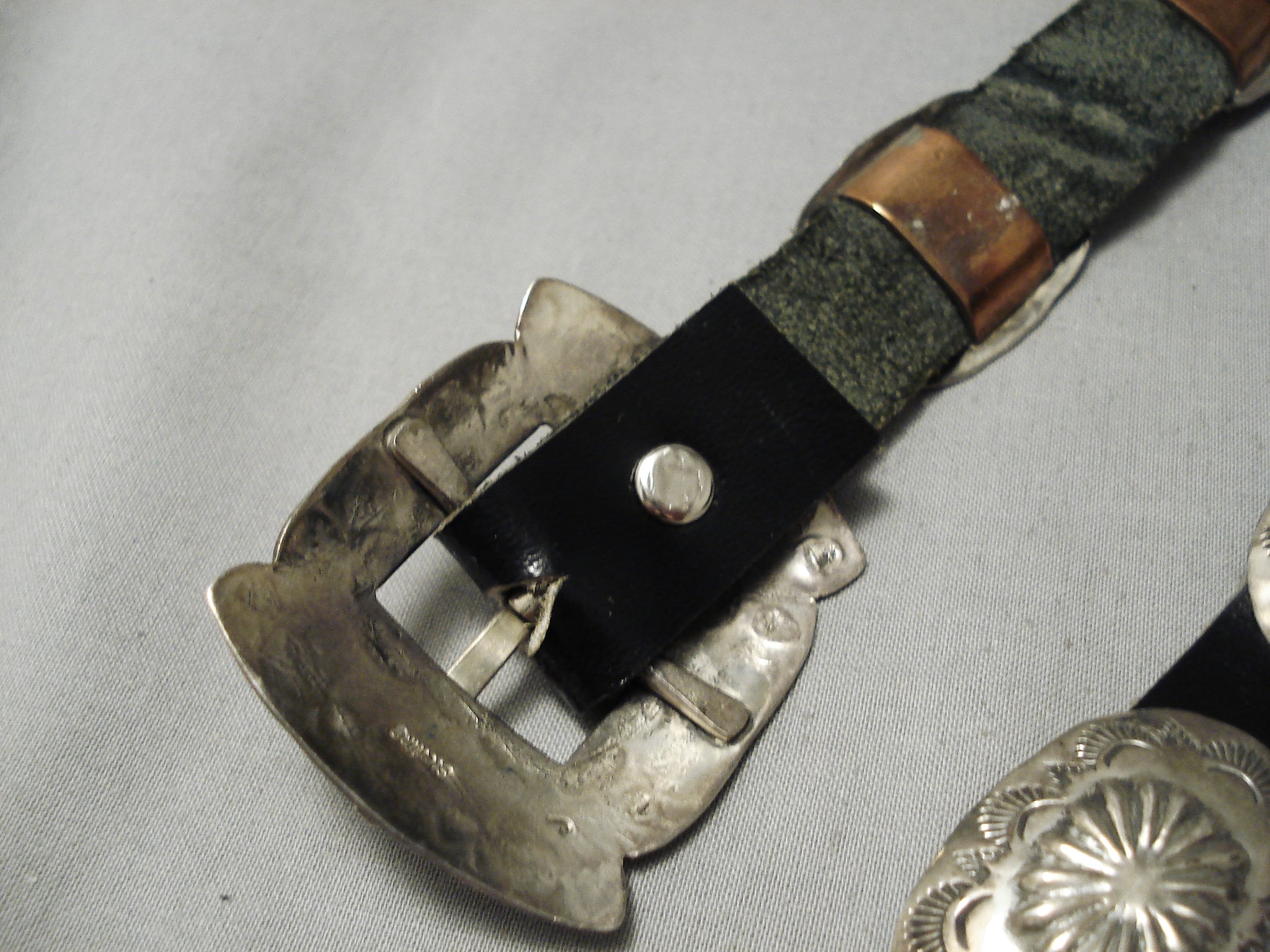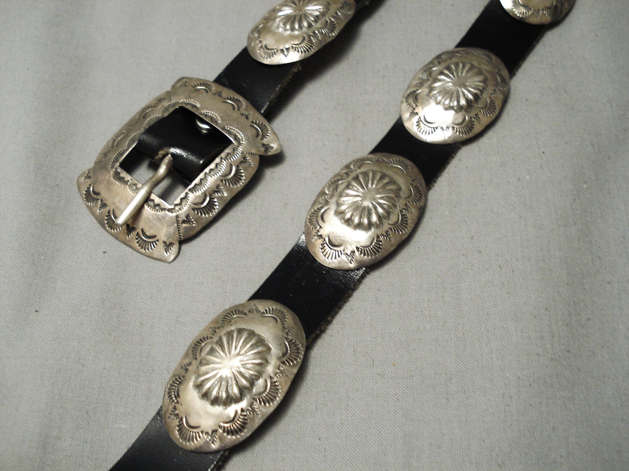 Detailed Vintage Native American Navajo Sterling Silver Repoussed Concho Belt Old