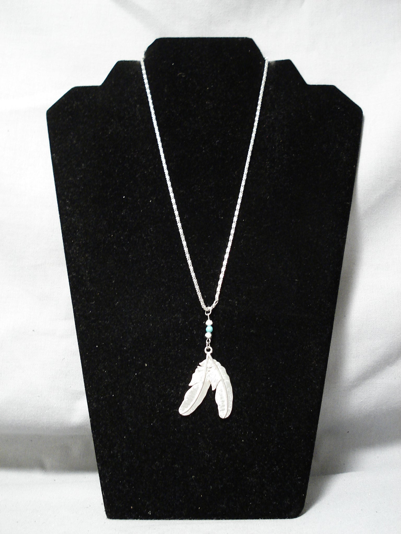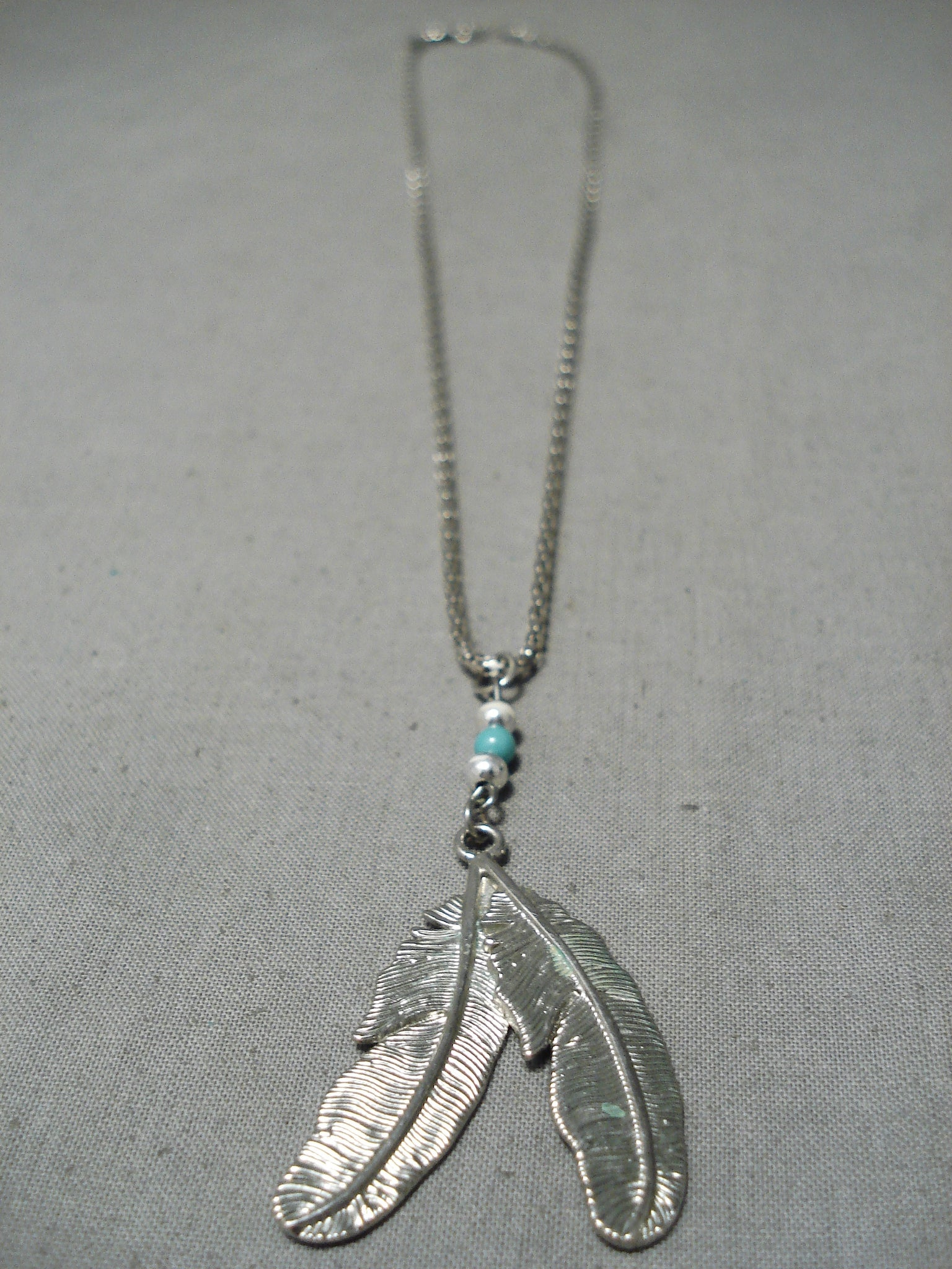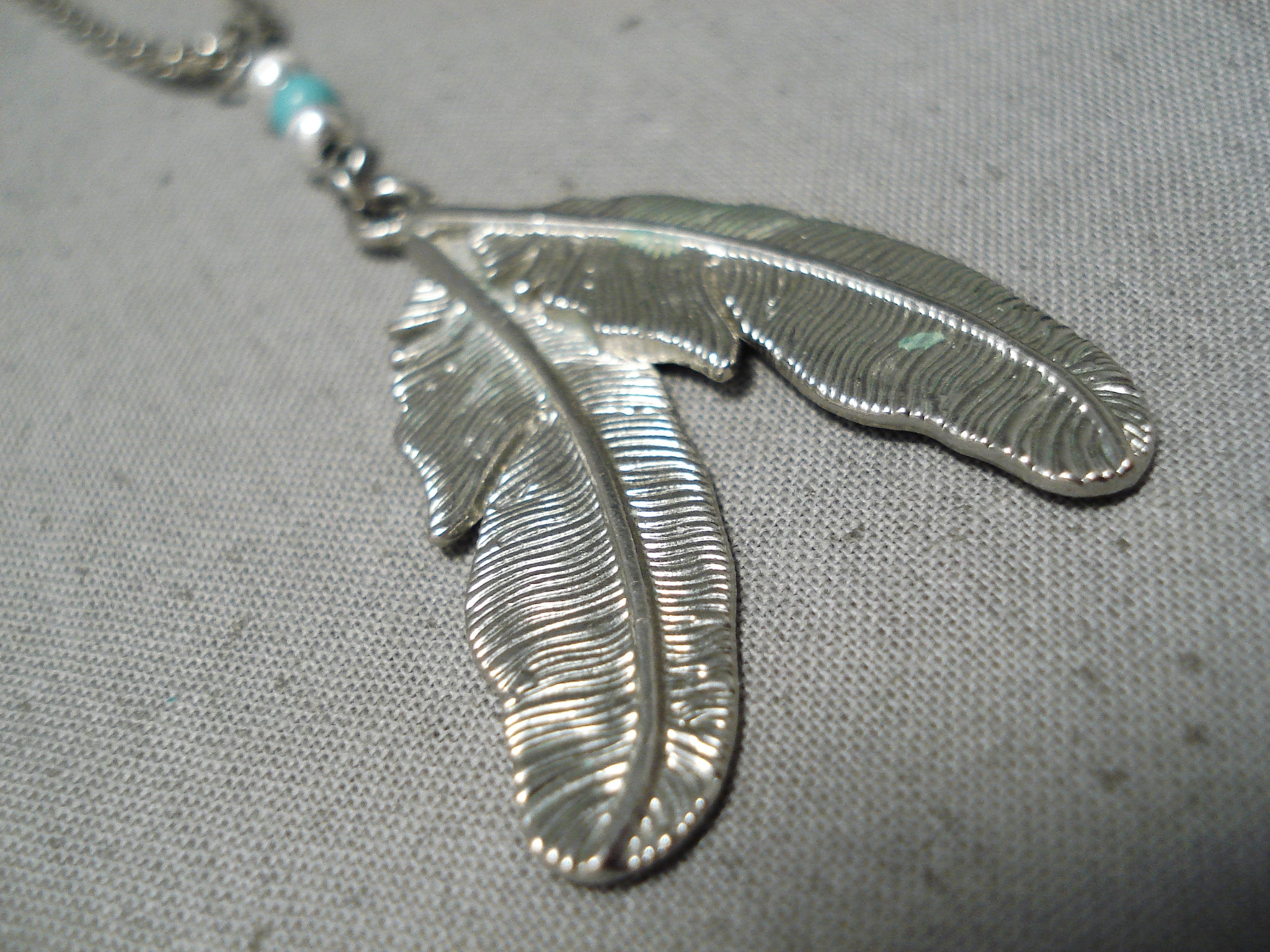 Detailed!! Vintage Native American Navajo Turquoise Sterling Silver Feathers Necklace