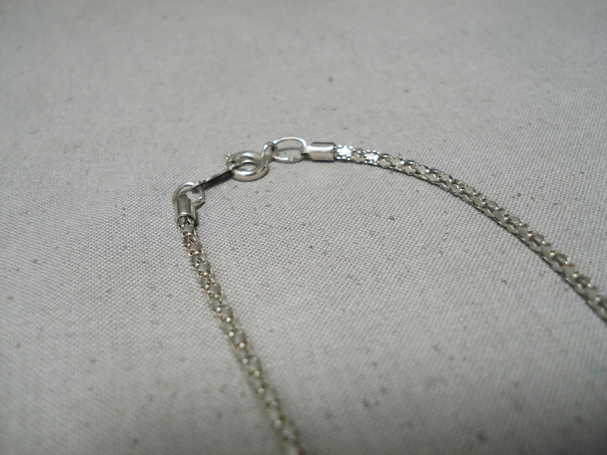 This is an exquisite vintage Navajo silver feather necklace. This piece contains a marvelous hand tooled silver feather pendant that measures around 2-1/2" X 1-1/8". Check out how intricate those feathers are. Sterling silver. Cir. Mid century . The length of the necklace measures around 23". Sturdy 6 grams.